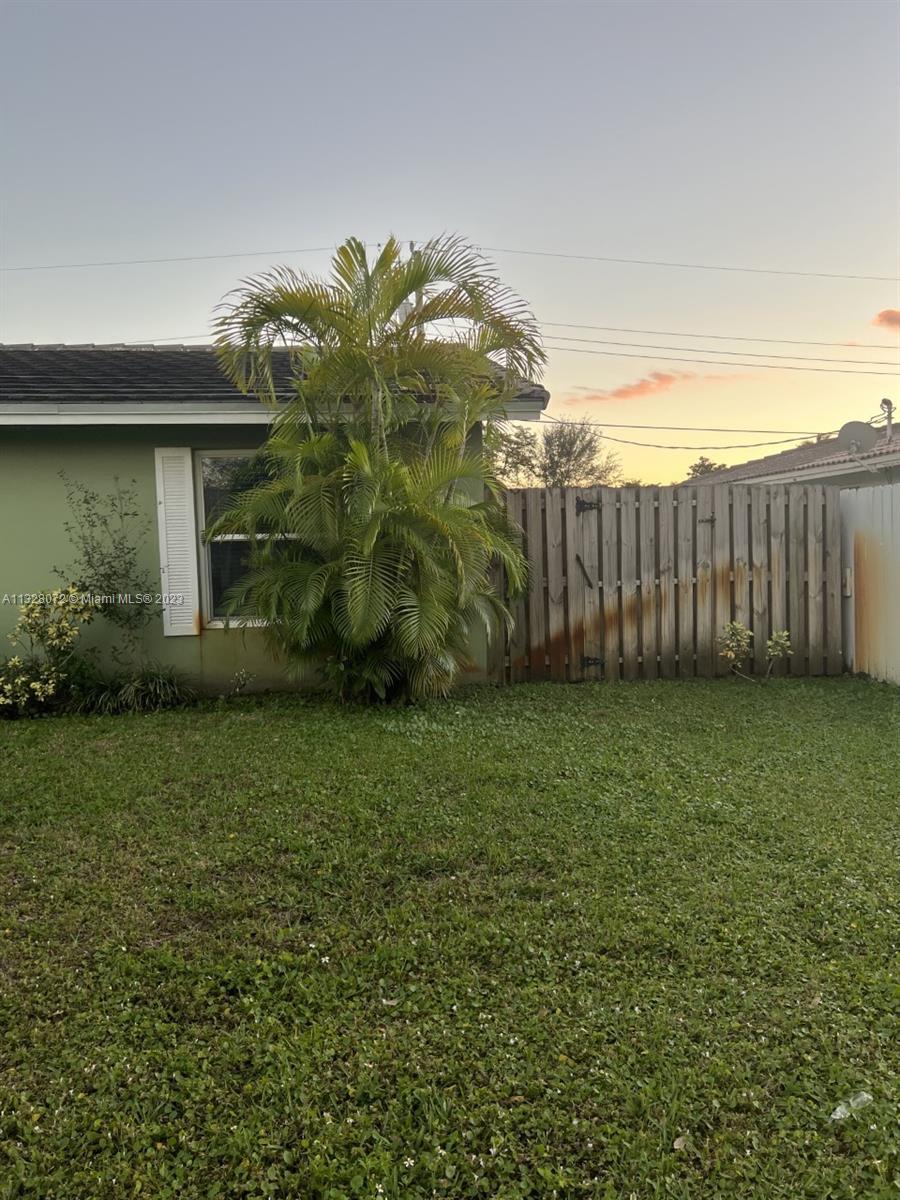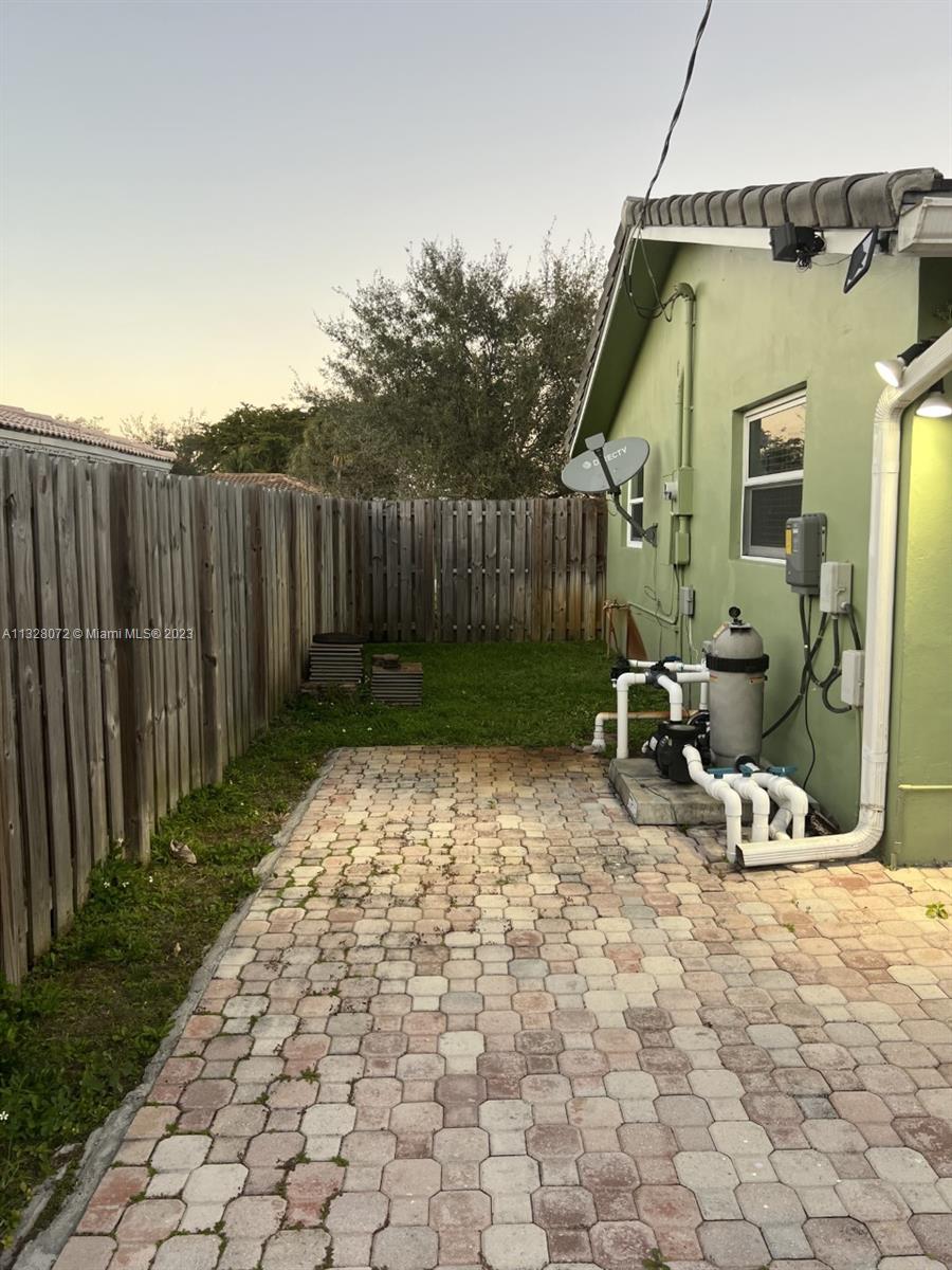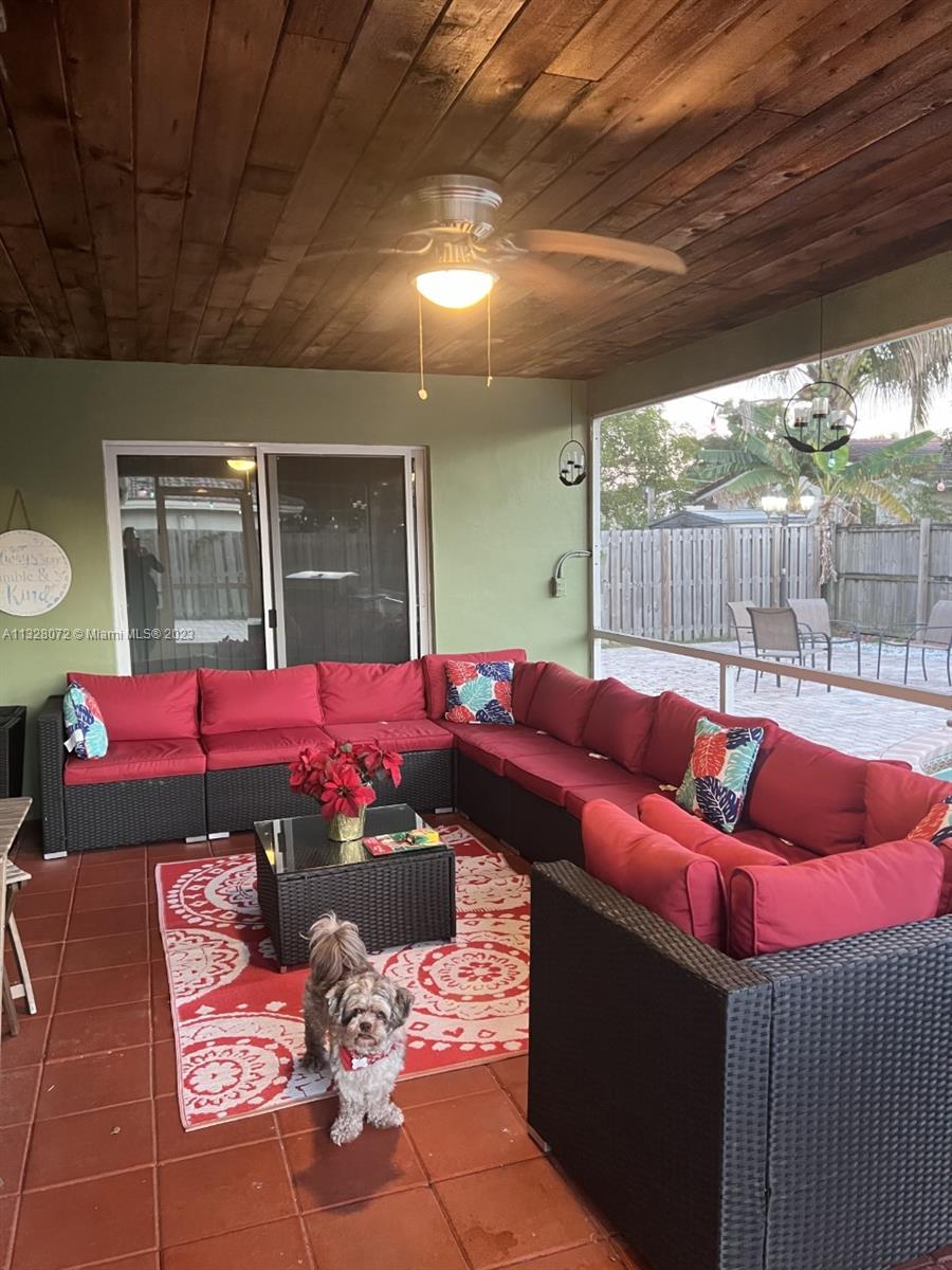 Beautiful home, with tile flooring throughout, impact windows, renovated kitchen with white cabinetry, farmers sink, stainless steel appliances including glass cooktop, wall microwave/oven, quartz countertops, glass backsplash, new garbage disposal, vertical and horizontal blinds in all windows and sliding doors, AC was replaced in 2021, tiled, covered, and screened patio, knock down ceilings, washer, dryer and, extra refrigerator in the garage, ceiling fans, huge yard with pool and brick pavers pool deck, wood fence installed in 2018, roof replaced in 2011, fully fenced backyard and side yards for extra privacy, newer sprinkler system, two car garage, recent resealed driveway, Ring door bell, Nest AC thermostat, no HOA. The property is been offered for sale AS-IS with right of inspection.