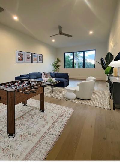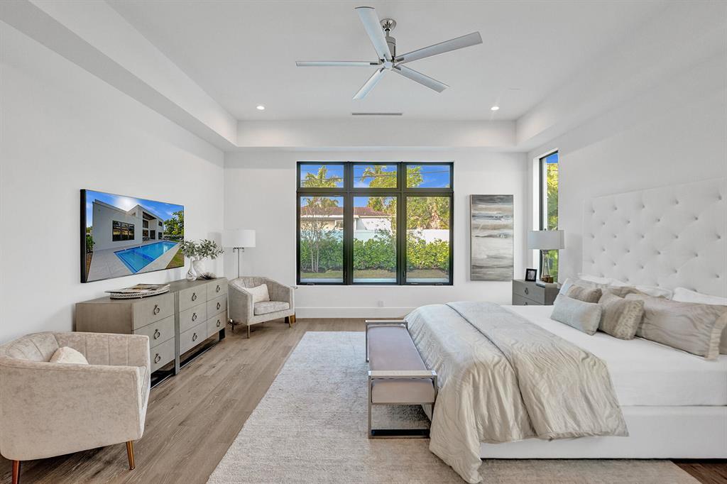 Presenting a modern, two-story New Construction gem in the enviable neighborhood of Boca Raton Riviera. With approximately 4,290 sf under air , this estate encompasses five en-suite bedrooms, an en-suite office/den , six full baths and a powder room. The primary bedroom is downstairs. The home exudes luxury living in east Boca Raton. Located on a quiet lot, with no neighbor directly across the street. The two-story layout seamlessly combines coziness and open-concept living. The lushly landscaped property is complete with ten foot impact glass sliding doors seamlessly blurring the lines between interior and exterior. The main floor boasts a contemporary kitchen and hidden pantry that incorporate quartzite counters, custom designed cabinetry, an oversized kitchen island with plenty of