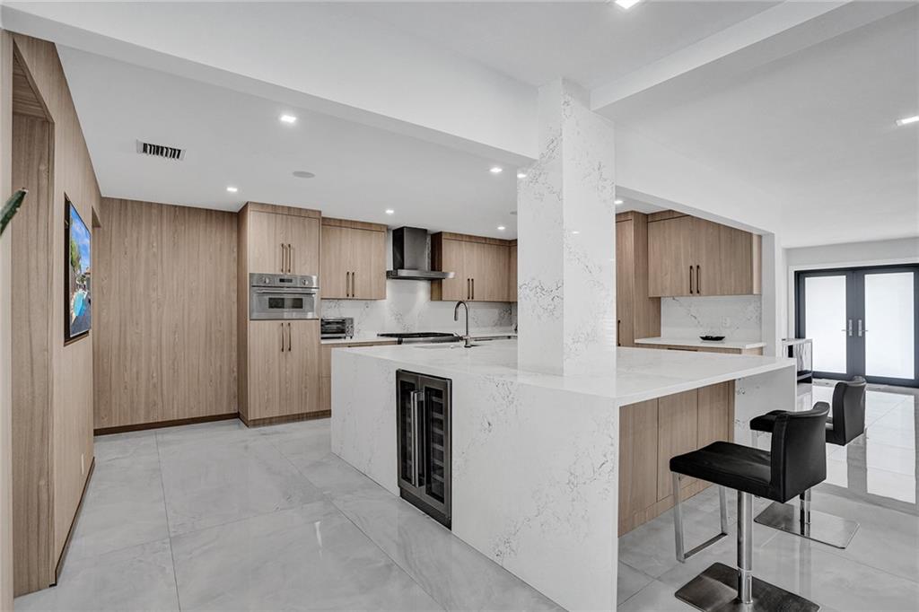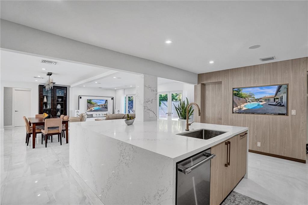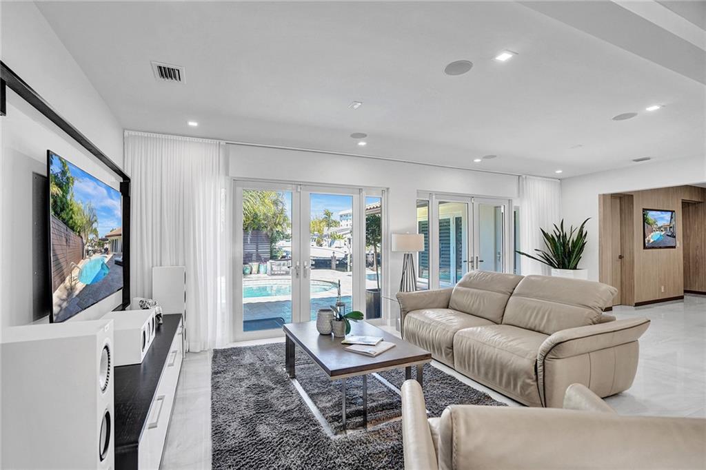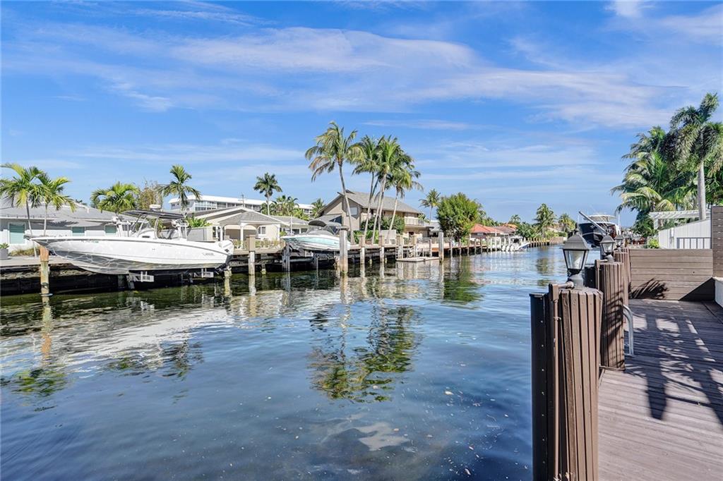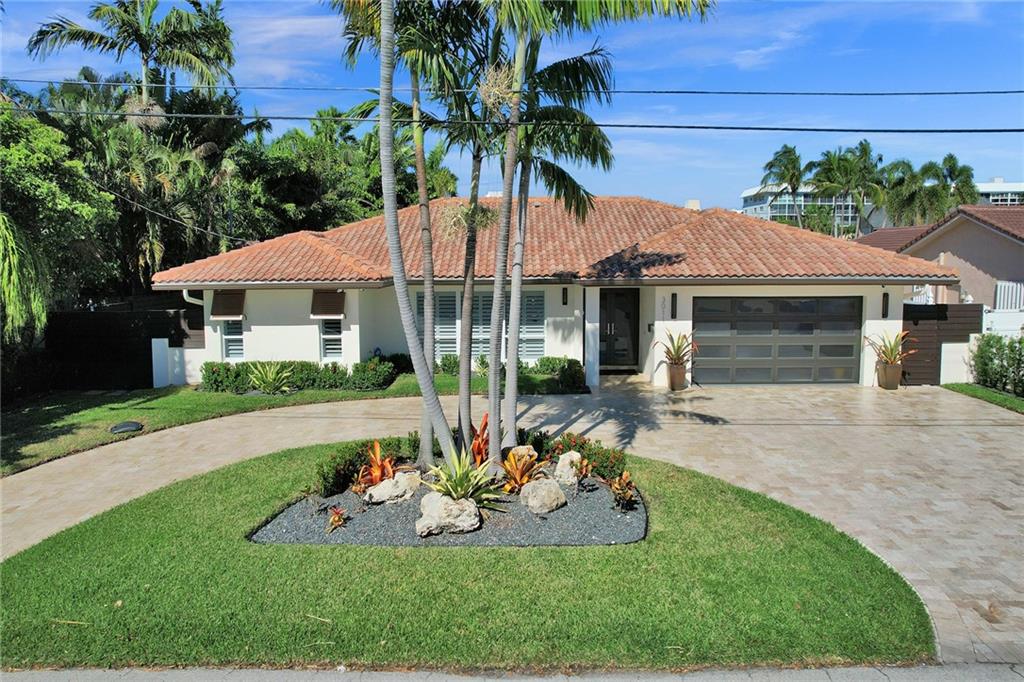 Coral Ridge Country Club is a boater's paradise due to its unobstructed access to the intracoastal. Homeowners can enjoy the luxurious lifestyle in this stunning, open floor plan, split 3 bedrooms 3 bath Waterfront home, plus Pool. Private 40ft dock with shore power electric connector. Modern kitchen is fully equipped with high end Thermidor appliances including a gas range and oversized island provides extra space for dining. Extended Master Suite has a walk-in custom closet and a luxurious bath. Completely reconstructed in 2021, with updated plumbing and electric. Updated features include: Generac generator, impact windows and doors, porcelain floors, built in surround sound speakers, custom security system with cameras. WON'T LAST! MUST SEE TO APPRECIATE!