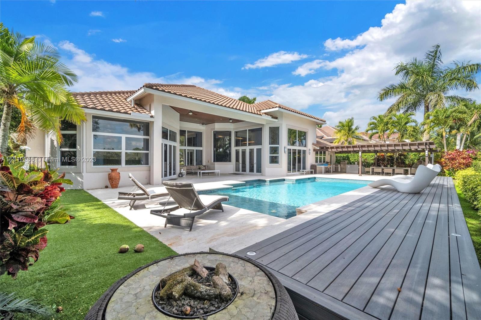 Contemporary elegance located in the prestigious Weston Hills Country Club and Riviera neighborhood. Enjoy expansive golf views from this home that features 5 bedroom, 5 full bathroom, 2 half bathroom, home office, state of the art home theater with 3-Car garage complete with custom cabinetry and SUBZERO Refrigerator. Situated on over 20,000 sf ft of land and on the 10th Fairway of the Weston Hills Tour Course this home was completely redesigned in 2013 with the most exquisite taste and materials available. Completely outfitted with the finest wood cabinetry and interior flush mount doors by MIACUCINA Italian Fine Furnishings, Porte-Cochere circular driveway, all impact windows and doors, resort style oasis pool with travertine marble deck and summer kitchen and pergola.