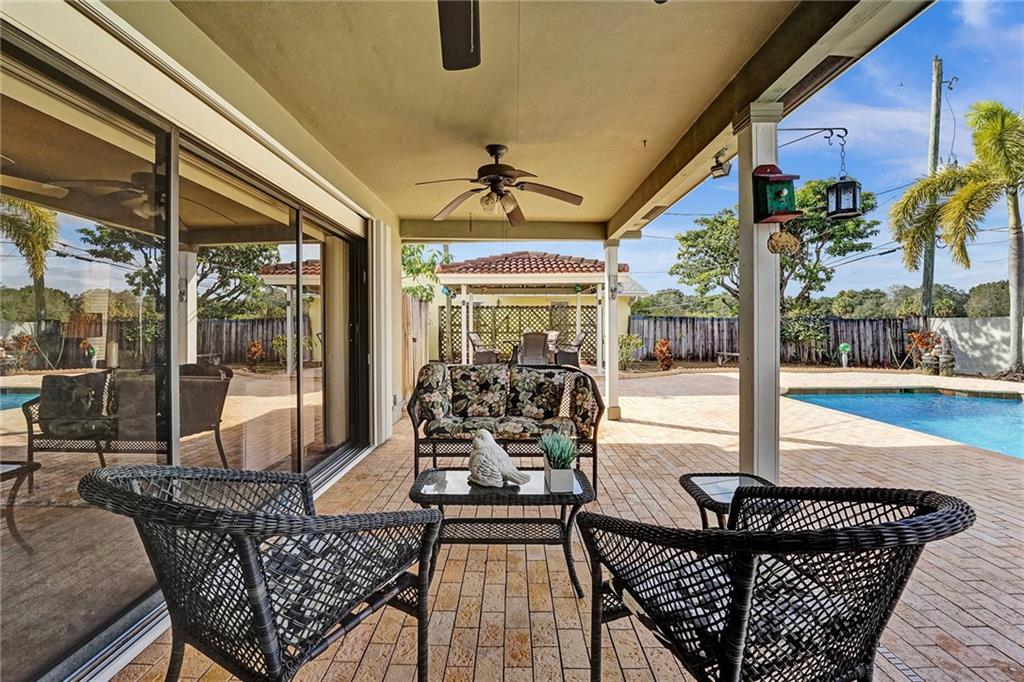 You will be amazed! Fabulous home sitting pretty on quiet cul-de-sac. Charming French doors overlooking a huge pavered patio, open pool, outdoor kitchen, gazebo. Great for easy entertaining with Florida flair. Valuable upgrades including white molded kitchen cabinets, lots of granite counters, crown molding, updated bathrooms, tiled social areas. Double glass sliding doors from large living room to patio. Family room fits a big screen. Formal dining space adjacent to kitchen. Popular split bedrooms. Accordion shutters & panels. Roof 2022. A/C 2016. Pavered driveway, 2-car garage, built-in storage, laundry area. Fenced. Auto sprinkler. Conveniently close to universities, medical, casino, shops, minutes to highways and the beaches. No HOA. Well priced. Take a look. Make it yours!