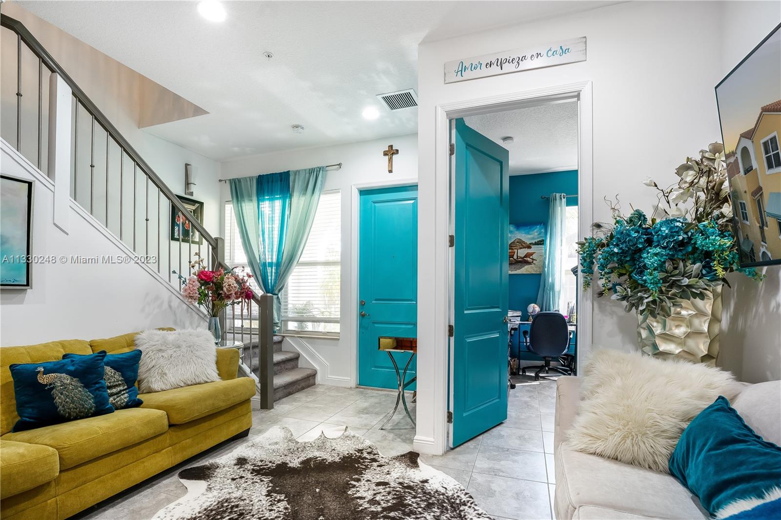 This stunning corner-unit townhome is sure to impress! Boasting over 3,000 square feet of living space & 10 ft ceilings on every level. From impact windows & doors, fire sprinkler system, security system, tons of closet space, and a 2-car garage. A flexible 1st-floor layout offers multiple possibilities with a living room complete with a kitchenette plus a bedroom and full bathroom ideal for multigenerational living or even an office with its own a/c unit. The open concept 2nd floor will be your favorite place to entertain friends as you prepare meals in the upgraded kitchen with a half bath. On the 3rd floor, you'll find 3 bedrooms plus 2 bathrooms & full-size laundry room. Enjoy all that this upscale gated community has to offer including a fitness center, heated pool & jacuzzi