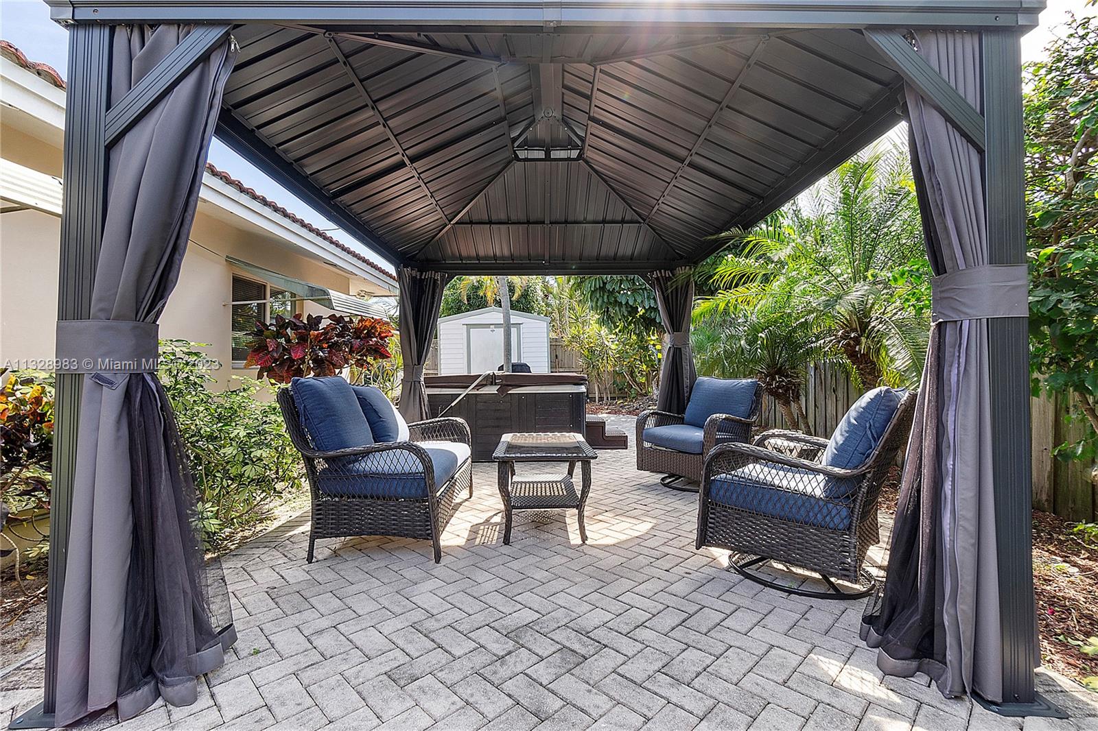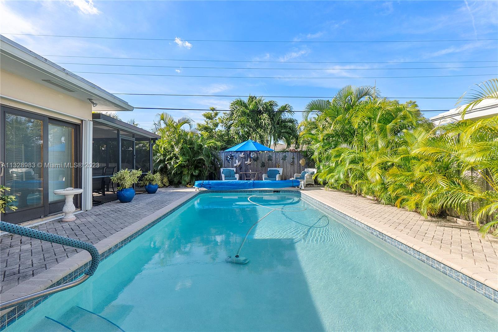 **LOCATION**LOCATION** Impeccable 3/2 pool home in sought after Coral Ridge Isles. 10 minutes to beaches, downtown nightlife and Ft Lauderdale Int'l airport! This substantially remodeled, resort style home features: impact windows, doors and accordion shutters, new stamped concrete circular driveway w/2 car garage, tile floors throughout, expansive updated kitchen w/wood cabinets, granite countertops, double ovens, breakfast bar, and recessed lighting, updated bathrooms, walk-in closet in master, French doors surround spacious family room with wood burning fireplace. Your private backyard oasis boasts a large covered screened in patio, a gazebo, hot tub, an oversized heated pool surrounded by lush tropical landscaping and brick paver patio, fenced and very private.