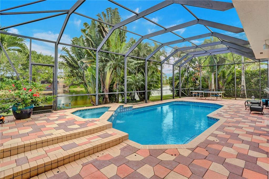 NEW ROOF COMING TO THIS BEAUTIFUL 5 BEDROOM 4 BATH WATERFRONT POOL HOME. EXPANDED PAVER DRIVE LEADS TO SOLID STEEL DOUBLE ENTRY IMPACT DOOR. STEP INSIDE TO PECAN LAMINATE THE ENTIRE HOME. VAULTED CEILINGS THRU-OUT FOR THAT OPEN FEELING. FULL GUEST BEDROOM DOWNSTAIRS WITH ENTRANCE TO REMODEL BATHROOM WITH FLOOR TO CEILING TILING. FORMAL DINING ROOM W/ TRAY CEILINGS LEADS RIGHT TO KITCHEN FEAUTURING MAPLE CABINETS AND DEEP RICH GRANITE. BOSCH DROP IS STOVE, STAINLESS FRIG, AND WALL MOUNT MICROWAVE AND OVEN. FAMILY ROOM WITH DIRECT POOL VIEWS AND ROOM FOR DINETTE OR POKER ANYONE! UPSTAIRS HAS SMALL LANDING PERFECT FOR SMALL OFFICE & LEADS TO 3 GUEST ROOMS. MASTER HAS HIS AND HERS WALK IN CLOSETS, DUAL VANITIES WITH PREP AREA.