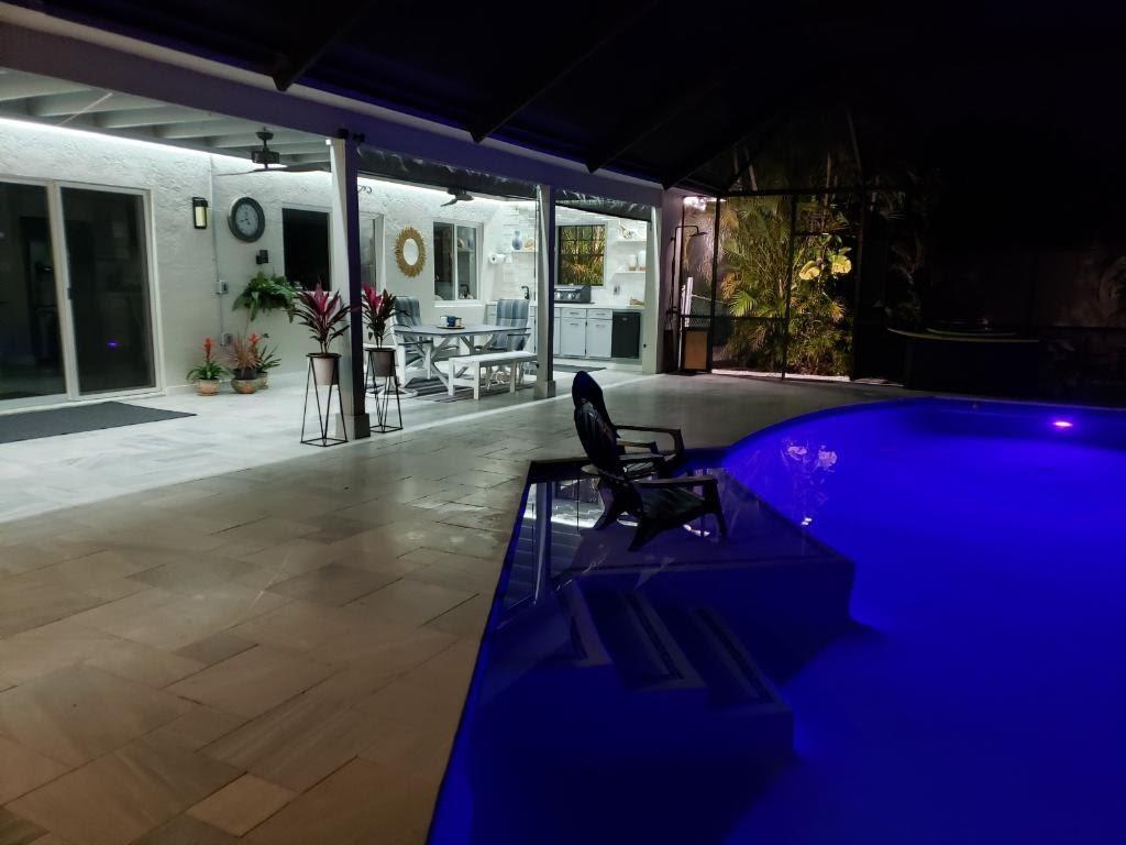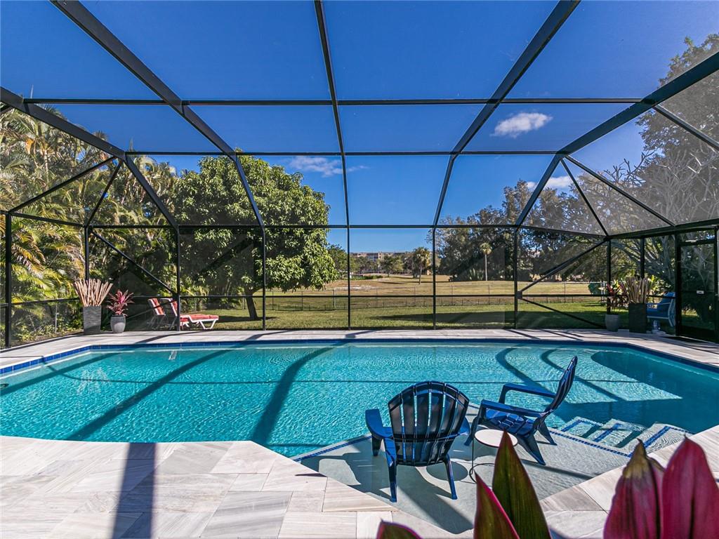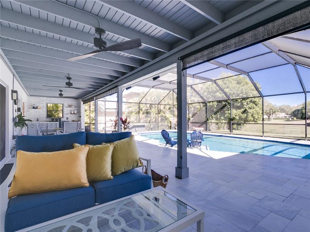 Spectacular is the only way to describe this meticulously renovated 4 bed/2 bath home with den! Know that your electric bills will be reduced with your solar panels, new roof, new insulation and impact windows! From the moment you walk in the front door of this open concept home, you notice attention to detail; from the ceiling lighting to the under cabinet motion lighting in the bathrooms, and everything in between. All has been done! Get your beverage from your coffee/beverage bar and sit outside by your salt water pool in a screened back patio with a view of the Golf Course. Florida living at its best; a beautiful outdoor kitchen, with two cabana bathrooms and an outdoor shower. No expense was spared by this owner, a contractor. Seller would love to sell turnkey. Come and see!