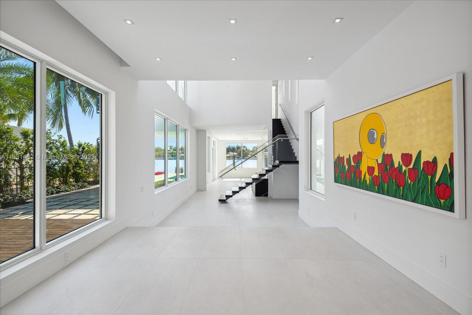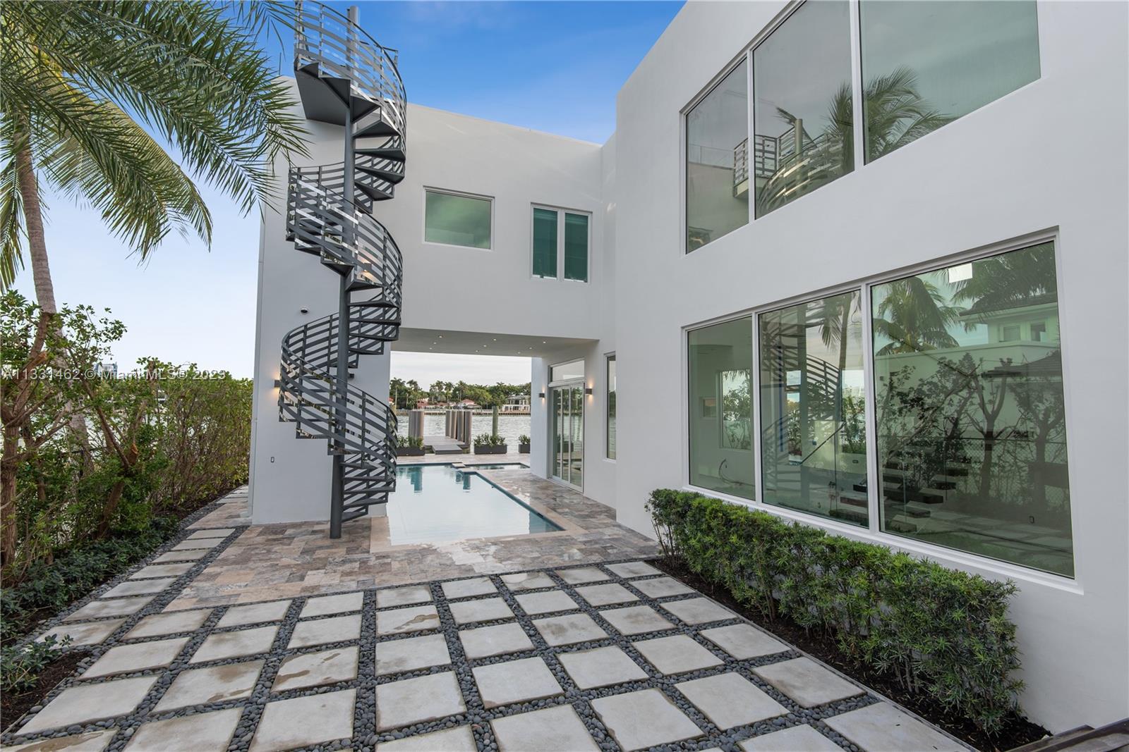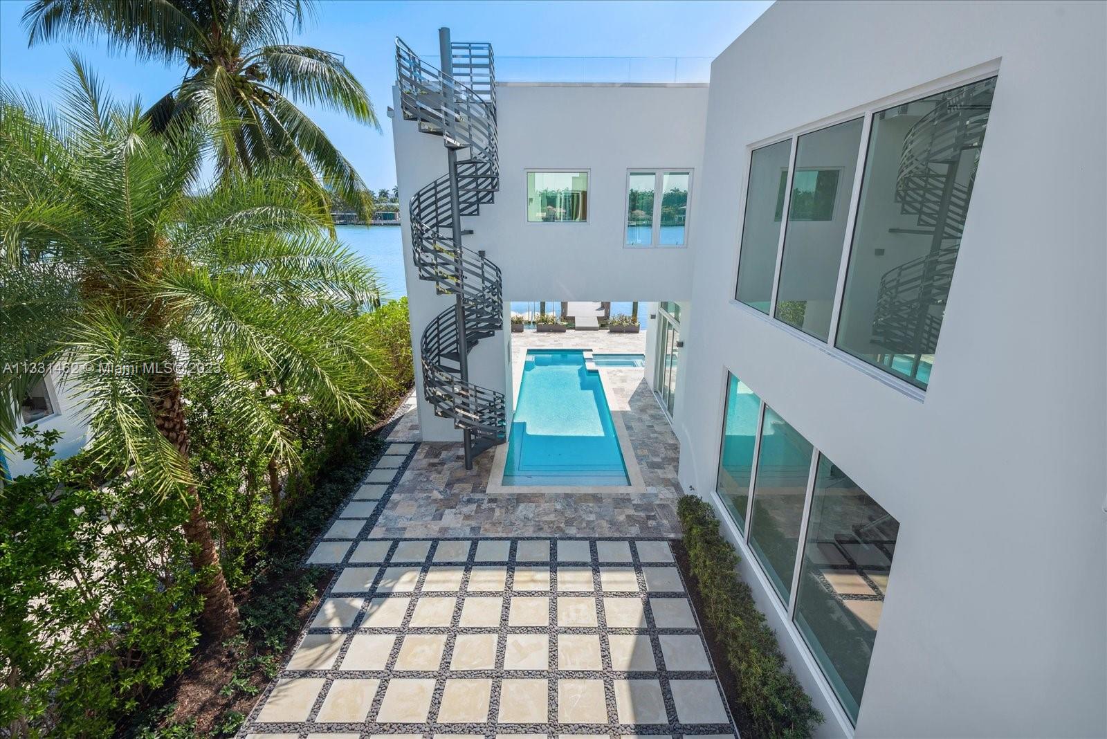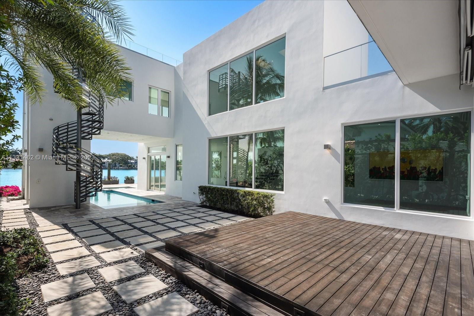 Exceptional opportunity to own a breath taking, pristine Ultra-Modern waterfront masterpiece! This 5 bedroom luxury home boasts over 5000 Sq ft of living area and 53 ft of open water frontage. The exceptionally designed luxurious living space flawlessly connects interior with the exterior. Inside, an incredible living room with striking 20+ ft ceilings, featuring a gourmet kitchen. Italian cabinetry throughout all bathrooms and closets. Amazing open water views. Prominent size pool, spa and deck. LED exterior lighting for the lush landscaping. Adore the sunset from your exclusive third floor terrace or master spa bath. This home has it all. Remarkable for entertaining.