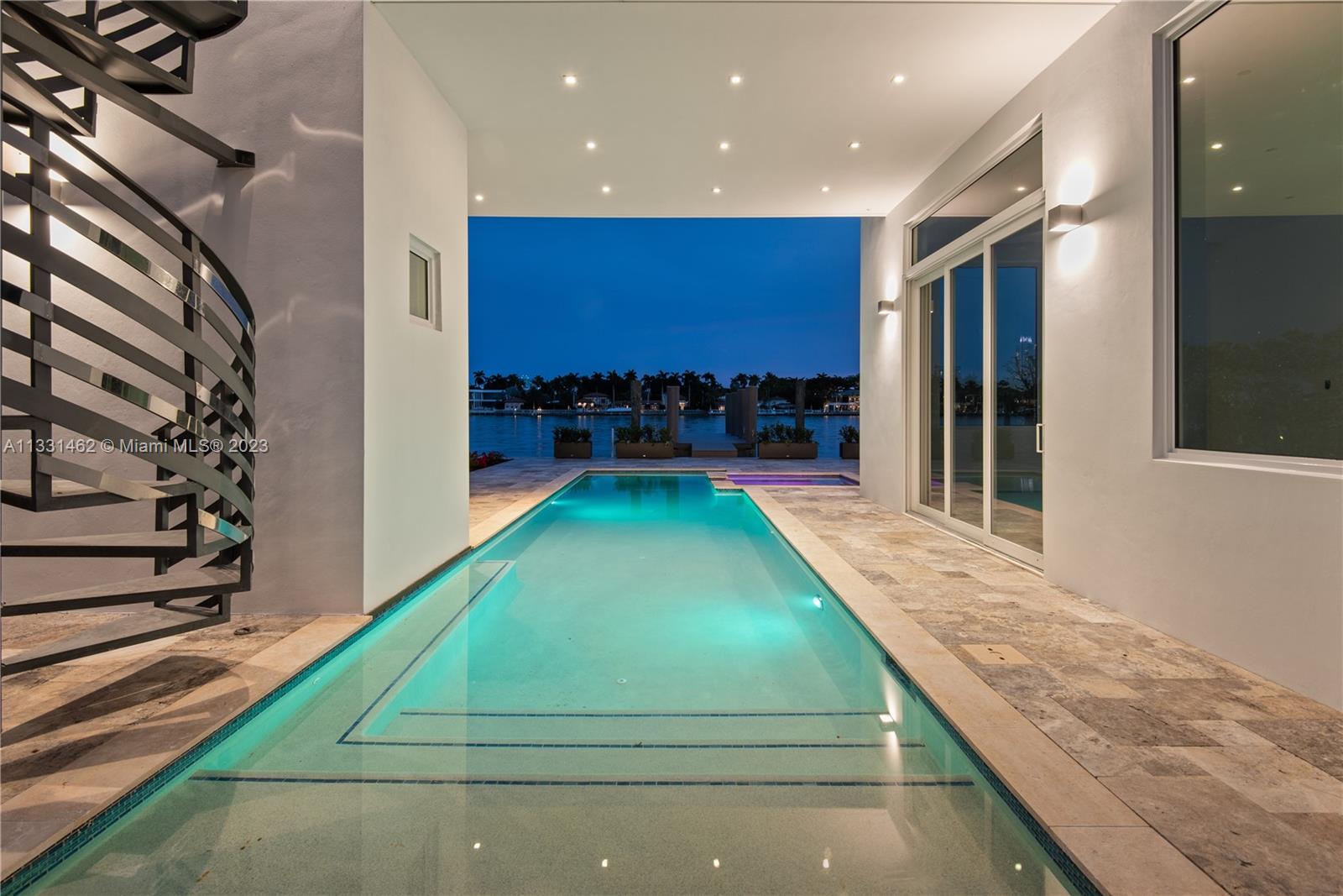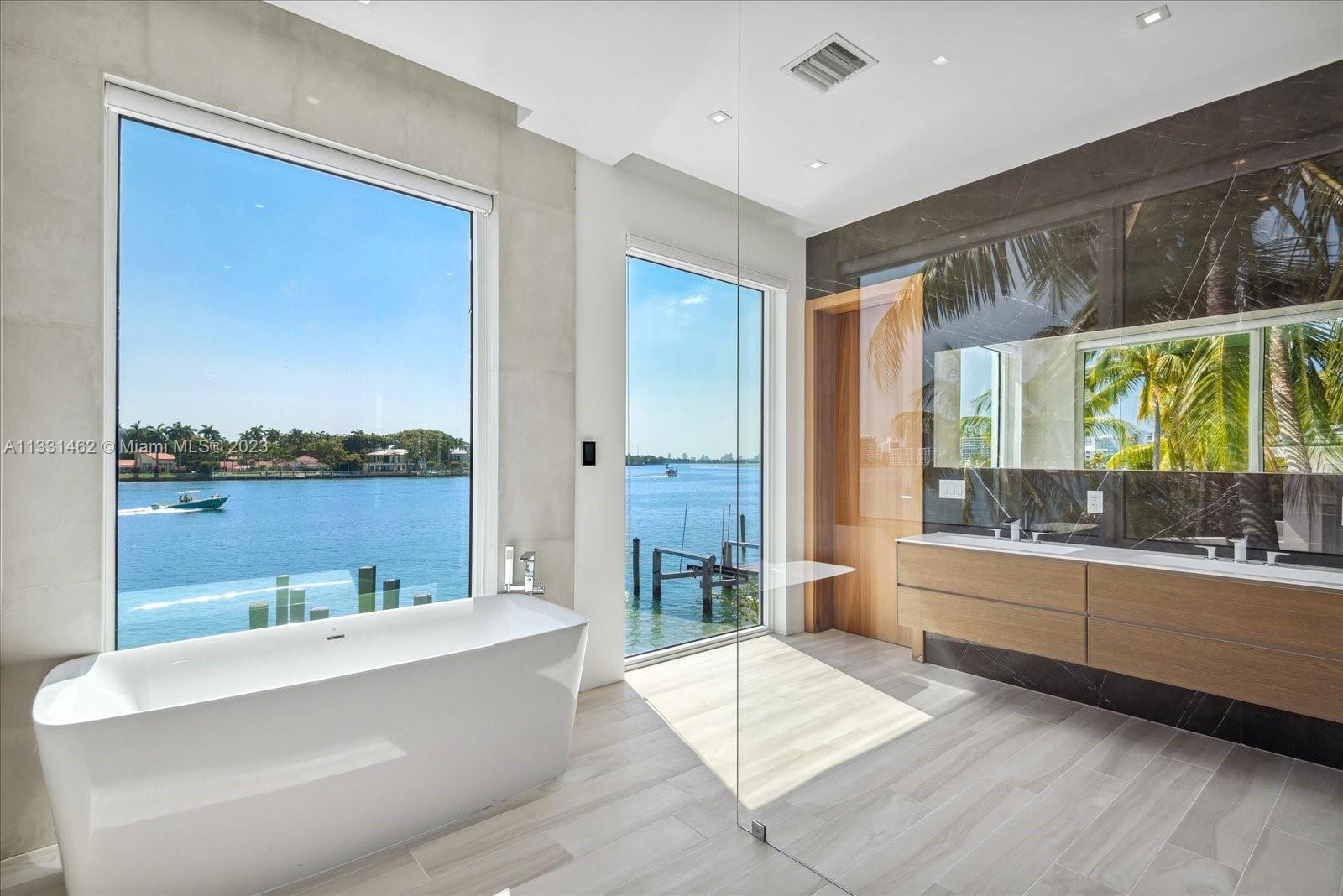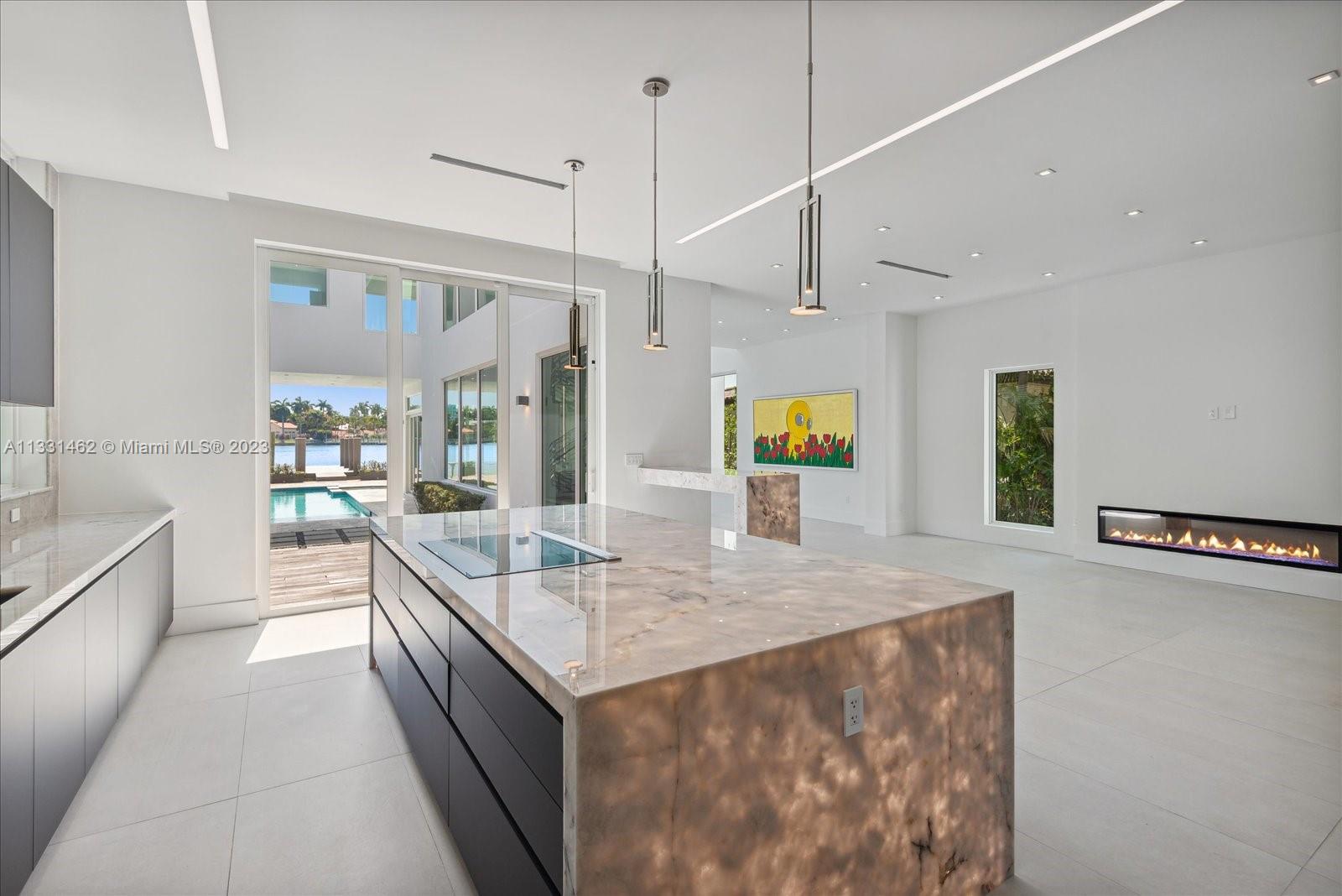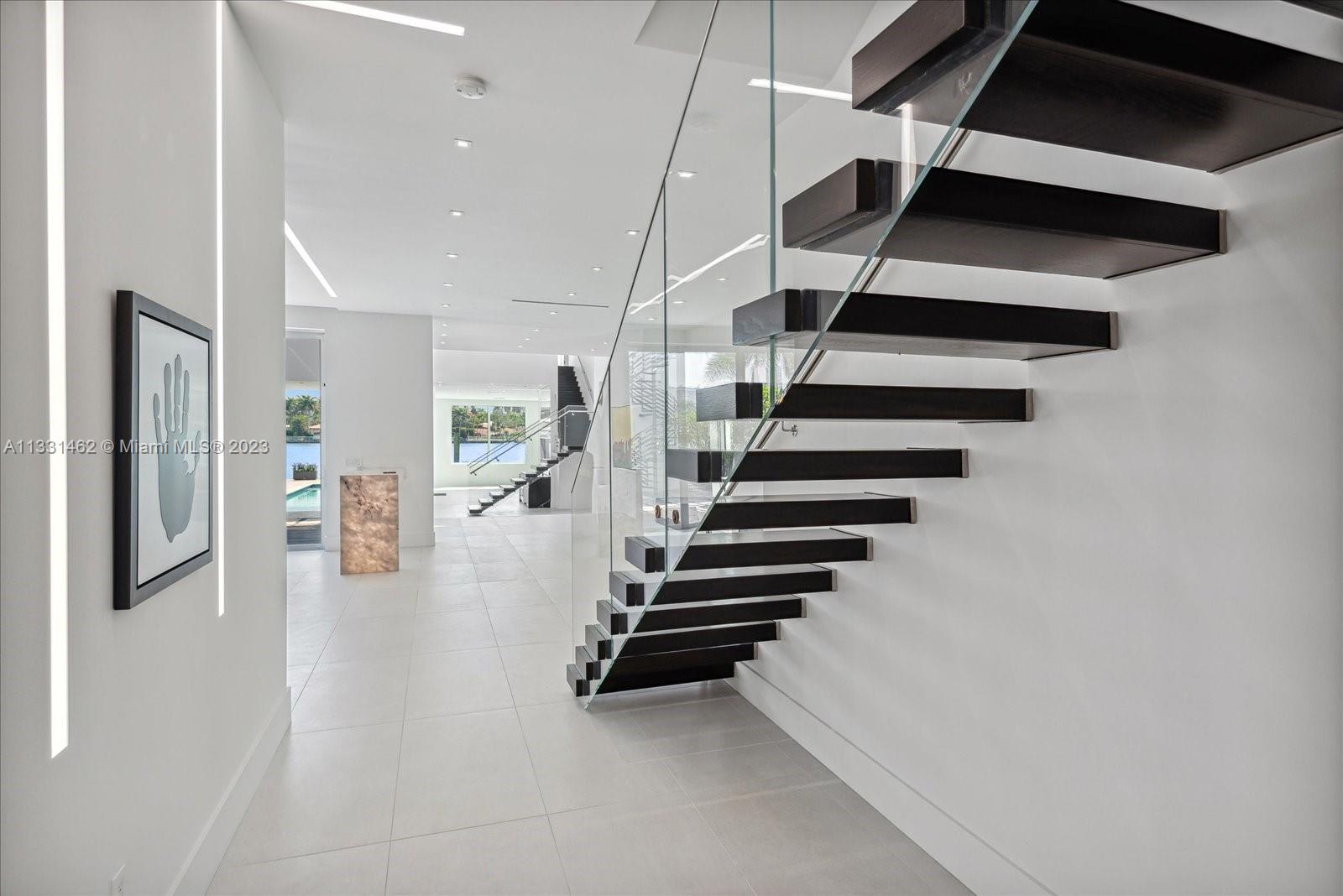 Exceptional opportunity to own a breath taking, pristine Ultra-Modern waterfront masterpiece! This 5 bedroom luxury home boasts over 5000 Sq ft of living area and 53 ft of open water frontage. The exceptionally designed luxurious living space flawlessly connects interior with the exterior. Inside, an incredible living room with striking 20+ ft ceilings, featuring a gourmet kitchen. Italian cabinetry throughout all bathrooms and closets. Amazing open water views. Prominent size pool, spa and deck. LED exterior lighting for the lush landscaping. Adore the sunset from your exclusive third floor terrace or master spa bath. This home has it all. Remarkable for entertaining.