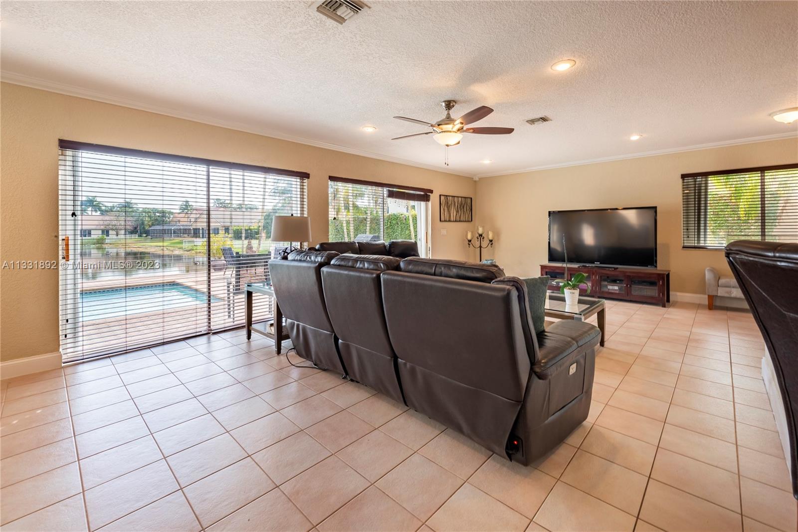 Breathtaking lake views from the second you walk in the gorgeous custom entry doors of this spectacular estate! As one of the most in demand floor plans, this home has it all! Huge updated kitchen w/ granite counters, stainless steel appliances, walk-in pantry, & a large island opens into the expansive family room *Wet bar w/ wine fridge off the family room is perfect for entertaining *Oversized pool overlooking peaceful lakeview *Spacious rooms *Luxurious remodeled master bath w/ jetted tub & custom glass door *1 bedroom/full bathroom downstairs *Tile/vinyl floors throughout *Accordian shutters & upgraded garage doors *Dual zone AC's both replaced 2019 & 2021 *3 car garage w/ storage built-ins *Gated community *Association fees include cable & internet Master: $450/Q Sub: $120/Q