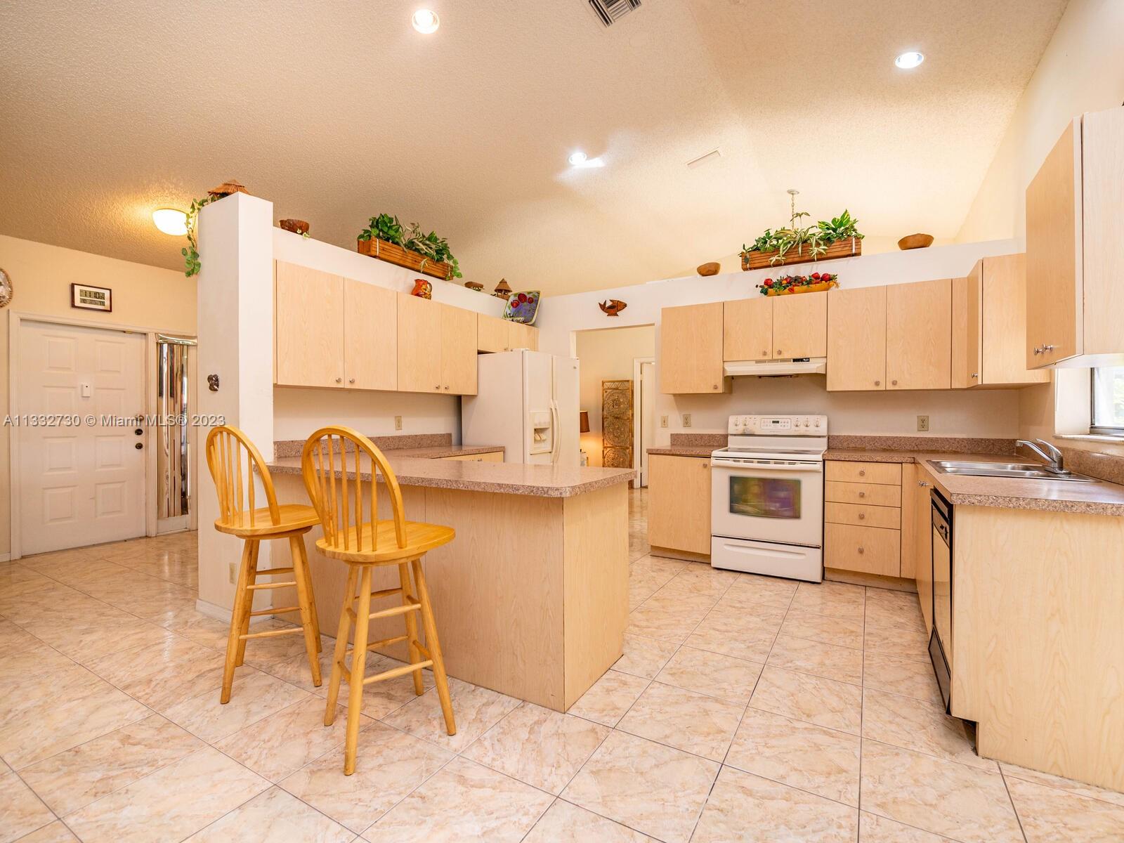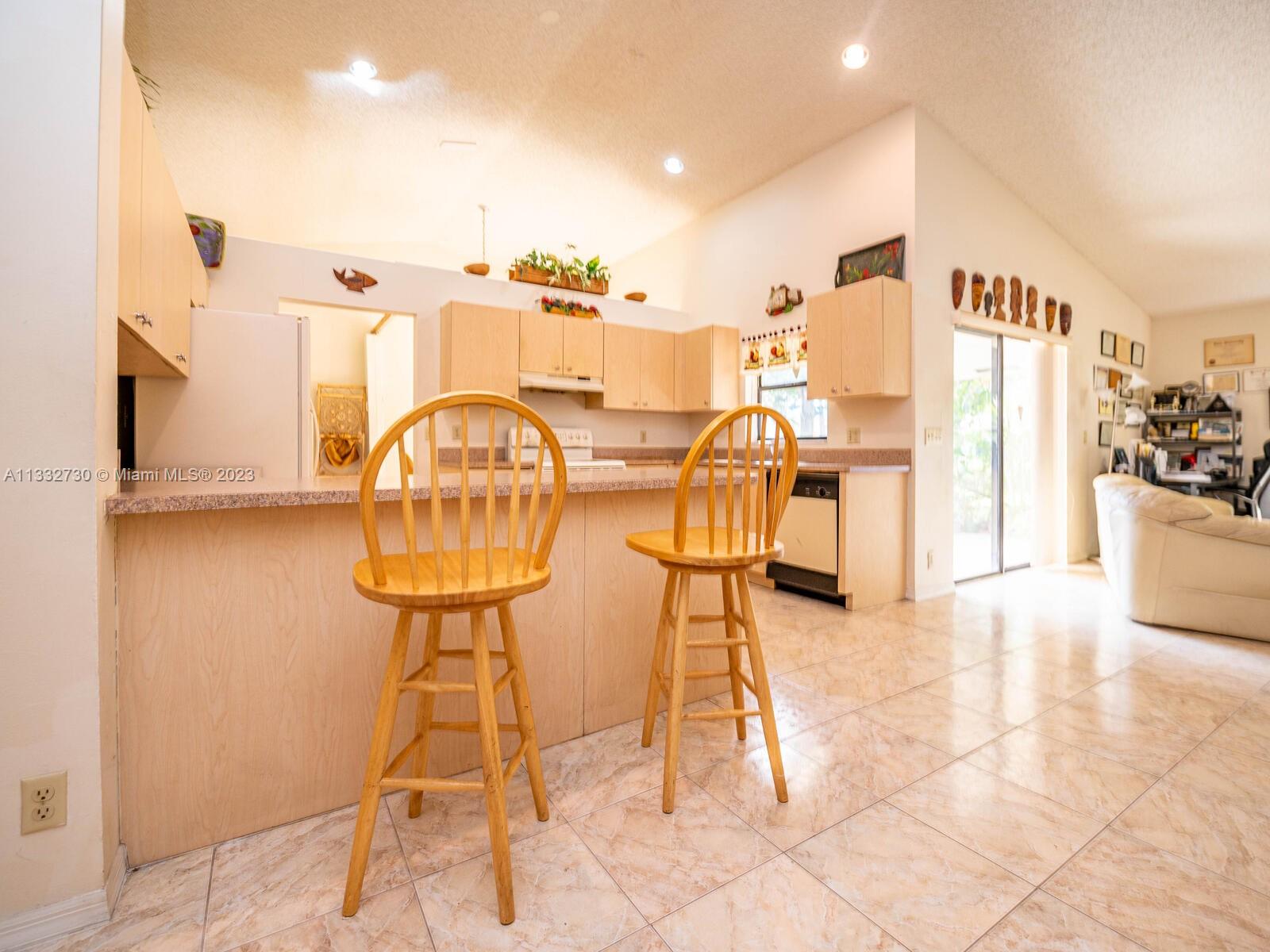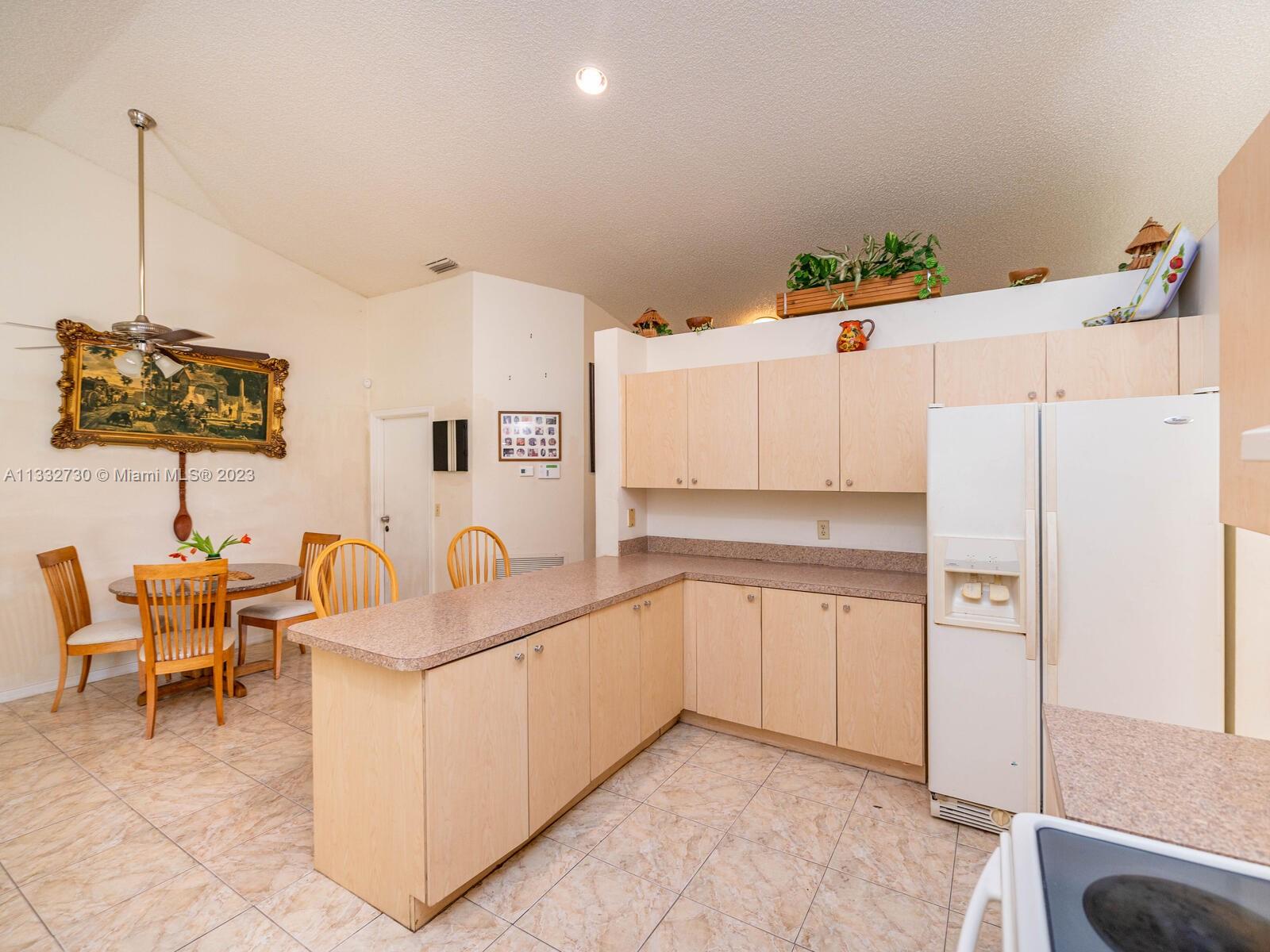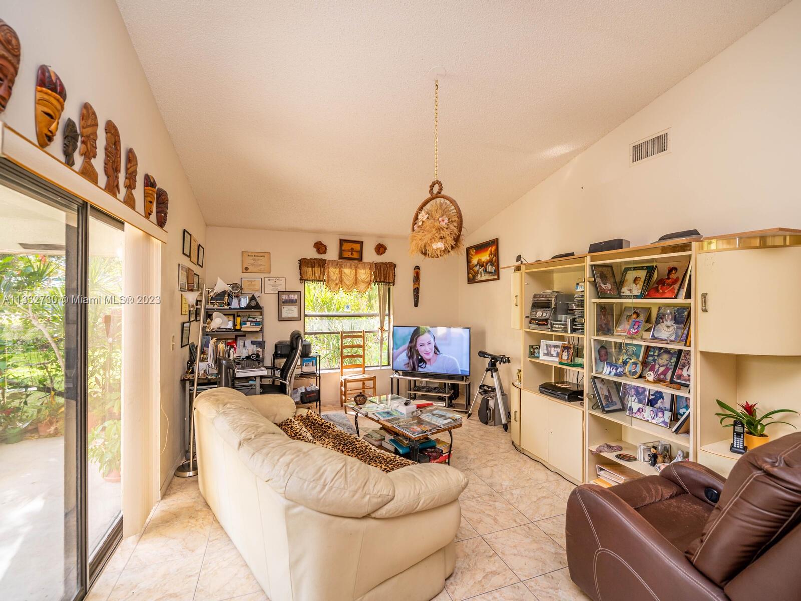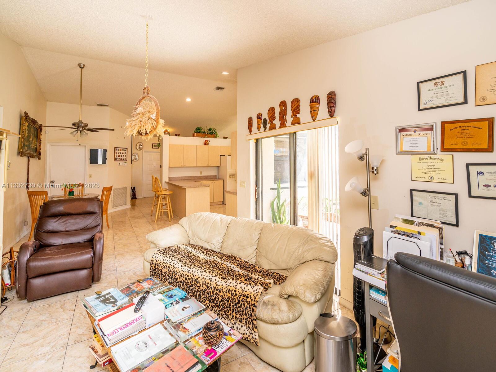 Beautiful & well kept 3 Bed 2 Bath, high vaulted ceilings, with tile in living area & carpet in master bedroom. Home features: eat in kitchen with counter top, dinning room and living area Centrally located in a nice Briargate community in Miramar & close to major highways, good schools, parks and shopping center. Large back yard with many tropical fruit trees with plenty of room for a pool. Bright & spacious floor plan with two-car garage. Turn key & ready to move in.