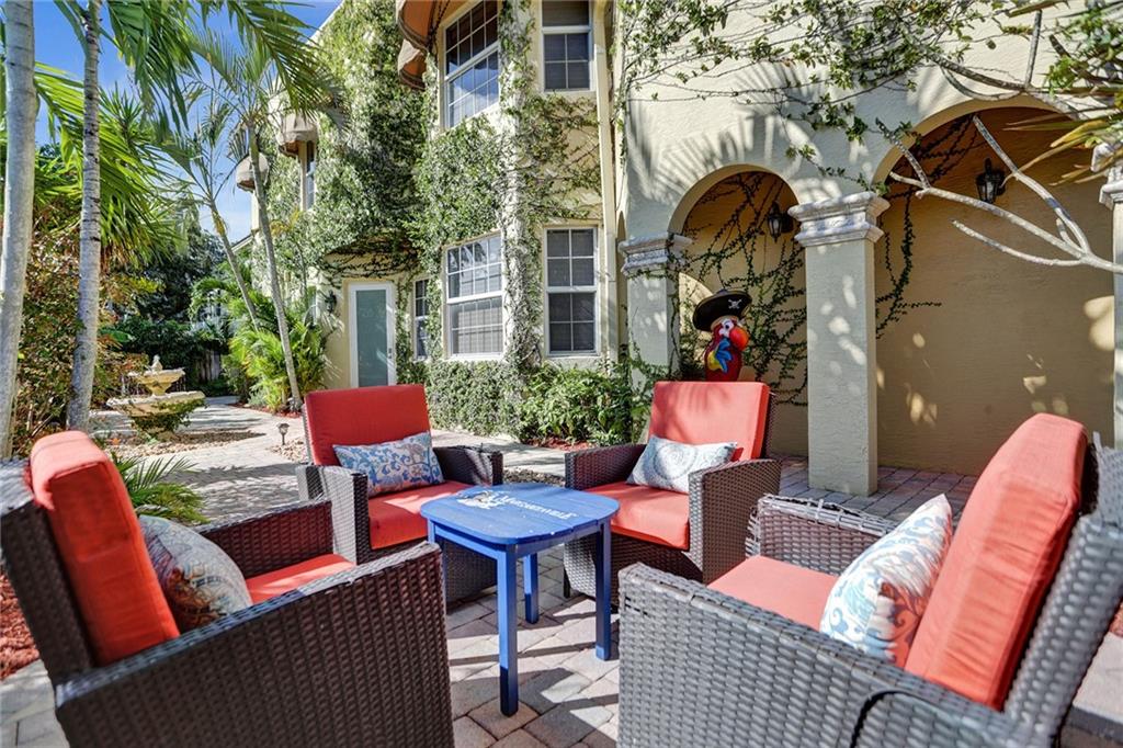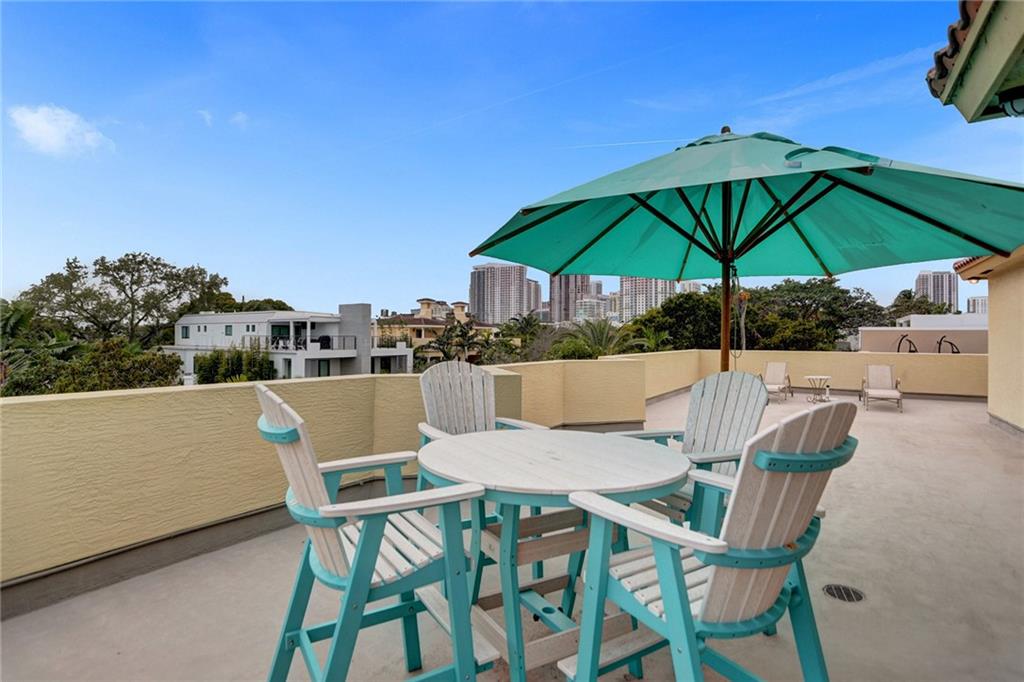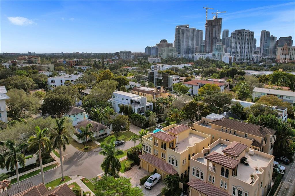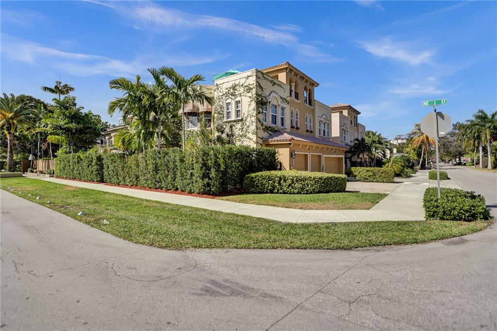 Located on one of the most desirable streets in Victoria Park & 5 blocks to Las Olas Blvd. A corner lot offering an abundance of outdoor space truly makes this home unique & feel like a SFH. A private gate leads to a serene wrap-around garden area with room for a pool. Open kitchen features a breakfast nook & custom wood-top bar. 2nd floor offers double door entry to grand master suite with sitting area, newly updated bath, 2 guest suites, & laundry with new washer/dryer. 3rd floor 1200sf rooftop terrace overlooks downtown with endless design opportunities. Home features include volume ceilings throughout, ample storage including large walk in storage room, new 2 zone AC's, newly sealed flat roof, new refrigerator, new Hunter Douglas shades throughout, Fee Simple, ample guest parking