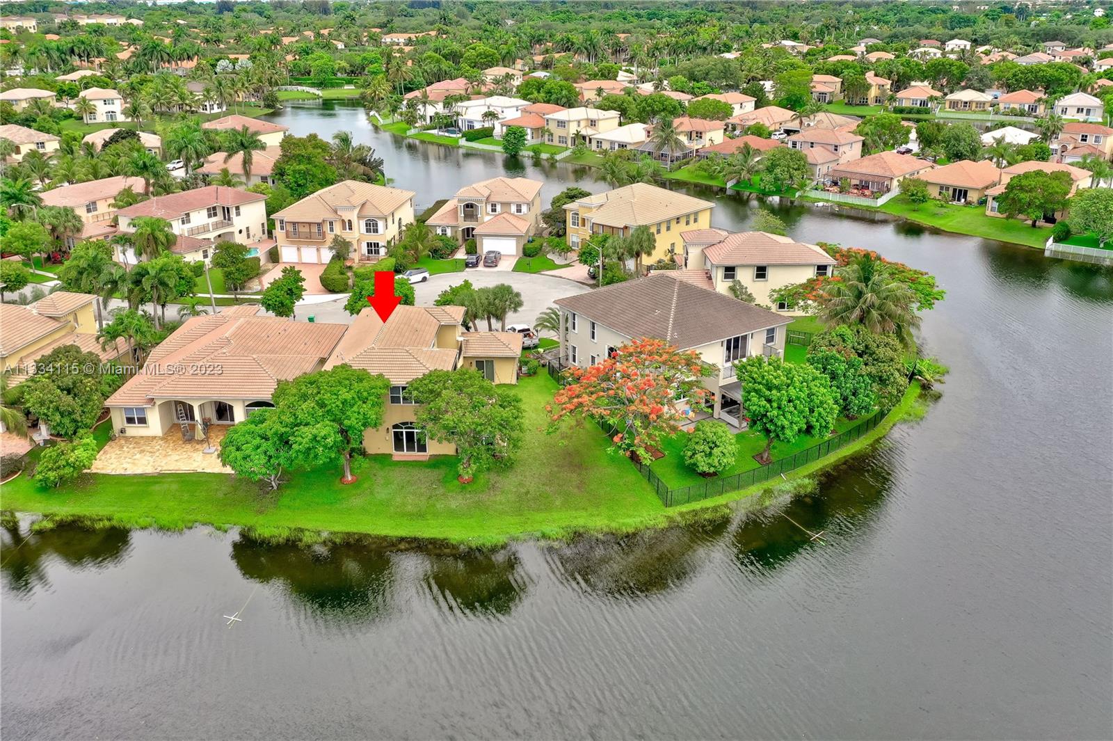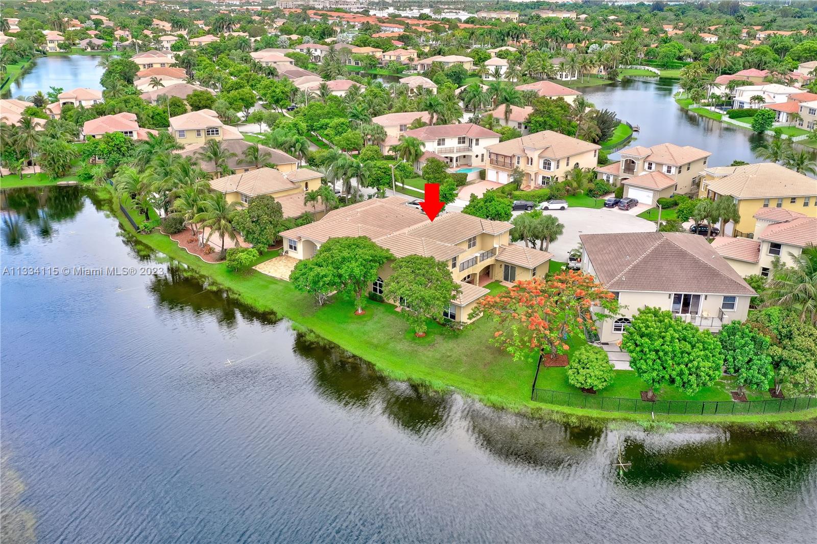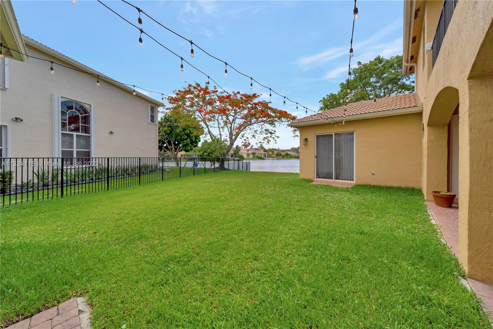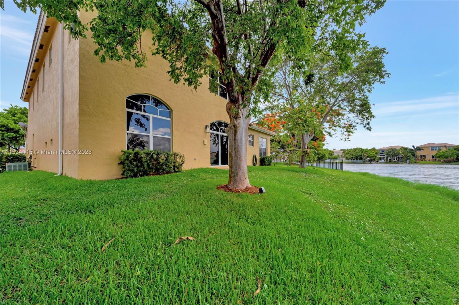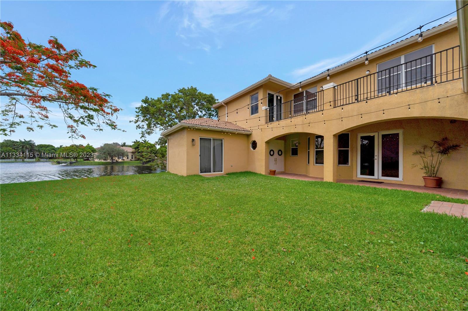 Spectacular 5 bed, 4 bath lakefront home in the gated community of Monarch Lakes! Fall in love w/ the serene lake view & warmth of this home’s modern, contemporary style from the moment you step through the front door. Extremely spacious layout featuring one bedroom & full bathroom on the 1st floor along w/ an additional in-laws quarters in the courtyard showcasing a 2nd bedroom and full bathroom. Build your dream pool & outdoor kitchen in the spacious courtyard over looking the water. Oversized master bedroom w/ dual walk-in closets, a large master bath w/ a soaking tub & a balcony w/ unobstructed water views. All rooms are spacious with w/ custom closets. This inviting home also features a laundry room with sink, panel shutters, and a 2 car garage with plenty of space for storage.