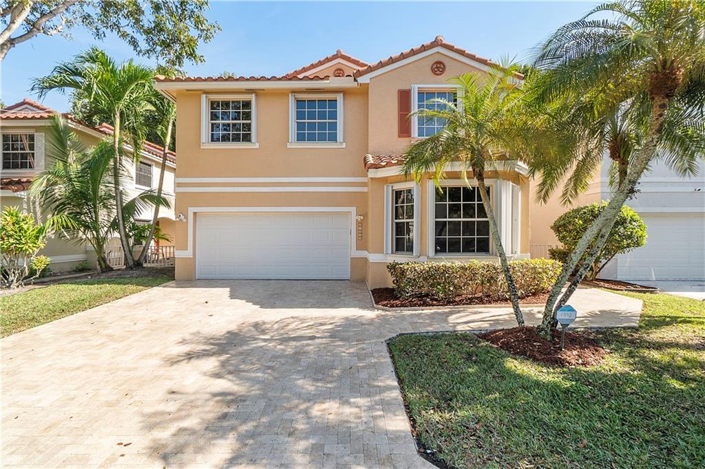 Introducing a beautiful open floor plan! 4 bedroom 2.5 bathrooms located in the desirable gated community of Kensington Green. New Roof (2017) , Travertine pavers for an expanded driveway, walkway, & patio. Impact windows & doors/accordion shutters,insulated garage door, plus a 5 ton AC(2020). Recently painted inside and out. This home boasts a fenced-in backyard for privacy. One bedroom/office on 1st floor. All rooms have high-speed internet & network jacks. Wood laminate floors in all bedrooms. The great room has high ceilings & wired for surround sound. The kitchen boasts granite counters & SS appliances/pot filler. Large trees in the backyard provide privacy. The home is equipped with a fully functional cloud recording alarm system. Low HOA, close to top schools, shops & highways.