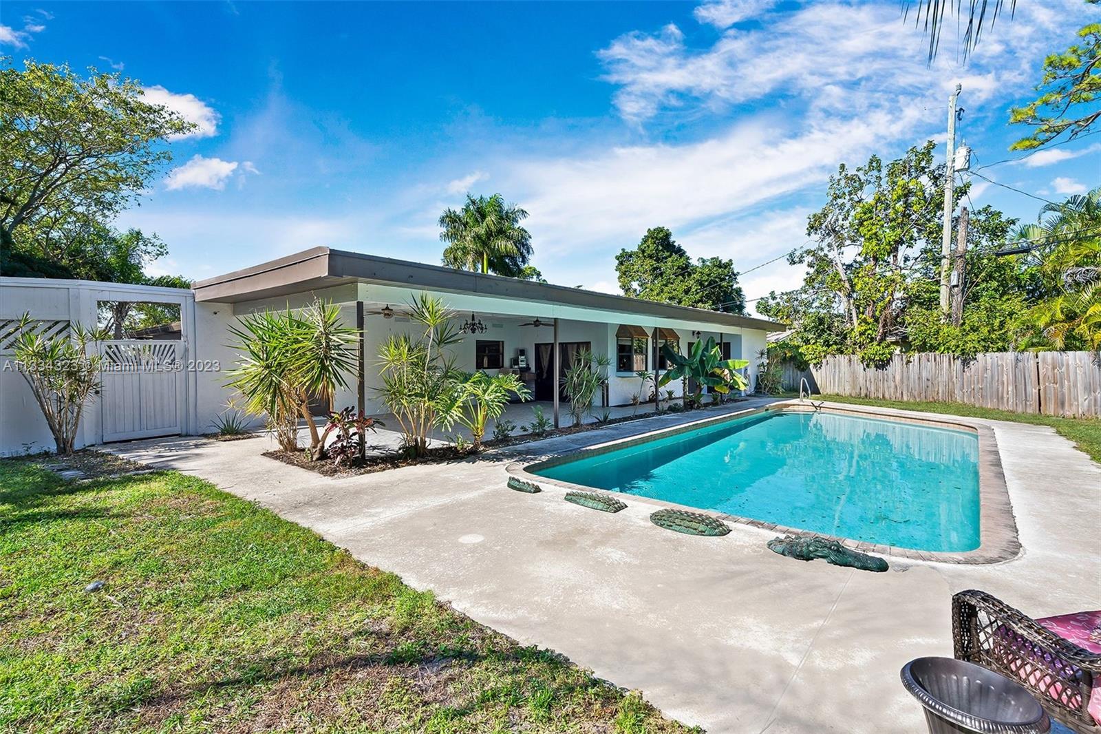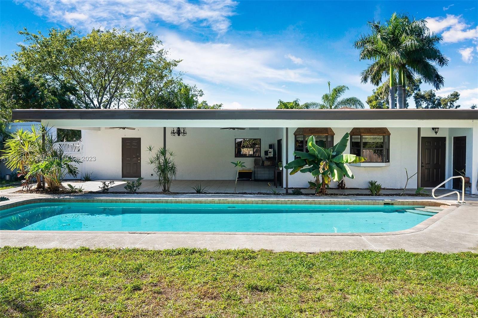 Amazing 4 bedroom 3 bath pool home in the heart of West Palm. This home provides so many options and with it's oversized 1/4 acre lot and no HOA the opportunities are limitless to what you can do with this home. The converted garage can be one unit with the house or its own efficiency with separate bath, kitchenette, laundry area and bedroom. This makes the property so versatile for multifamily, in-law suite, or even as a rental with its own entrance. Beautiful porcelain tile in the main areas, floor to ceiling tile in the primary bath and lots of open space for entertaining. You will enjoy the expansive covered porch and beautiful pool surrounded by plenty on yard and green space. Fenced yard has large side gate and drive to store boats, RV's and more without the HOA hassle.