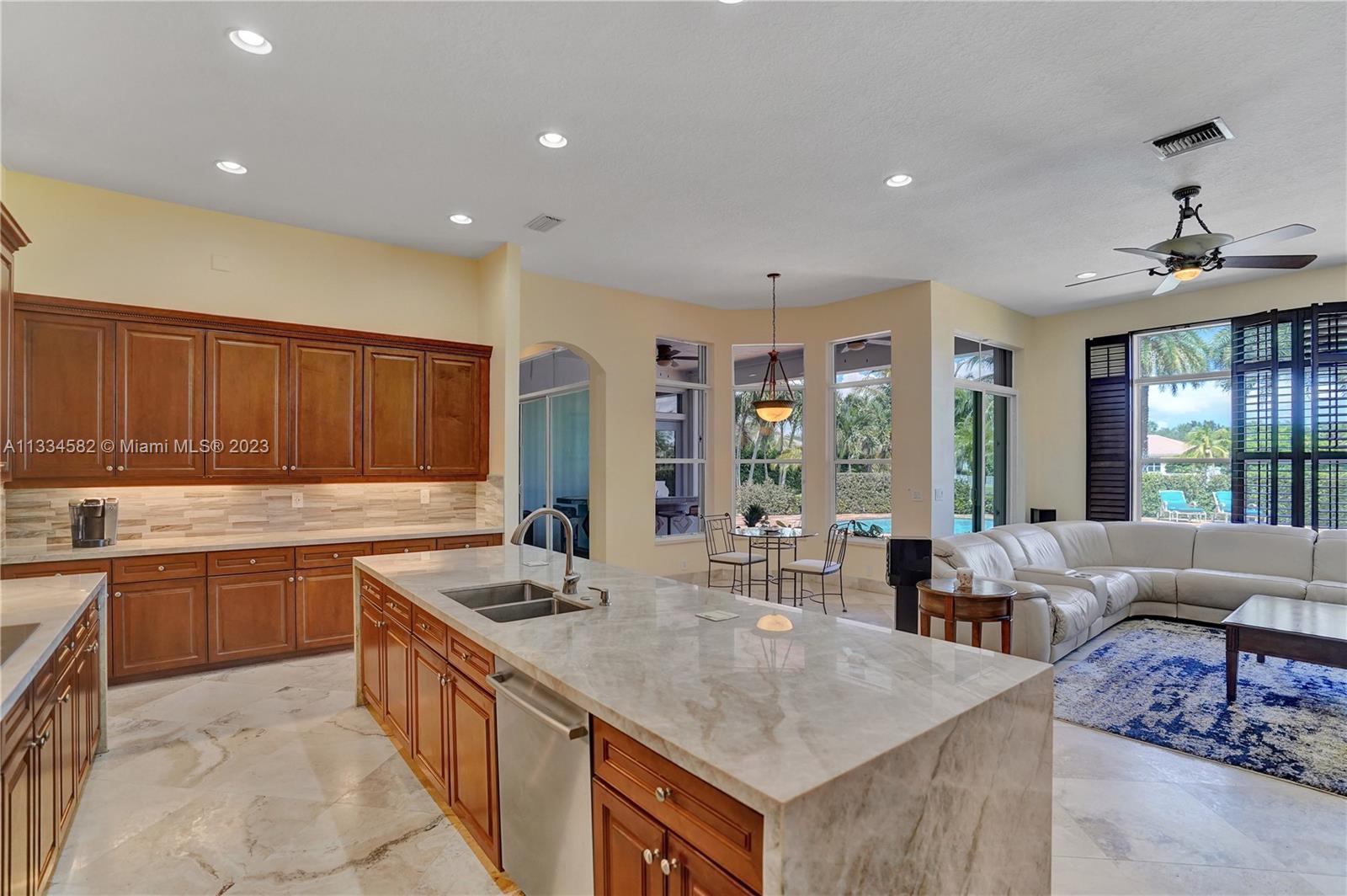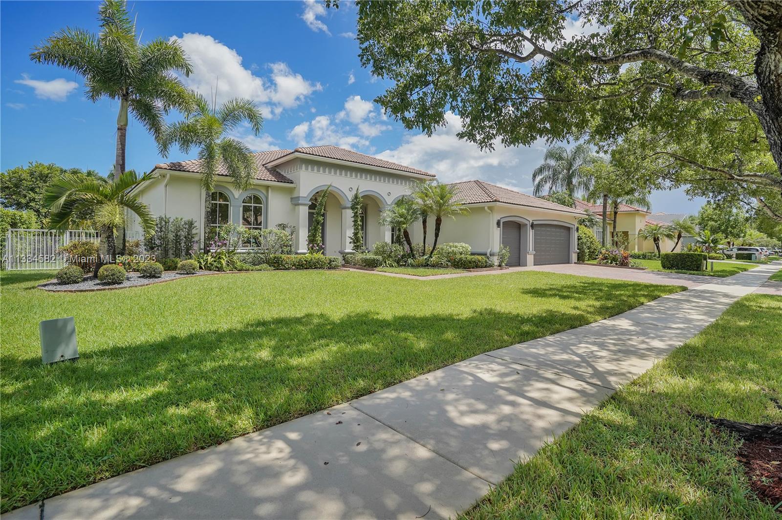 Gorgeous lakefront fountain-view home on oversized lot right in the center of the gated community of Hibbs Grove. Property is situated on 32,000 sq ft of land offering tropical landscape vibes, beautiful sunrise views, extended yard space, outdoor kitchen, covered patio and a fantastic heated saltwater pool. True 5 bed plus office and 3.5 bath this triple split floor plan is open and inviting. The remodeled kitchen overlooks the massive great room and eat in kitchen area with wide views of the beautiful pool, gardens and lake. Home has been freshly painted, new exterior light fixtures and the 3 car garage has upgraded flooring and cabinets for organization. *Per seller, Hibbs Grove community shares the same power grid as the hospital!*