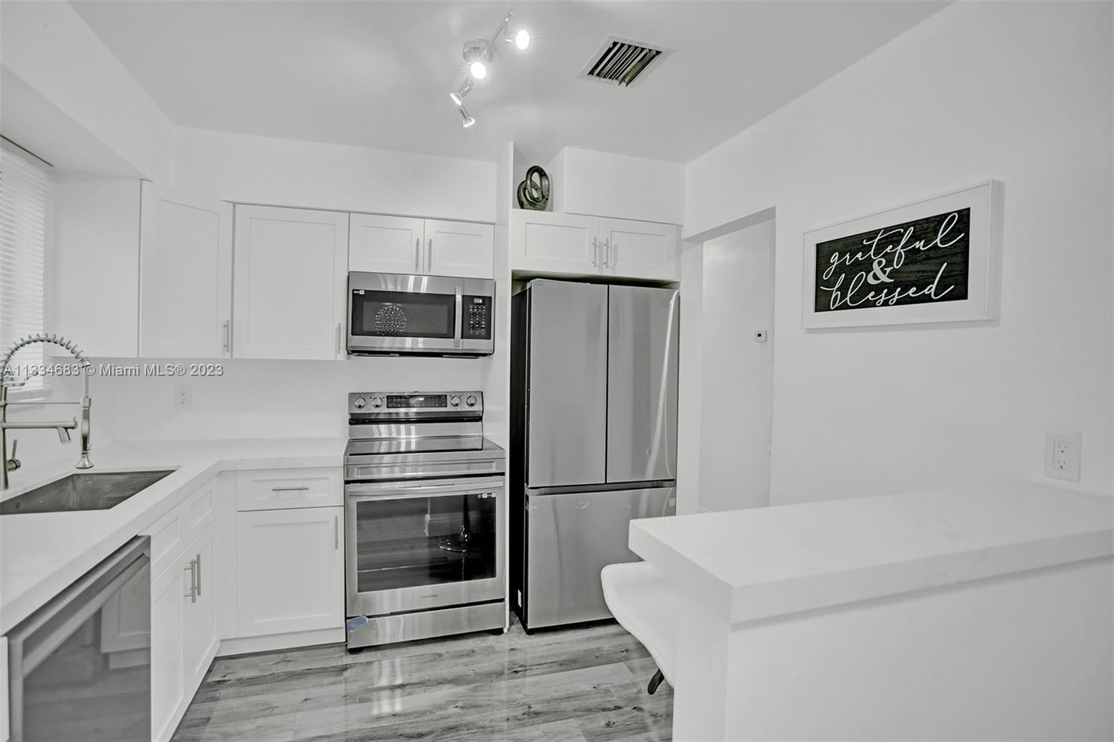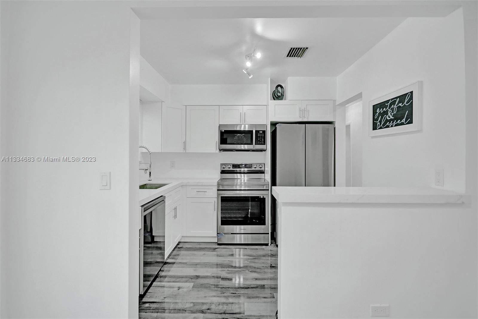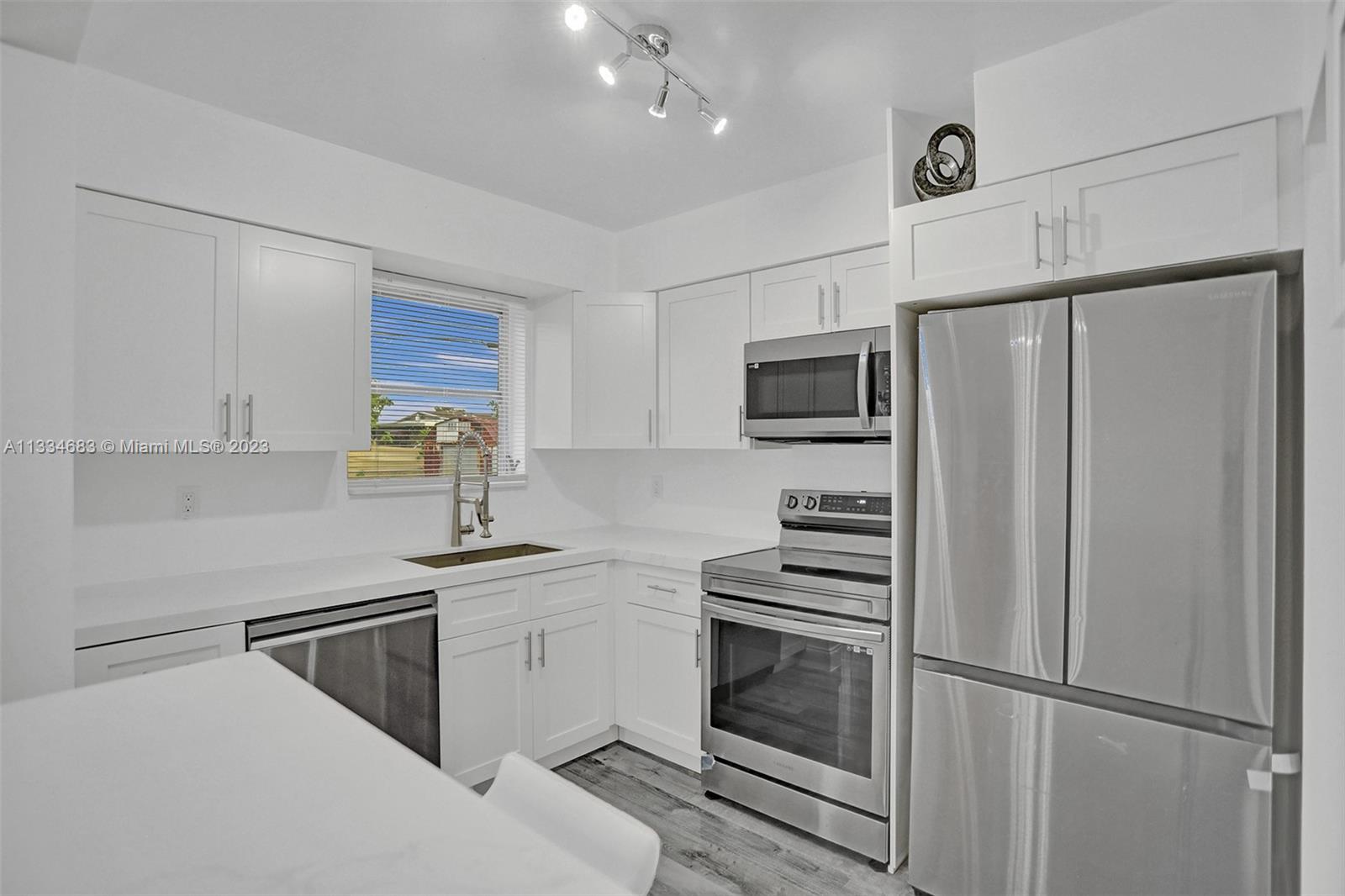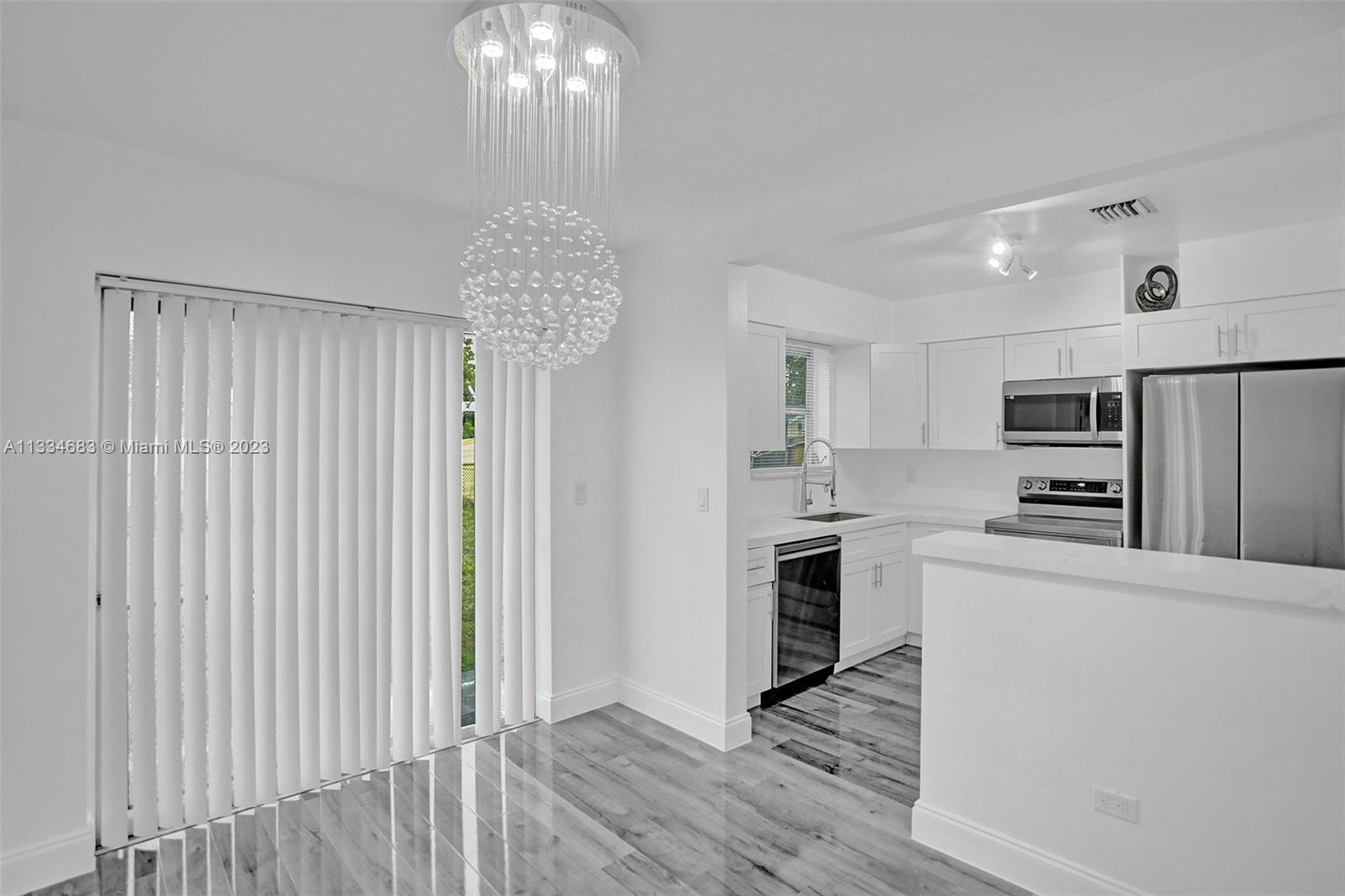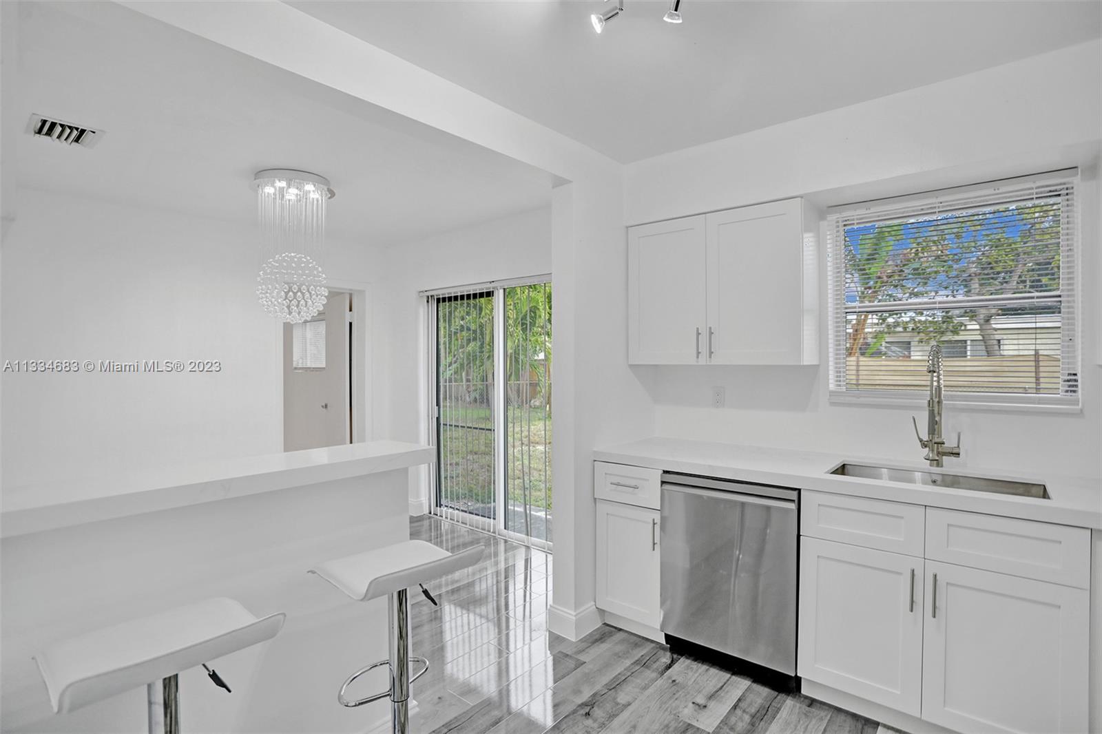 BUY IT TODAY, MOVE IN TOMORROW! This beautiful home is ready to welcome your family and friends with its top to bottom fully remodeled interior with all of the modern finishes, priced to sell! NEW 2022 shingle roof and hurricane shutters makes this home storm ready! Featuring a NEW 2023 European style kitchen with soft close cabinets, Calcutta quartz counters and NEW Samsung SS appliances. Laminate flooring throughout the home complimented by recessed lighting in the open living area and modern light fixtures throughout. In addition, 4th bedroom or possible mother-in-law quarters with its own separate entrance, NEW 2023 remodeled bathrooms with new vanities, light fixtures and energy-efficient toilets, fenced in yard, storage shed, Utility-laundry room and ample storage closets.