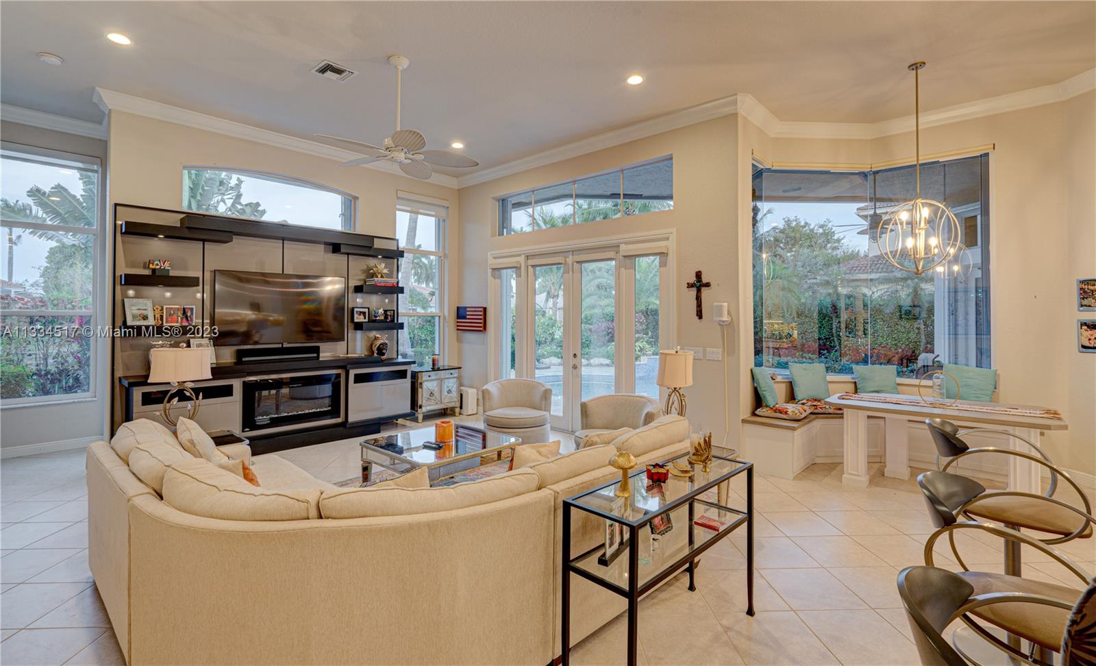 Amazing Lakefront opportunity in the luxurious & gated Isles East community. This updated 4bed/3.5bath + Den & 3 car garage custom built home boast volume ceilings throughout, open floor plan w/ formal living & dining rooms. Completely remodeled kitchen w/quartz tops & stainless steel appliances, opens up to large family room overlooking upgraded pool & travertine tiled terrace area. Split floor plan w/a perfectly situated in-law quarter! Large Master bedroom with walk-in closet. Master bathroom also completely updated with his & her vanity, jacuzzi & separate shower. Home was impeccably remodeled with high end finishing. Recessed Lighting & Surround Sound throughout. Many upgrades! Built for entertaining. Also located in one of the top rated school districts in South Florida. Won't last!