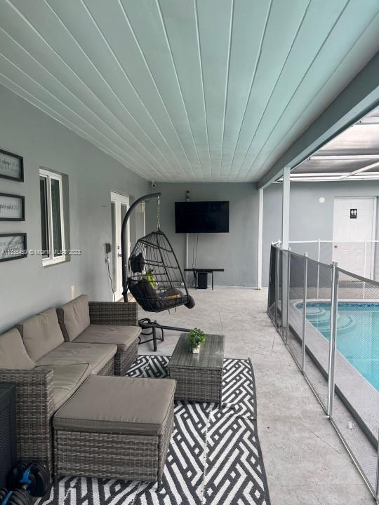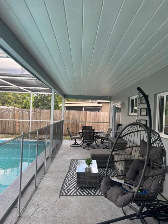 Beautifully renovated 3 bedroom + 2.5 bath single family house with converted garage that can be used as a 4th bedroom or office. Chef's kitchen with acrylic soft close cabinets, 2 Lazy Susans, pull out spice rack and utensil storage, touch activated sink and brand new kitchen appliances. Amazing master bath with 2 shower heads and floating double vanity. Whole House Water Filter System. New roof from 2020, hurricane windows and doors. Security system. Circular driveway to accommodate additional parking. Large screened in pool. Storage shed. Artificial Grass. In a great neighborhood close to the turnpike, very quiet with friendly neighbors. NO HOA.