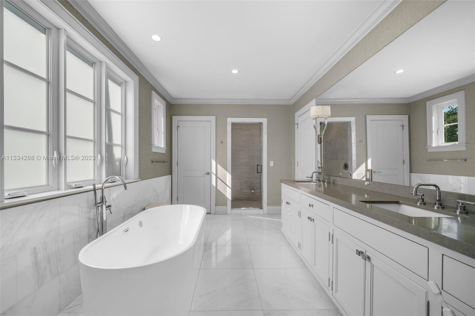 Located on prestigious North Greenway Drive in Coral Gables, the 5-bedroom, 5/1-bathroom main residence and charming guest house was the 2019 recipient of the notable Addison Mizner ICAA architectural award. The award-winning 4,813 SF home is situated on a sizable 11,000 SF lot. An impressive gourmet kitchen offers top-of-the-line appliances with a Wolf gas range and double oven, Sub-Zero refrigerator, freezer, and wine fridge. The expansive primary bedroom suite includes a separate seating area, kitchenette, and an oversized walk-in closet. The outdoor entertainment area features a beautiful heated saltwater pool with spa and a fully-equipped summer kitchen with built-in barbecue. Additional features include a whole house generator and covered terraces overlooking the backyard.