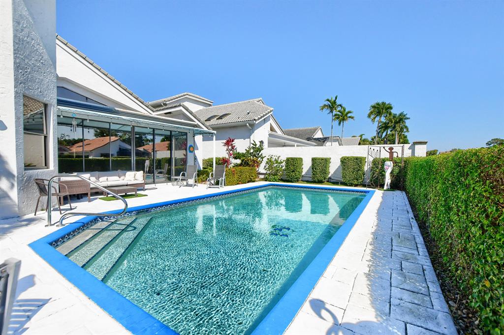 if you are looking for a fantastic one level home on a quiet tropical interior lot with a glass enclosed Florida room that overlooks a beautiful patio and oversized heated pool then this bright open floor plan home is for you!. This three bedroom (the 3rd bedroom is a bedroom/den) has been meticulously maintained. Brand new Pool heater, one year old ac system including new duct work, newer roof, cabana bath, eat in kitchen, large open living room and dining area, great master bedroom with 3 closets (2 are walk-in) is all within walking distance to the clubhouse, golf course, tennis cts, spa, restaurants, schools, shopping and houses of worship. Equity membership is required.