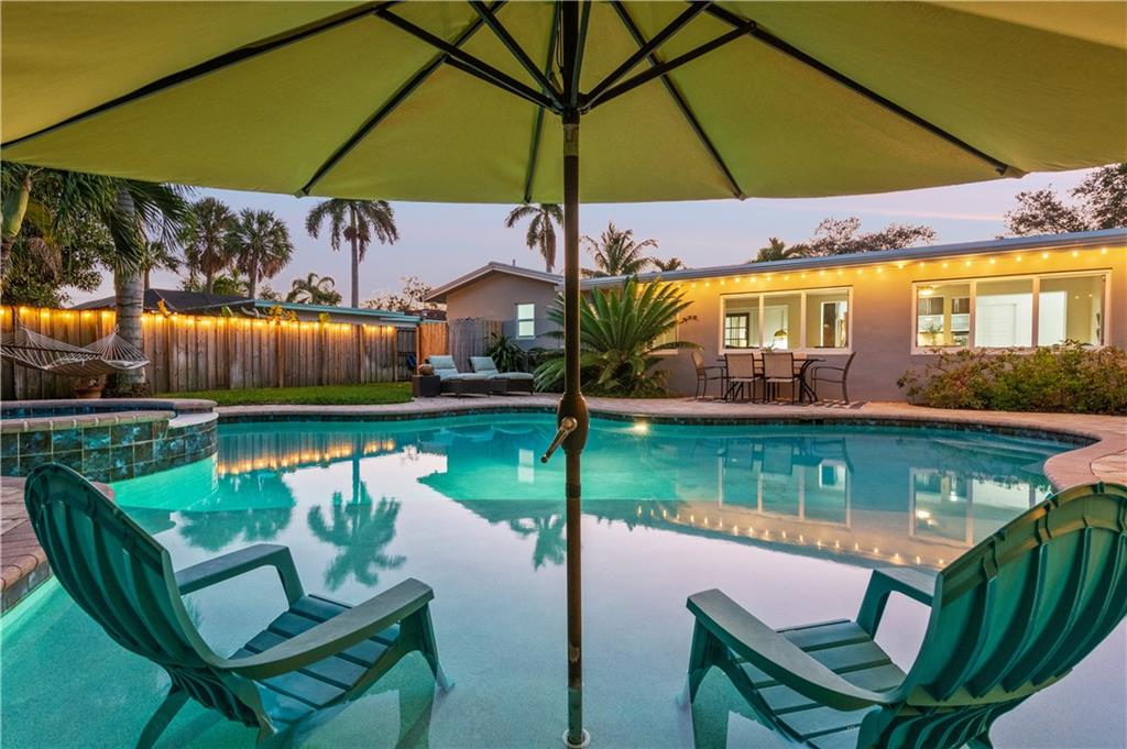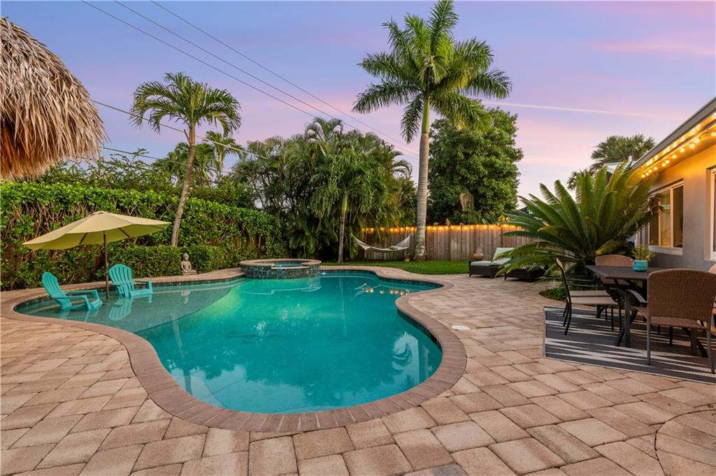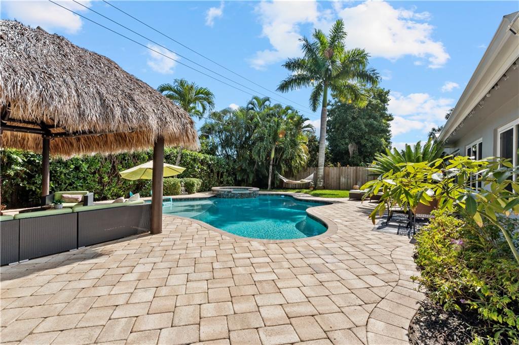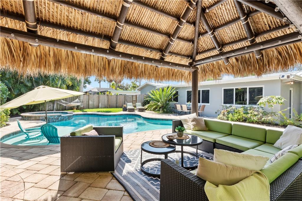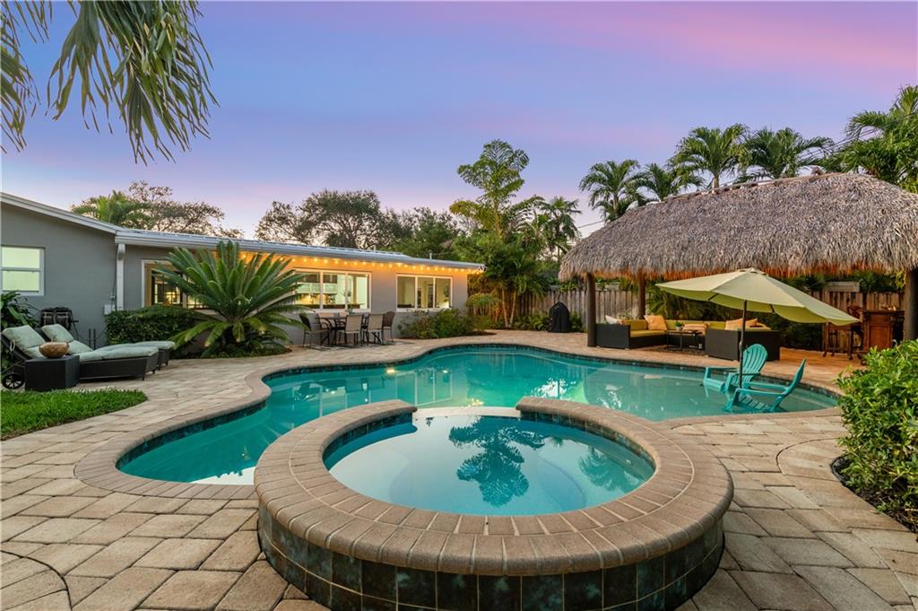 Beautiful Tropical Oasis nestled in the Prestigious Imperial Point area. Move-in-ready home features a tropical landscape, large swimming pool with sun shelf, oversized in-ground hot tub flowing into the pool, outdoor heated pool shower and covered bar. Spacious 3 bed 2 bath home offers two dining areas, large walk-in pantry accessible to kitchen, beautifully updated kitchen with granite countertops, top of the line appliances, large breakfast bar for seating, indoor laundry room, multiple living areas, wood look tile, updated bathrooms, recess lighting and so much more. This home comes with a metal roof and hurricane impact doors and windows. New exterior paint and landscaping gives the perfect curb appeal. All cast iron piping has been replaced with PVC. This home is ideal!