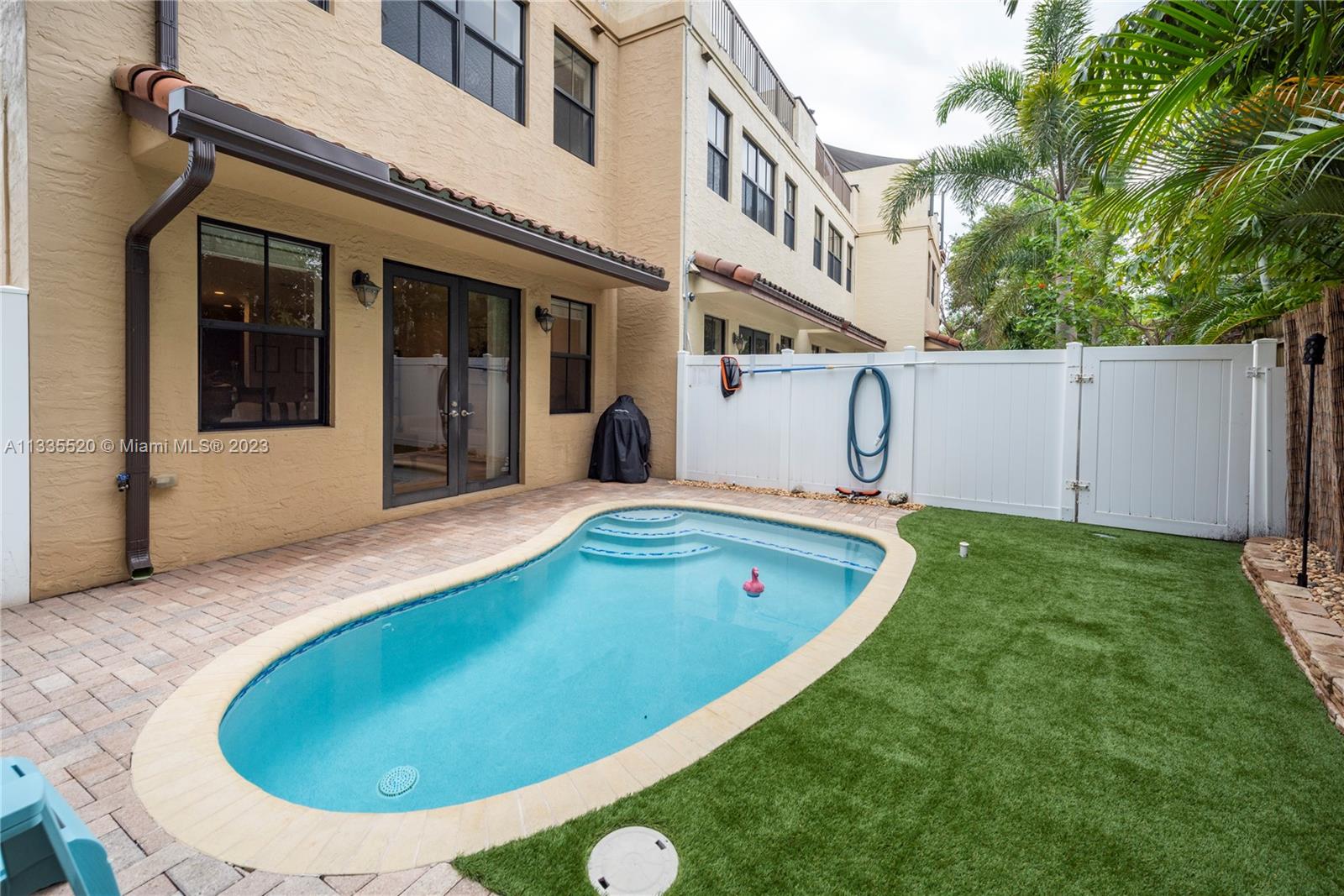 Nestled against the backdrop of swaying palms and the glow of orange/pink sunsets find this stunning tri-story end unit townhome located in sought after Coral Ridge. Inside you're greeted by soaring ceilings & a bright, flowing layout. The kitchen will bring out your inner chef w/new smart appliances, well planned quartz work surfaces & island. The second floor contains the primary bedroom w/dual walk-in closets, a spa-like bath w/jetted tub to help melt the day's stress away and a 2nd bedroom that spills onto an open-air balcony. Up the stairs or via the elevator, the 3rd floor has a bedroom w/vaulted ceiling, a full bath as well as an open living area and huge wrap around porch. Just off the main level a private pool rounds out this fantastic property. NO HOA & daily rentals allowed!