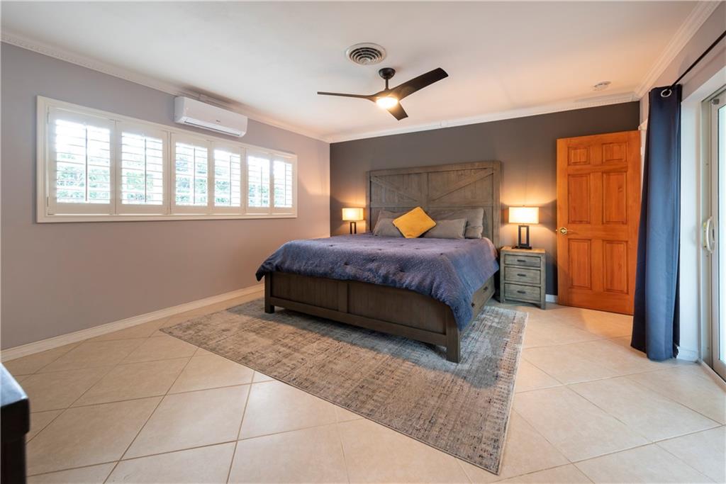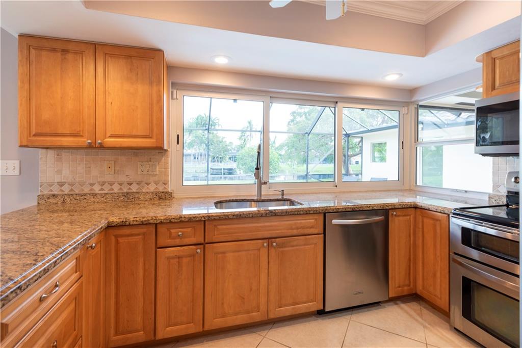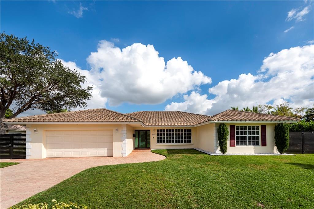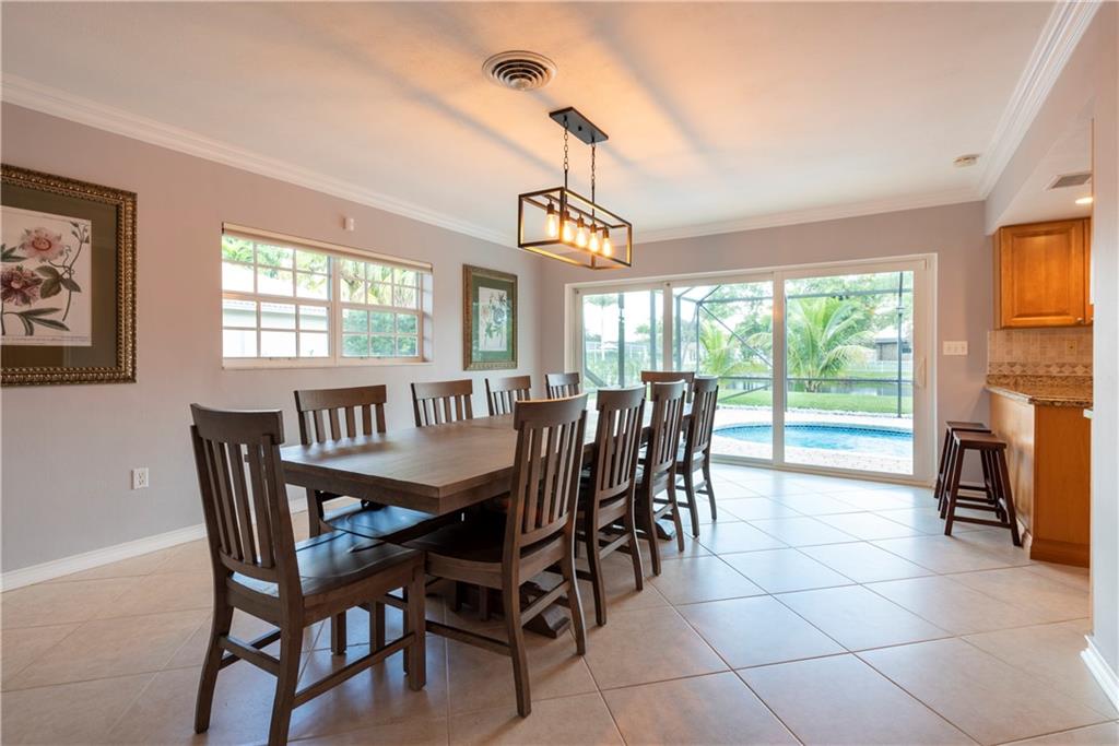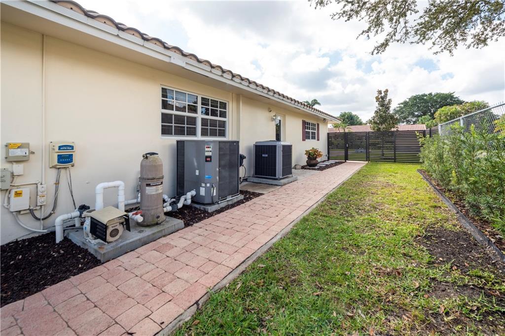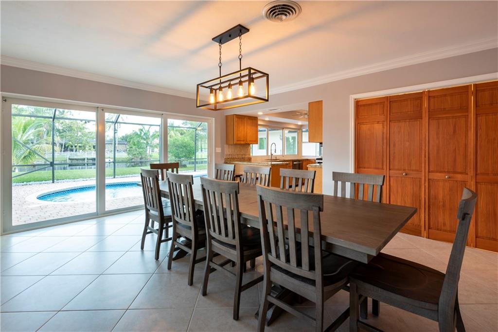 Prepare yourself for this immaculate one-story home in guard-gated Eldorado Estates. Very bright, open & airy home boasting 1/3 acre waterfront lot. Tremendous amount of beautifully landscaped front, side & back yards. Features fully screened-in patio with free form salt-chlorination heated pool & spa with exquisite water & garden views. Interior has been upgraded with full impact doors & windows, Plantation shutters, built-in closets, new ceiling fans, tankless hot water heater, & 4000 ton electronic air filtration A/C. Main bedroom with walk-in closet, bathroom with dual sinks, separate shower & Roman Tub. Other bedrooms have wood floors & home has neutral porcelain tile throughout. Spotless garage with a 240V for electric vehicles plus HUSKY metal cabinets & 6 ft work table. Must see!