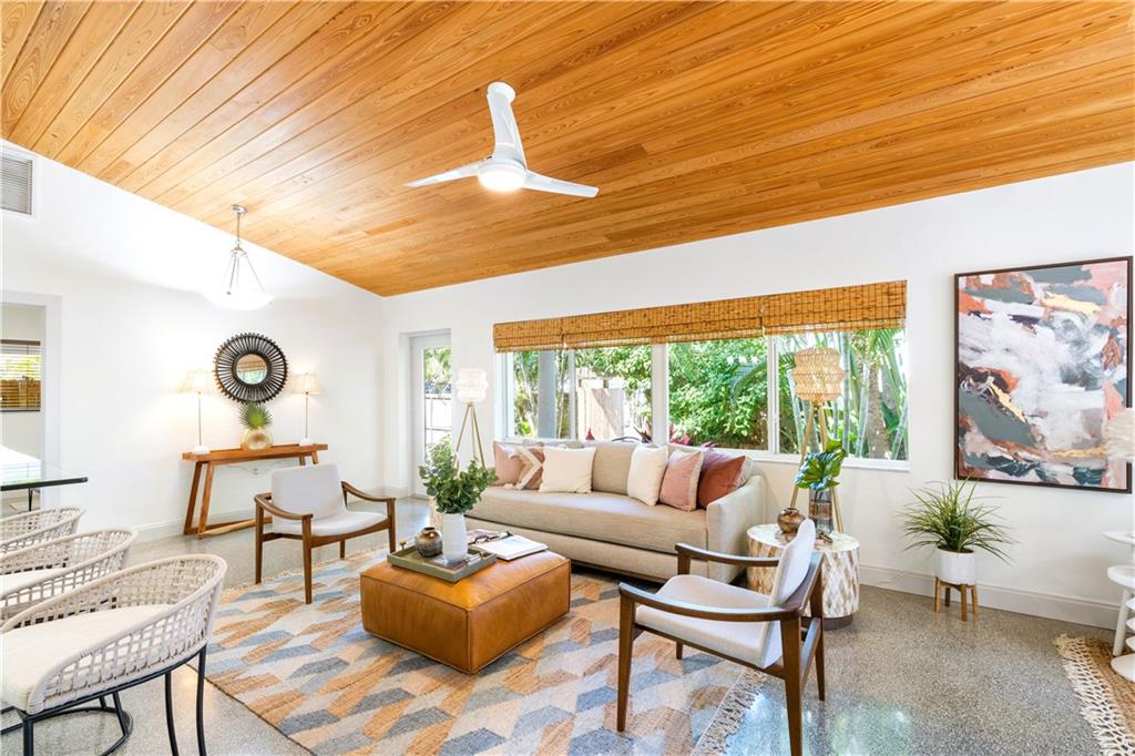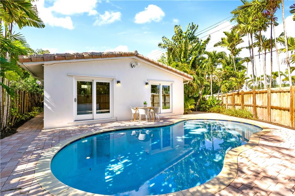 Back on Market. MID CENTURY MODERN HOUSE + COTTAGE COMPOUND A Total of 4 Bedrooms, 3 Full Baths with Pool. Updated with all Impact Doors and Windows, Solid Interior Doors, AC & Lots of Storage. Extensive Landscaping, Sprinklers and Lighting throughout. Separate Addresses + Driveways in a Fully Privacy-Fenced Enclave. House #1: 3 Bedrooms, 2 Baths, Laundry, Formal Dining Room, Bar, spacious Great Room with 2 seating areas + Soaring Pine Ceiling. Sliders to Pool from Great Room and Primary Bedroom, Outdoor Shower, Covered Carport with Electric Gate. Cottage: 1 Bedroom with newly installed Kitchen & Bath, Great Room, Paved Private Court Yard. Ideal Live/Rent configuration with multiple options. Proximate to Beaches, Wilton Drive, Las Olas and all Fort Lauderdale has to offer.