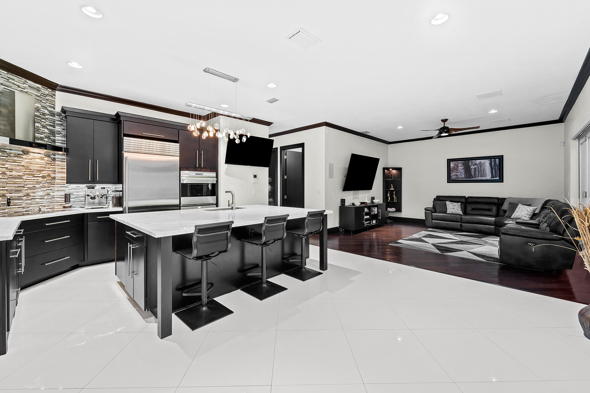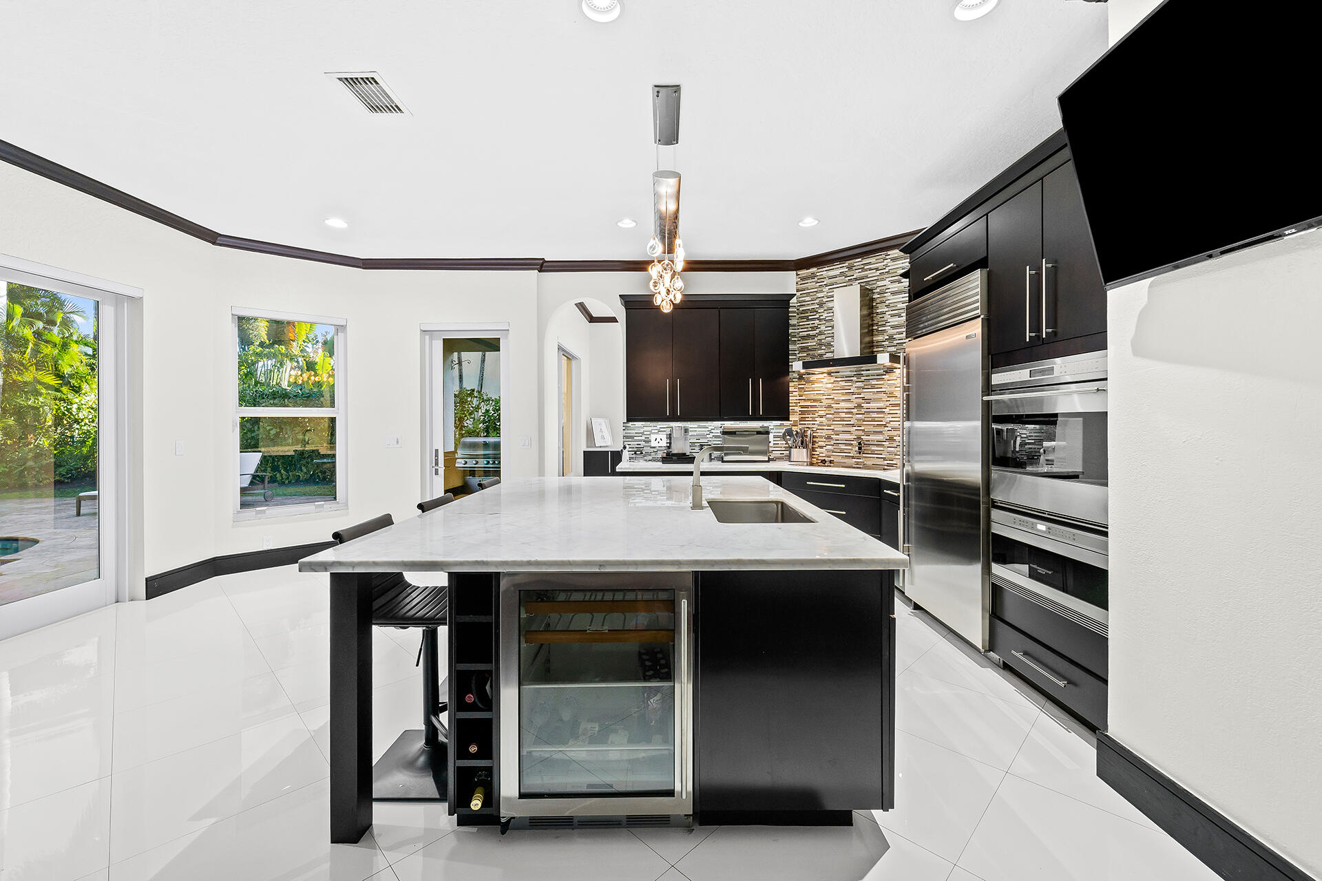 Experience luxury living in Boca Raton, just 2 miles from the beach. Enter through stunning wrought iron double doors into this 4 bed, 3 bath home with oversized impact windows, electric blinds & liquid-glass tile floors. The kitchen is a chef's dream with marble countertops, induction stove & sub-zero refrigeration, opening to a spacious family room. The primary suite boasts 3 walk-in closets & a primary bath with double sinks, jetted tub & standing shower. The backyard offers a travertine pool deck & patio with a built-in summer kitchen and a back fence lined with Areca Palms for ultimate privacy. Don't miss out on this dream home!