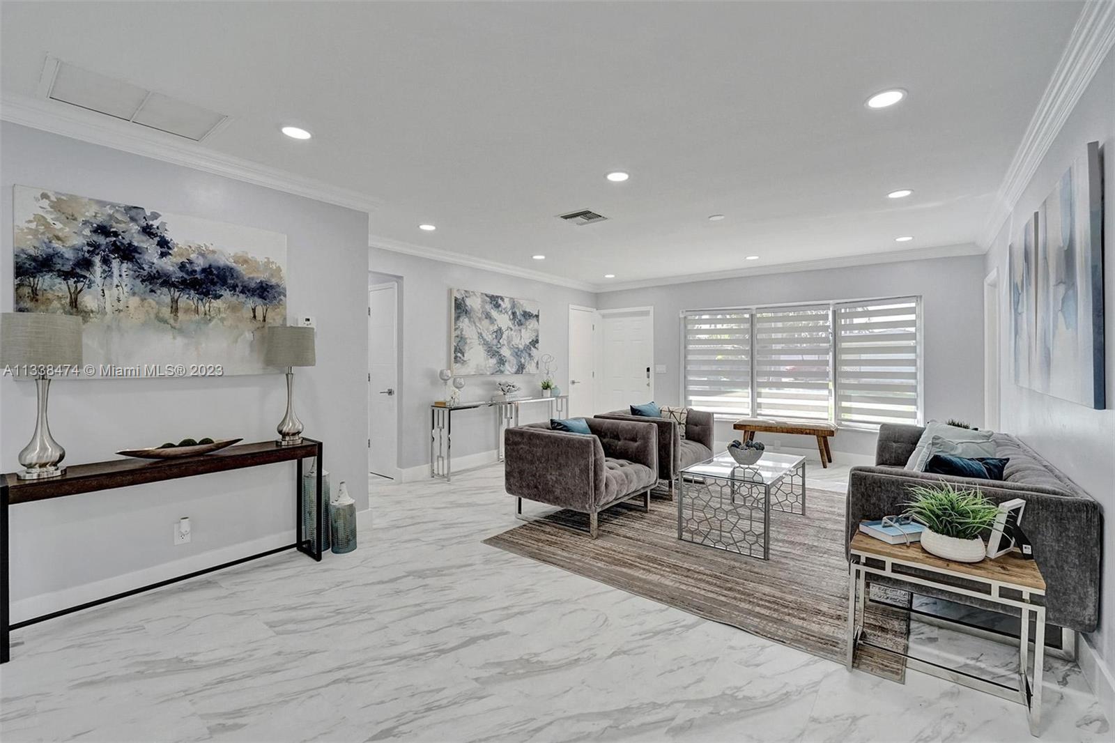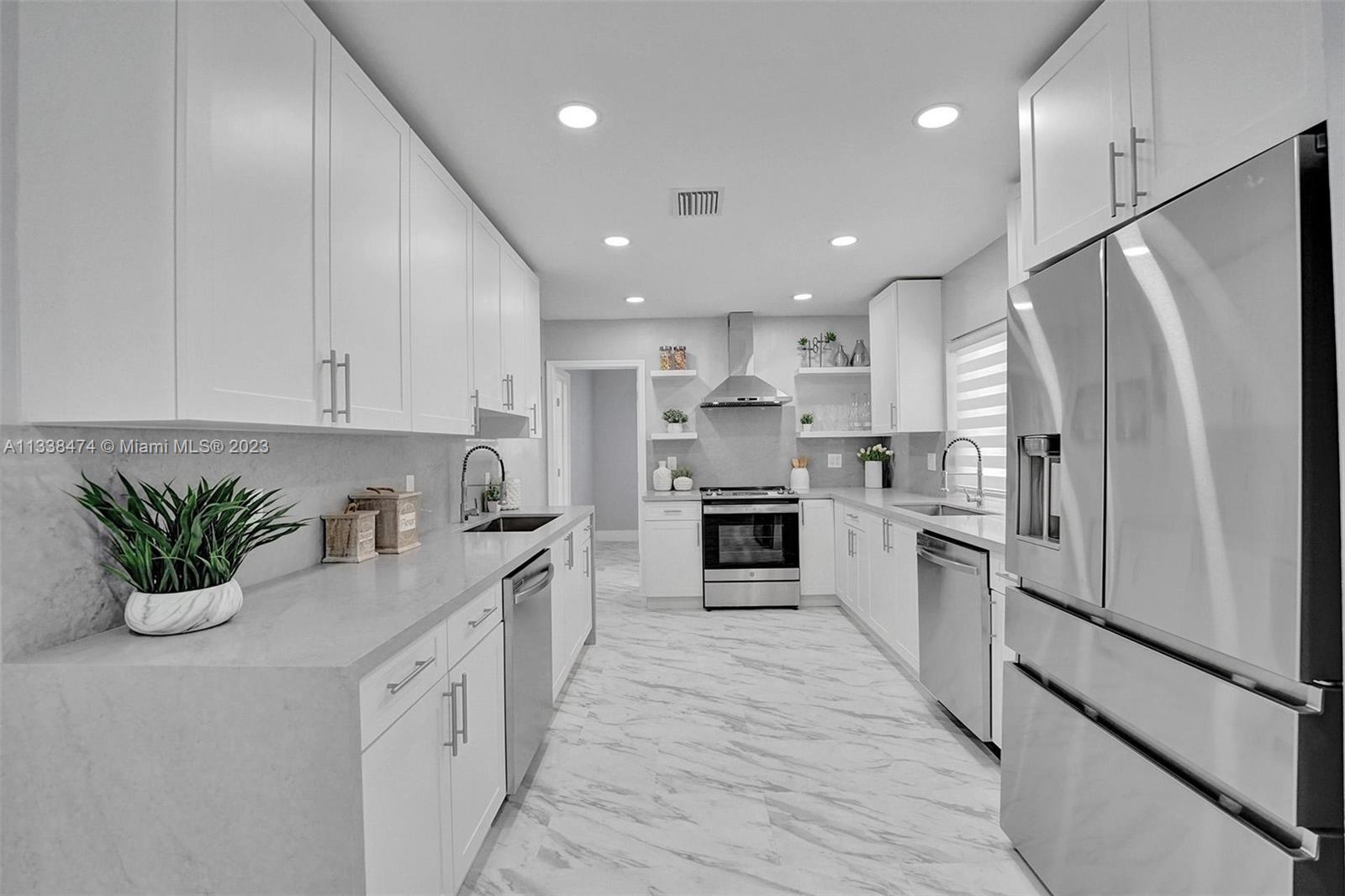 Wow! Totally Brand New Modern Remodeled 4/2 in Hallandale Beach with private pool! House has brand new flooring throughout! New Open Kitchen w/ stainless steel appliances, white cabinetry and Gray Slate Quartz Countertops! All New Modern bathrooms with modern vanities and marble covered showers! House has hurricane impact windows throughout! New Custom Blinds! New Lighting throughout! Large backyard with private pool! 5 Minute bike ride to the Beach and 10 minute walk to House of Worship! This is the best deal in Hallandale Beach to get a brand new totally remodeled home with pool and a great price! Priced to Sell!!