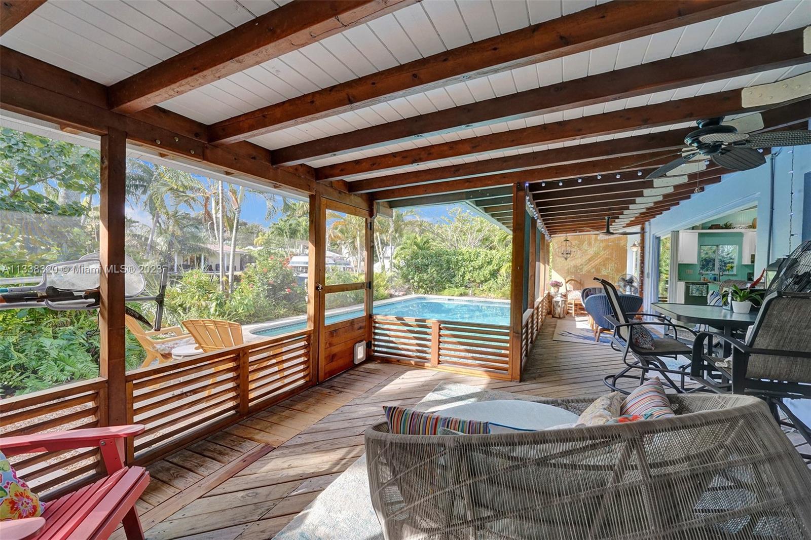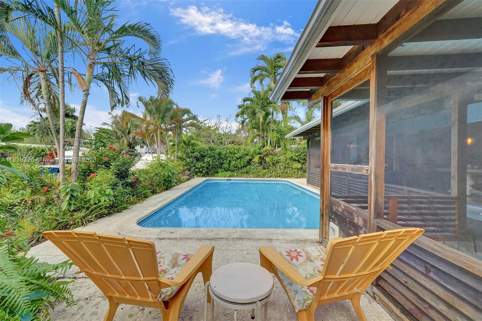 WELCOME TO YOUR WATERFRONT HOME! AIRBNB AND INVESTORS! This 2 bed 2 bath home with a 1 car carport and pool. House has been updated in the kitchen and bathrooms. Tile and terrazzo throughout the house except in one of the bedrooms. Hurricane windows throughout and open concept slider to the backyard (not hurricane rated). 65 feet of waterfront to put a boat. Pool has brand new equipment. Roof 5 years of life remain, new tankless water heater, and multiple split AC units throughout the house that push out 6 tons of AC. Just a 40 min boat ride to the ocean and 15 min to downtown Las Olas, no fixed bridges! Conveniently located near I-95, downtown Ft Lauderdale and the beach! Limited traffic street. Owner's are very motivated to sell.