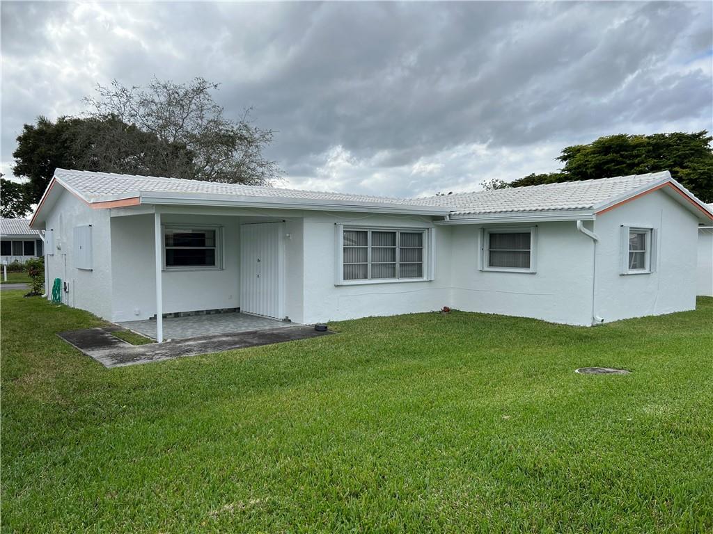 "Lakeview model". Brand NEW 2023 A/C, ELECTRICAL PANEL and ROOF 2021. INSURANCE SAVINGS! 2/2 split bedroom floorplan. Could be a 3 bedroom. Updated kitchen/baths including the tile. Lots of woodwork and Crown molding. You will love the natural light. Most will want to replace the berber carpet. Covered open patio in the rear of the house for your BBQ! Exterior recently painted. Accordion shutters & panels for front door. Full size washer/dryer in garage. Plenty of parking in the driveway & the garage. Lauderdale West has tons of amenities incl. clubhouse, billiards, ping pong, crafts, live entertainment, 2 pools, tennis, gym & more! Maintenance incl. cable, internet, lawn, roof, ext. paint, courtesy bus. 20% down, 720 credit score. Lauderdale West is an Active ADULT community.