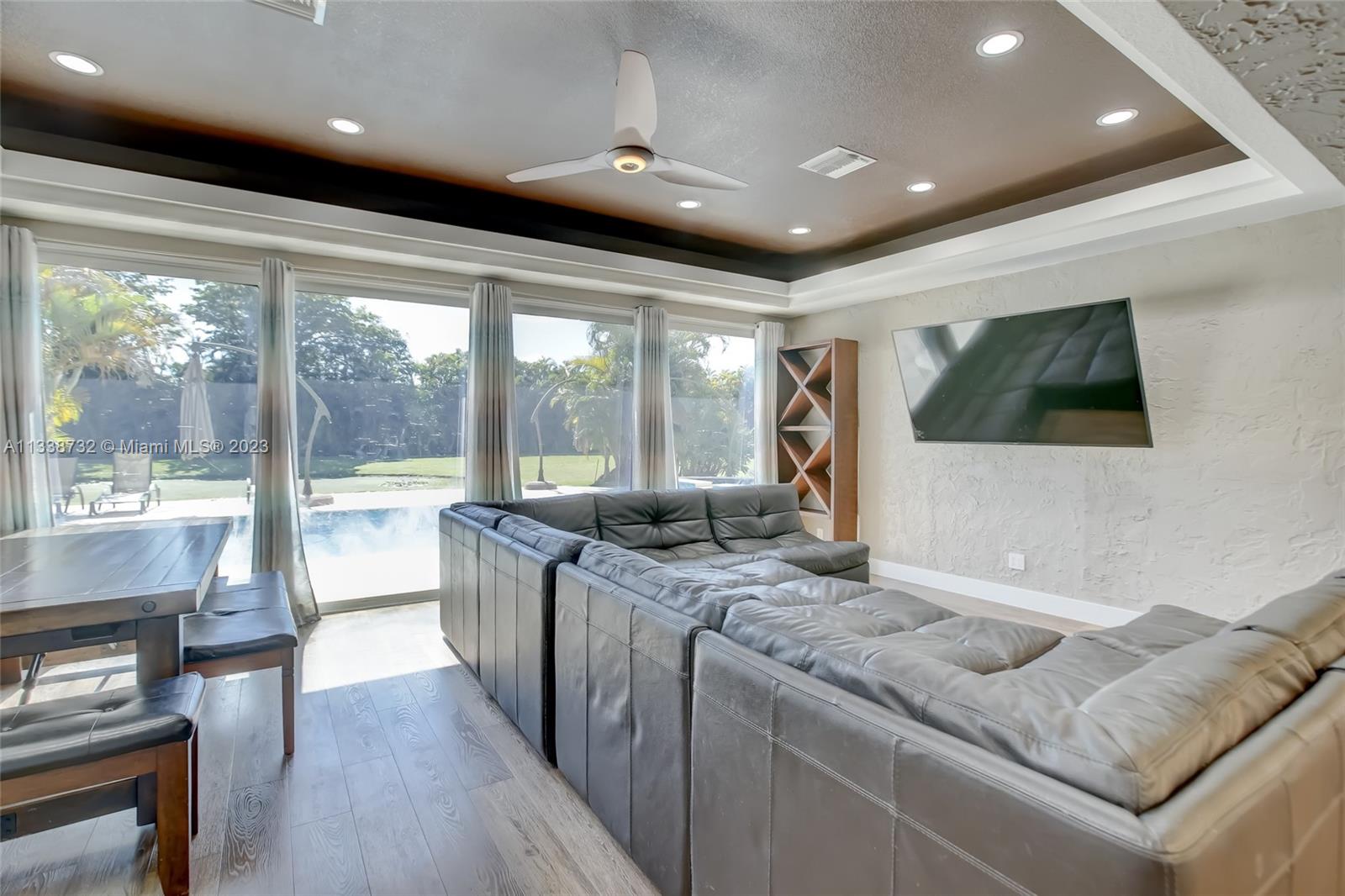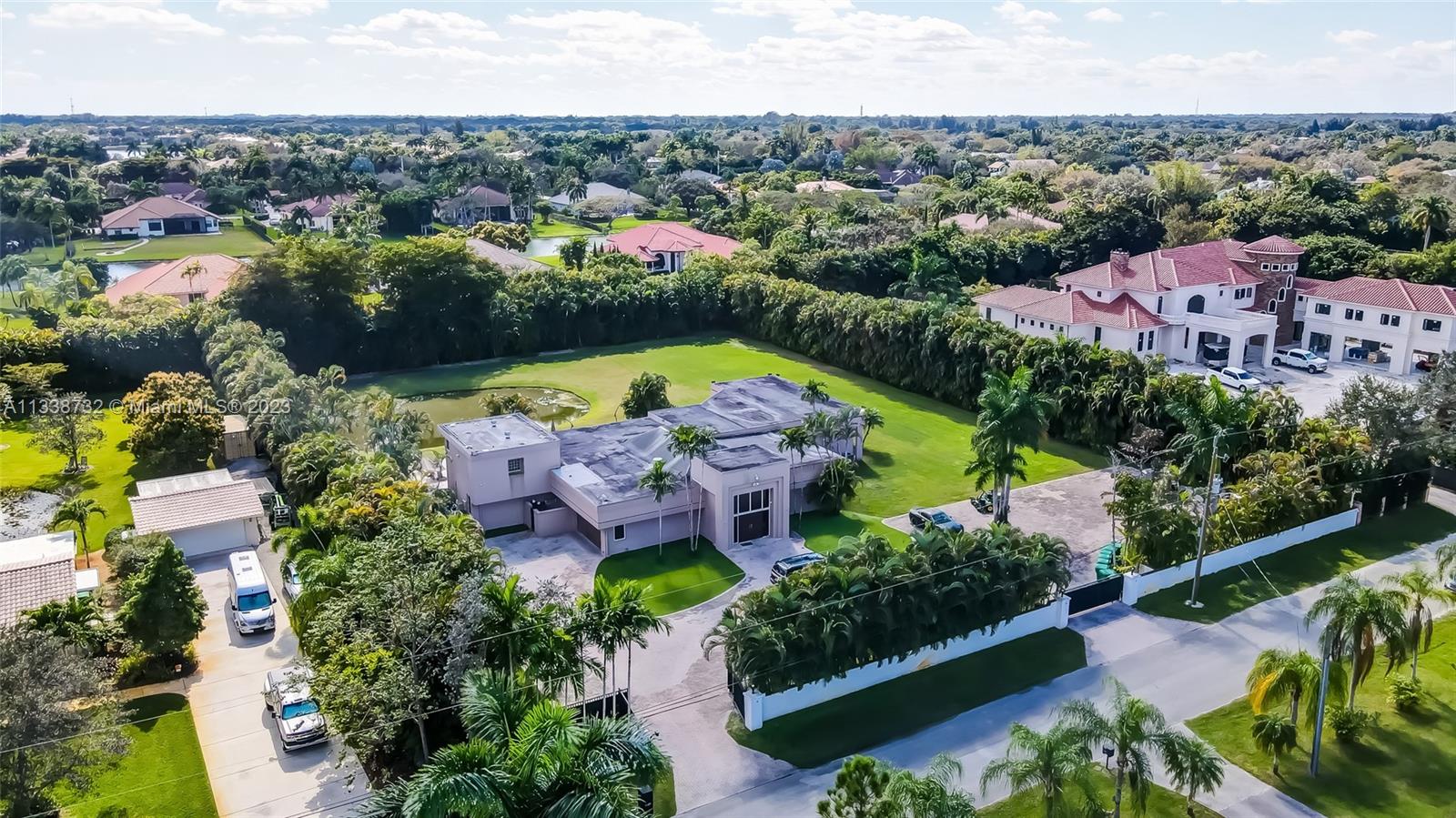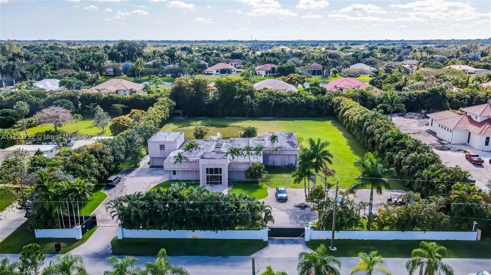 Private gated estate is an entertainers dream home on 1.5 acres of land in the heart of Davie. 5/3.5 baths + a bonus room that can be an office or gym featuring neutral laminate flooring in all main living areas and bedrooms. Huge open spaces including oversized great room with stone wall, and fireplace. Eat in kitchen with extended snack bar, granite counters, and wood cabinets. Expansive first floor master suite with 2 big walk-in closets, and master bath that features dual sinks, soaking tub, and step-in shower. Big secondary bedrooms with redone bathrooms. Amazing salt water pool and spa surrounded by endless travertine pavers. Impact windows except for the glass block. Expansive driveway for all of your cars, toys, boats, or RV. No HOA, minutes from 595 and 75.