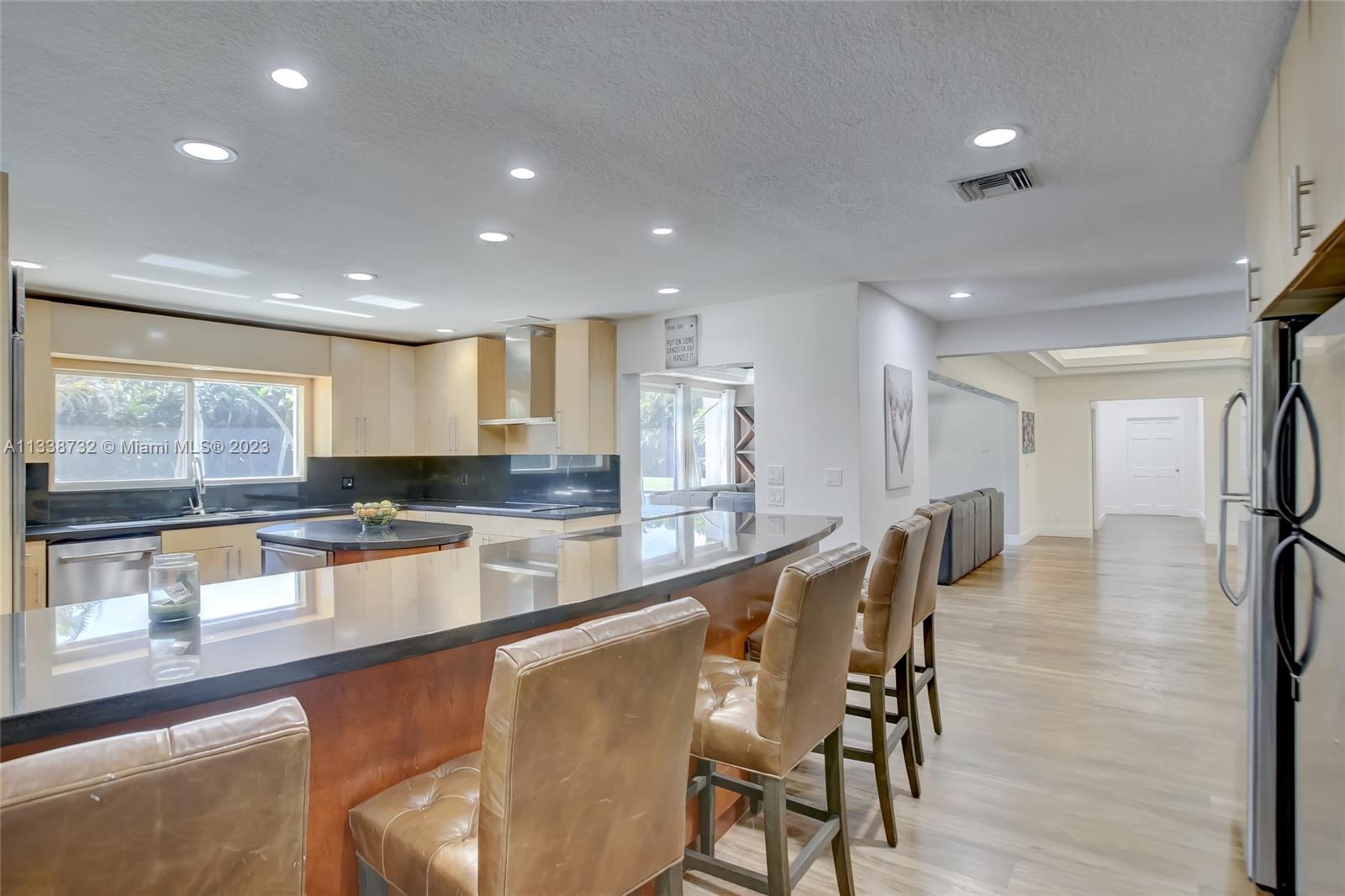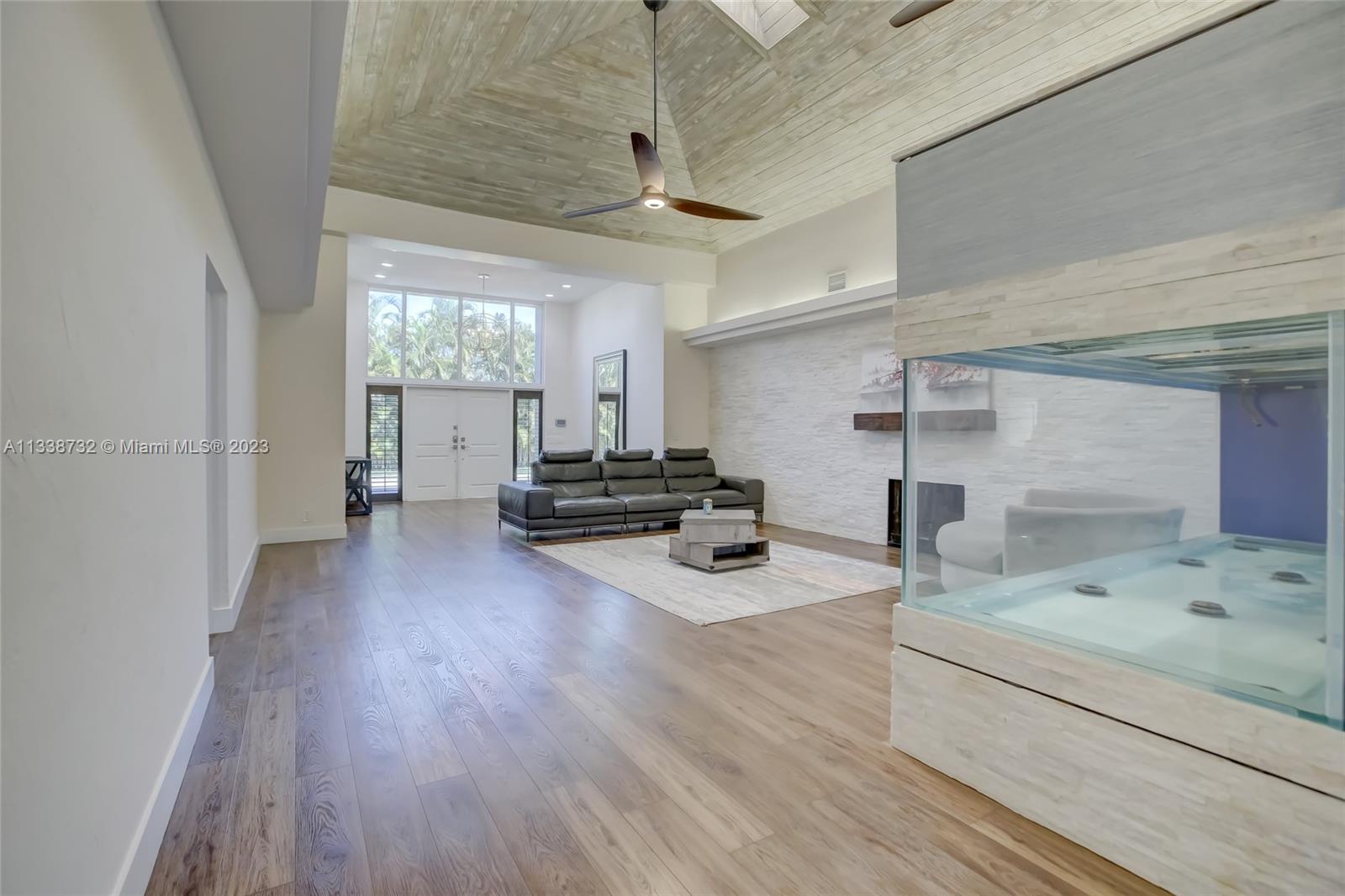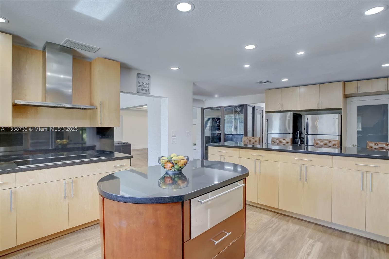 Private gated estate is an entertainers dream home on 1.5 acres of land in the heart of Davie. 5/3.5 baths + a bonus room that can be an office or gym featuring neutral laminate flooring in all main living areas and bedrooms. Huge open spaces including oversized great room with stone wall, and fireplace. Eat in kitchen with extended snack bar, granite counters, and wood cabinets. Expansive first floor master suite with 2 big walk-in closets, and master bath that features dual sinks, soaking tub, and step-in shower. Big secondary bedrooms with redone bathrooms. Amazing salt water pool and spa surrounded by endless travertine pavers. Impact windows except for the glass block. Expansive driveway for all of your cars, toys, boats, or RV. No HOA, minutes from 595 and 75.
