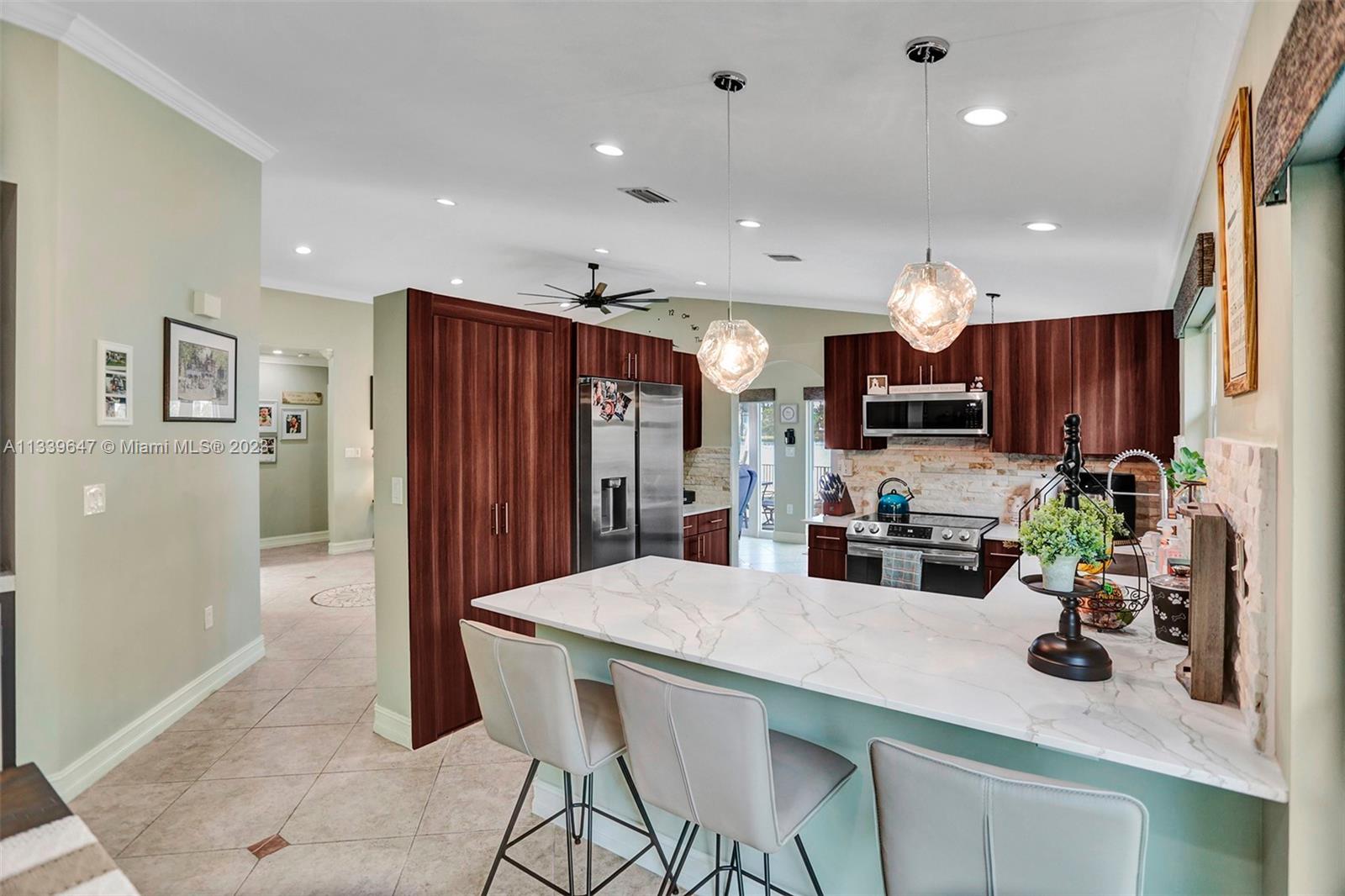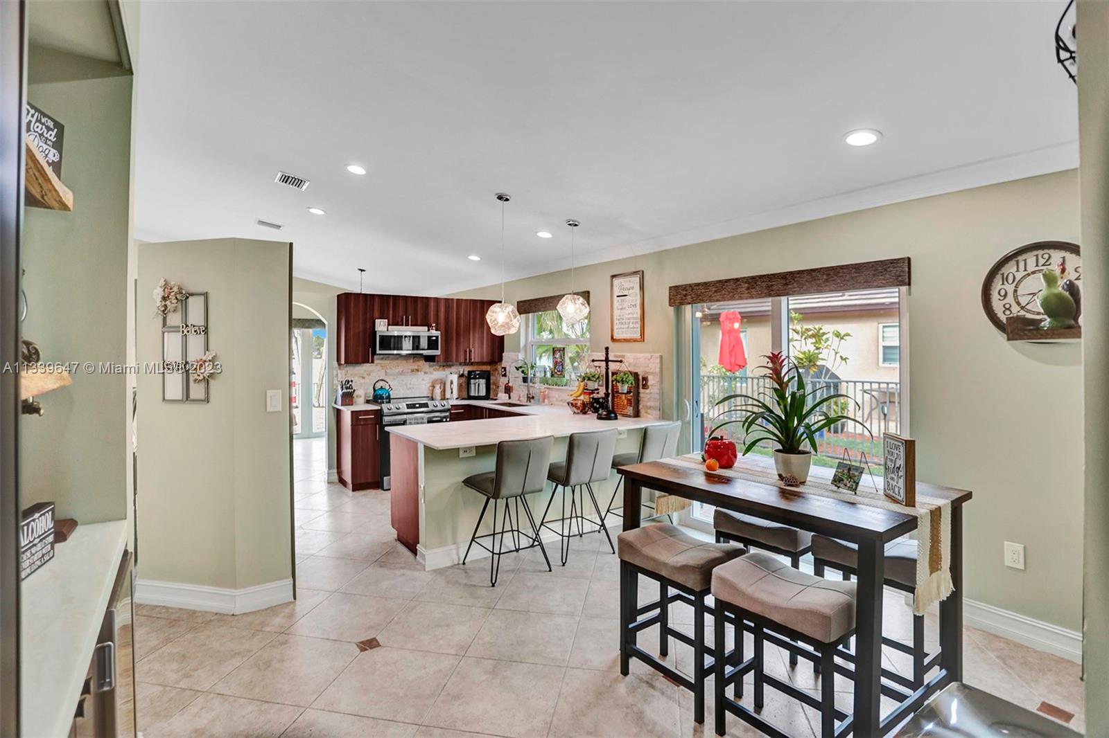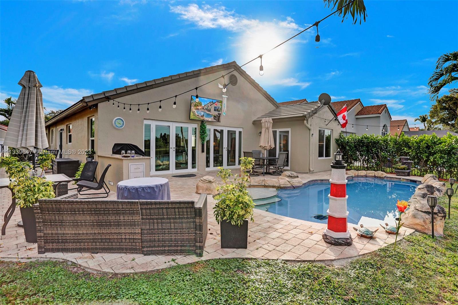 Completely and recently updated gorgeous 3 bed 2 bath home with lakefront views! Remodeled kitchen with granite countertop and brand-new stainless-steel appliances (fridge, stove, microwave, dishwasher) and washer/dryer. Updated bathrooms, spacious living and dining room with new valances and window covering, AC, smoke detectors, house surge protector and lights, new storm windows. 2 car garage, large screen tv with sound bar in patio for entertainment and a pool with recent salt water pool enhancement and BBQ outdoor kitchen. Beautiful and well-maintained landscape. Nearby to top schools, hospitals, shopping malls and restaurants. Open House this Sunday (2/12) @ 12-2pm.
