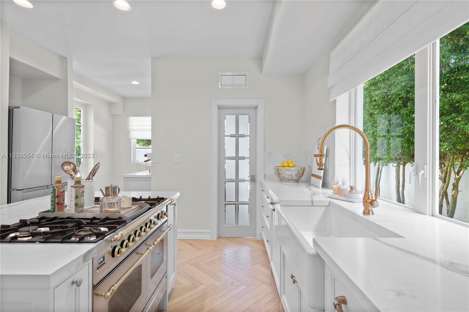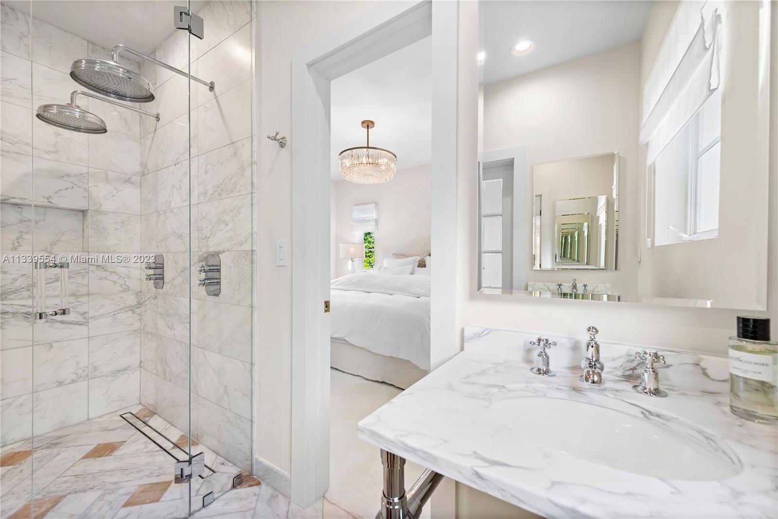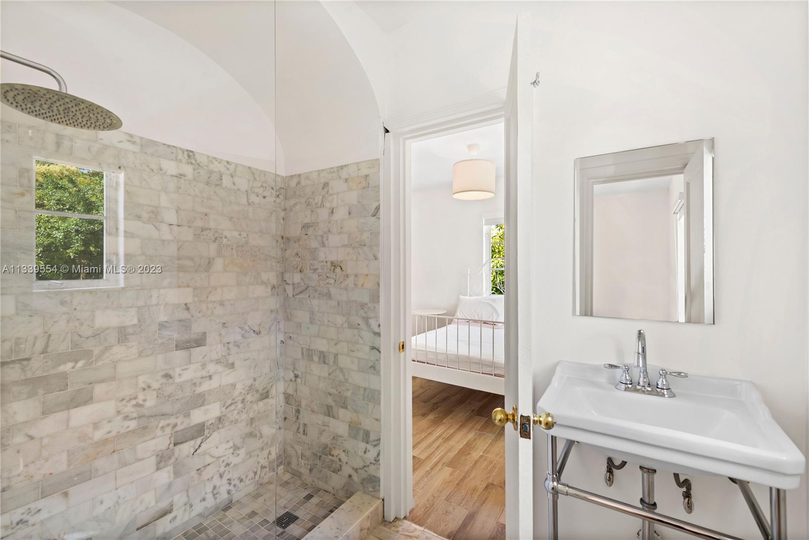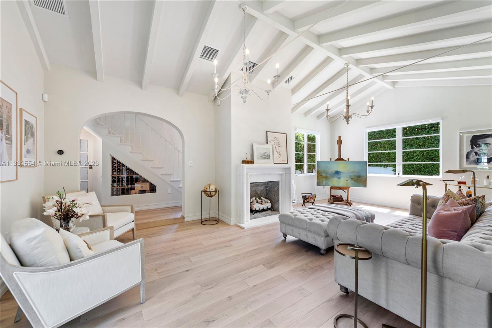 Stunning Mediterranean remodel in the heart of Miami Beach. The main house and guest house rebuilt from the studs using the finest materials under the guidance of one of Italy's most in-demand designer. The Feng Shui energy of the main house is immediately felt walking into the arched ceiling foyer. Vaulted ceiling and marble fireplace add warmth to the cozy living room. Abundant natural light beams throughout the house accenting rich tones of the herringbone wood and Calcutta stone found throughout the Chef's kitchen. Upstairs, master bedroom sits off of a dream closet, leading past the marble soaked master bathroom. Guest house includes 3 bedrooms /1 bath, gym and steam. Cabana bath located off of the Gunite pool/hot tub. European tea garden is perfect for entertaining