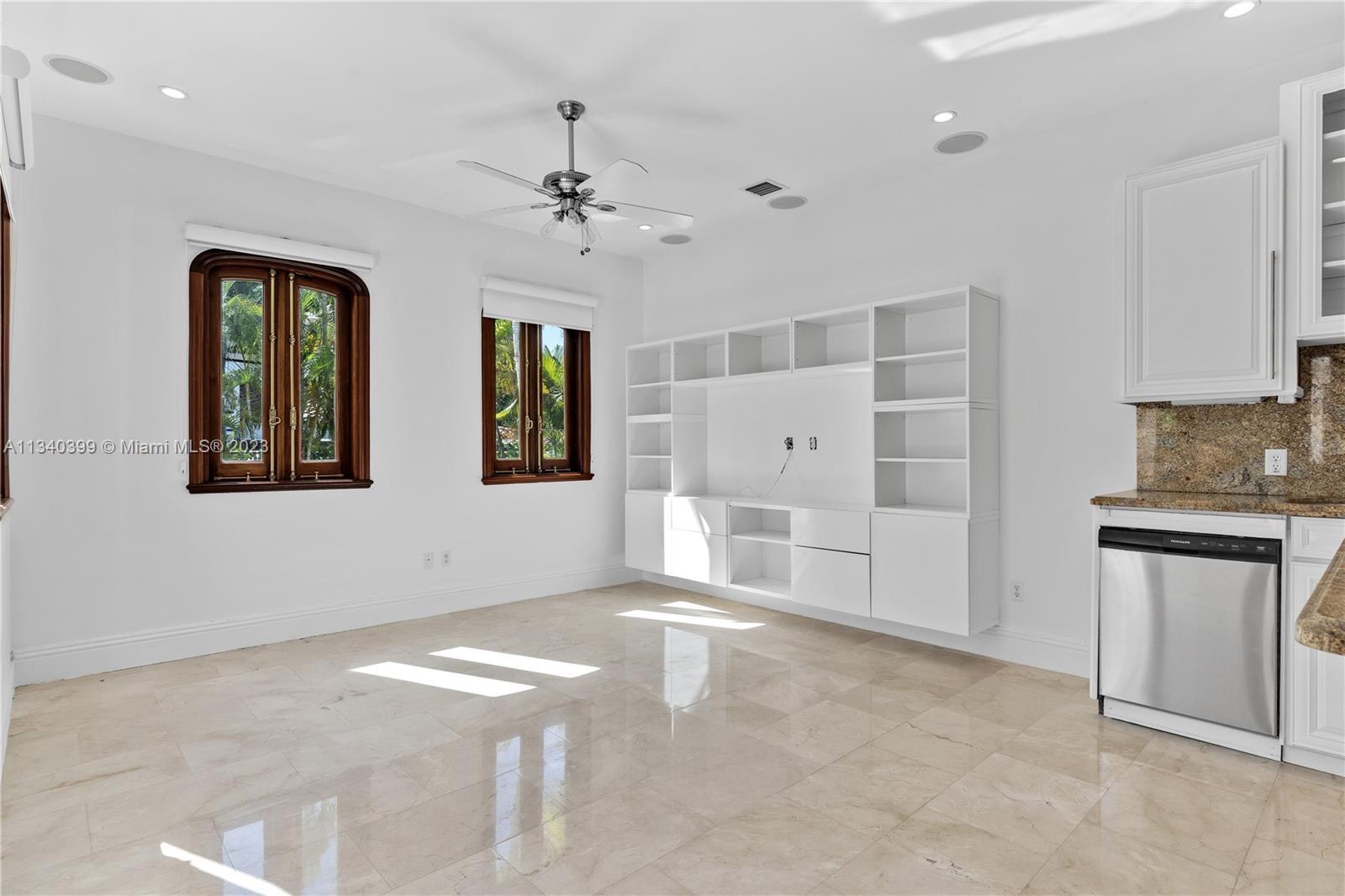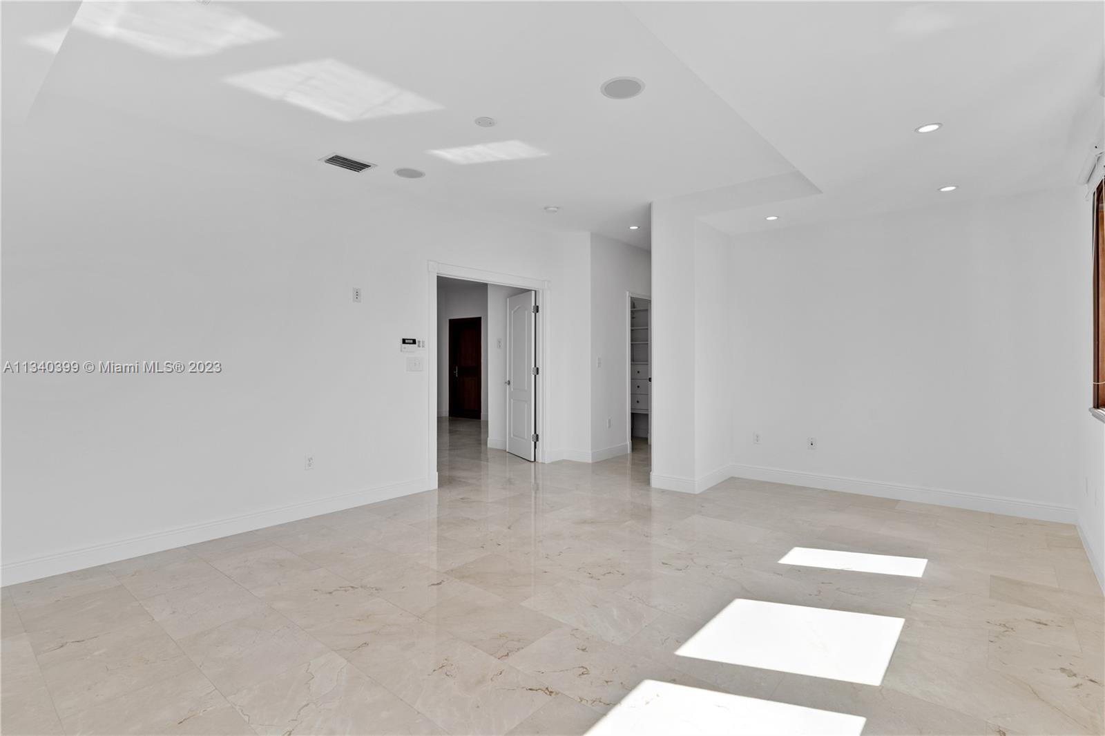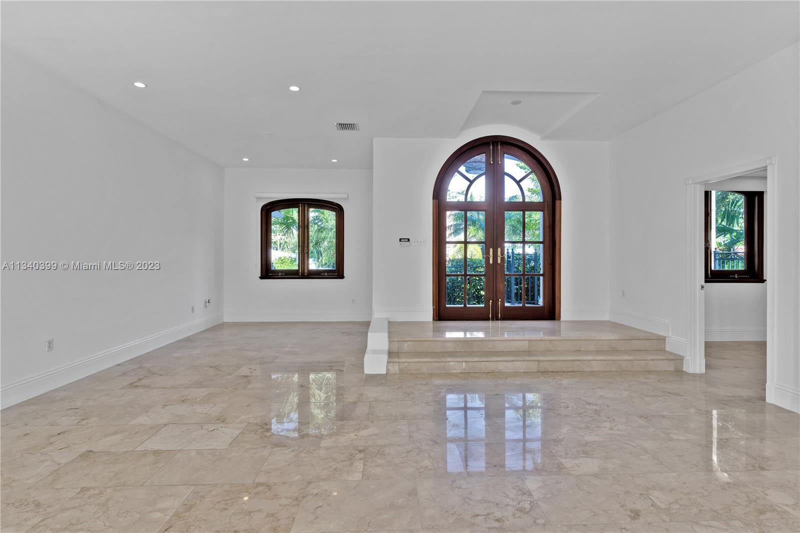 This wonderful elevated home has a fantastic layout with 5 Bedrooms plus an Office, 4/1 Baths and high ceilings. First floor consists of an ample foyer with formal dining and living room area, one Bedroom next to a full cabana bathroom, plus an Office and a powder room. Separated large family room, open kitchen and a very comfortable breakfast area filled with natural light. Second floor features a total of 4 Bedrooms and 3 Bathrooms (one of them is a Jack and Jill bathroom) with a very ample master suite with private terrace. Third covered terrace is a bonus: ideal to use as a gym, game area or another gathering area. Enjoy your spectacular pool with a very ample garden on the side, manicured landscaping with elegant palm trees, located steps from the Village Green.