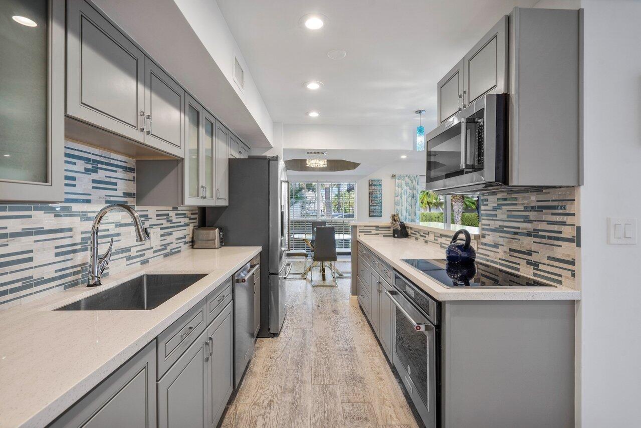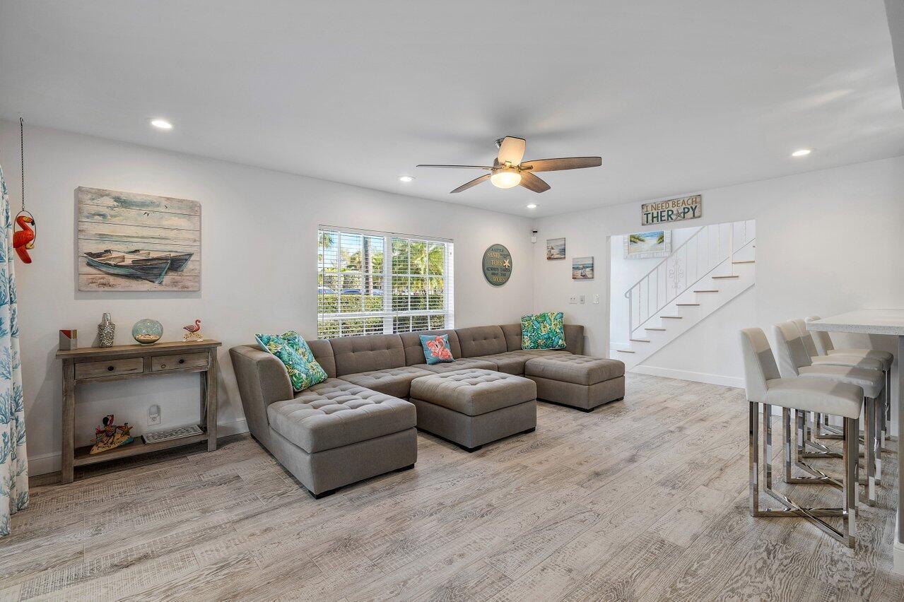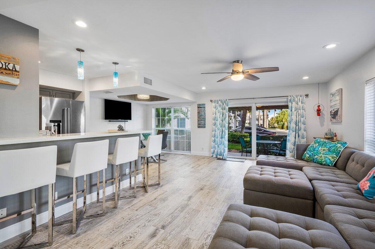 Beautiful townhome across from the Beach! This gorgeous townhome is located on the prestigious Hillsboro Mile & boasts a corner view with lots of natural light. This home is available furnished with new furniture that is decorated to compliment the home. The open kitchen floorplan has new cabinets, counter tops, & appliances. Enjoy breakfast at the kitchens island! Impact sliders open off of living room to the spacious Tiled patio. Up the wood stairway holds 3 large bedrooms. All 3 bathrooms have been tastefully upgraded. The master bathroom has a large stand in dual shower head shower & free-standing soak tub. Master also has private balcony to enjoy sunsets. This home has gorgeous wood like tile floor downstairs & Mohawk plush carpet upstairs. Fully Renovated, Impact Windows,