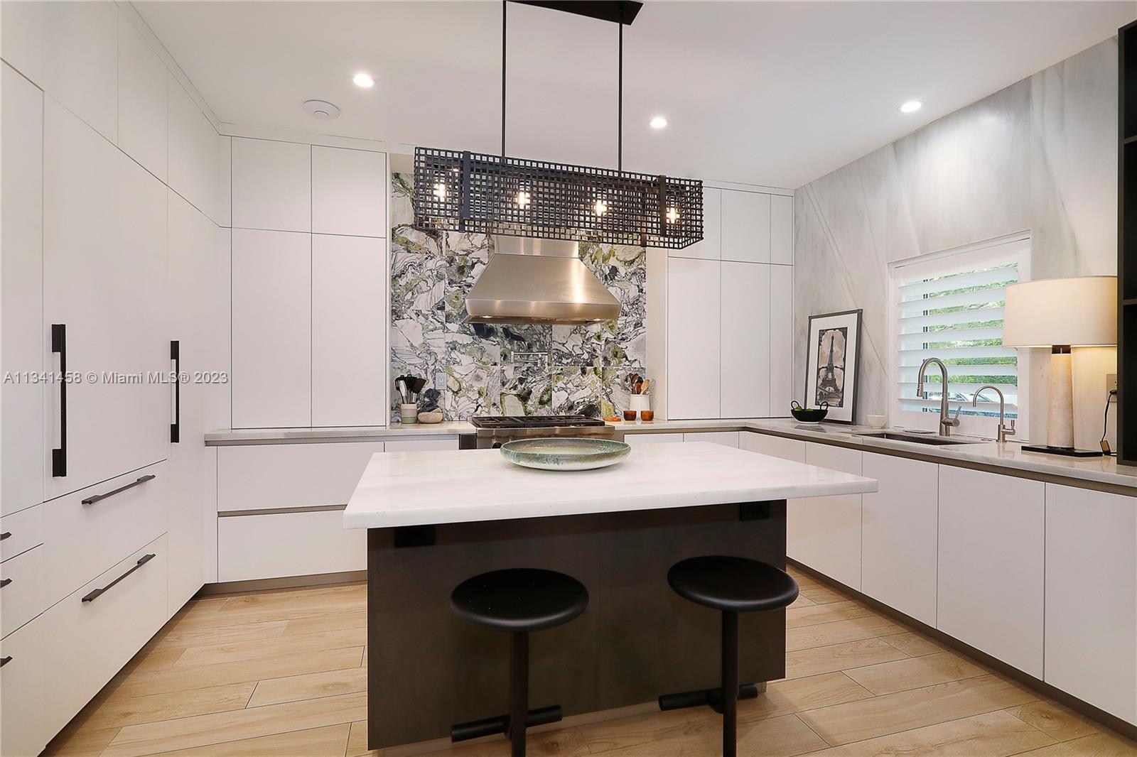 Perfection in the Golden Triangle! This home has been beautifully & meticulously renovated from top to bottom. Enter through the impact glass front door into a spacious open-concept masterpiece w/ the finest finishes including fabulous custom cabinetry, marble counters, Wolf, Miele, & Sub-Zero appliances, full-house generator, gorgeous tilework, California Closets, & more! Ideal for entertaining, the home enjoys gracious indoor & outdoor liv spaces, 2 dining areas, gourmet kitchen & summer kitchen. 3 BRs feature en-suite BAs, the primary bedroom has 2 closets, spa-like BA, & magnificent garden views. The corner lot feels like a secret garden w/ lush, mature landscaping, it also has a circular driveway & side drive that leads to the 2 car gar & large laundry room. A true showstopper!