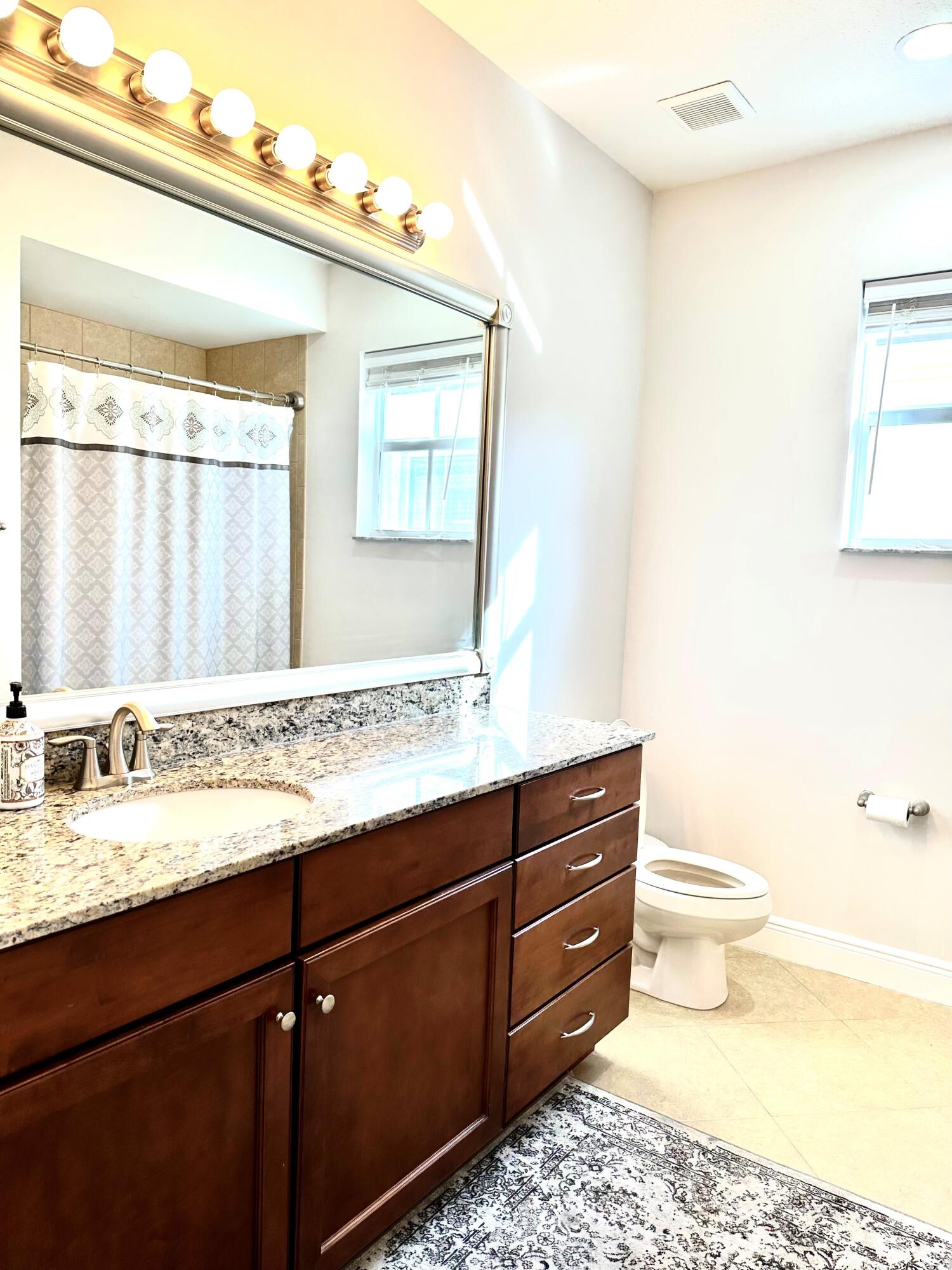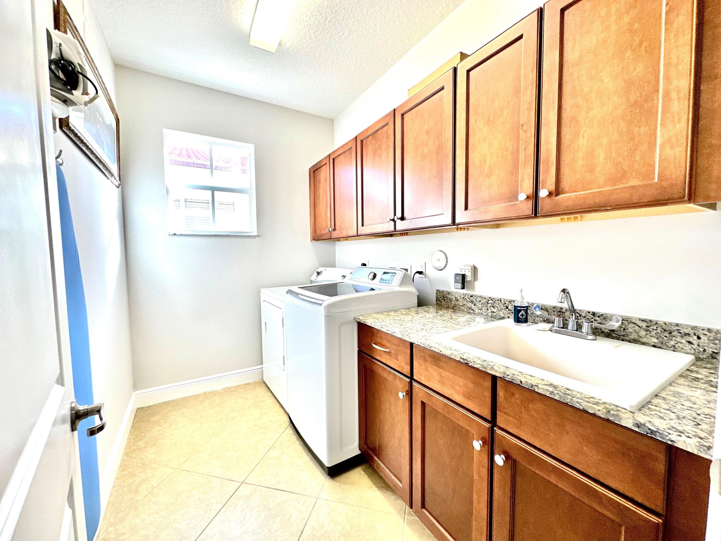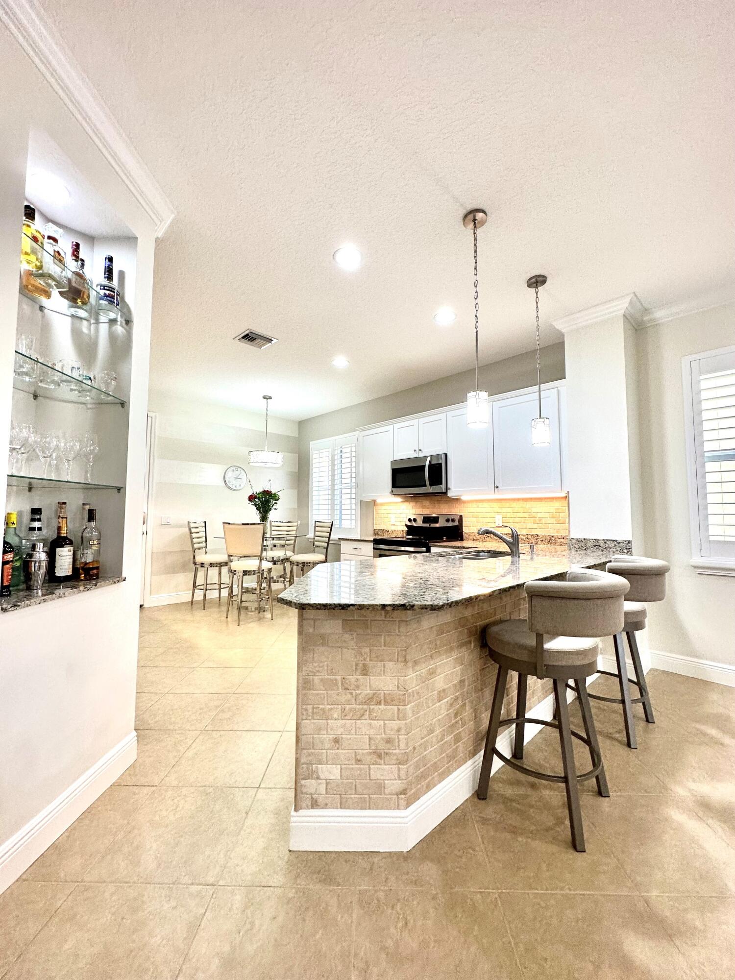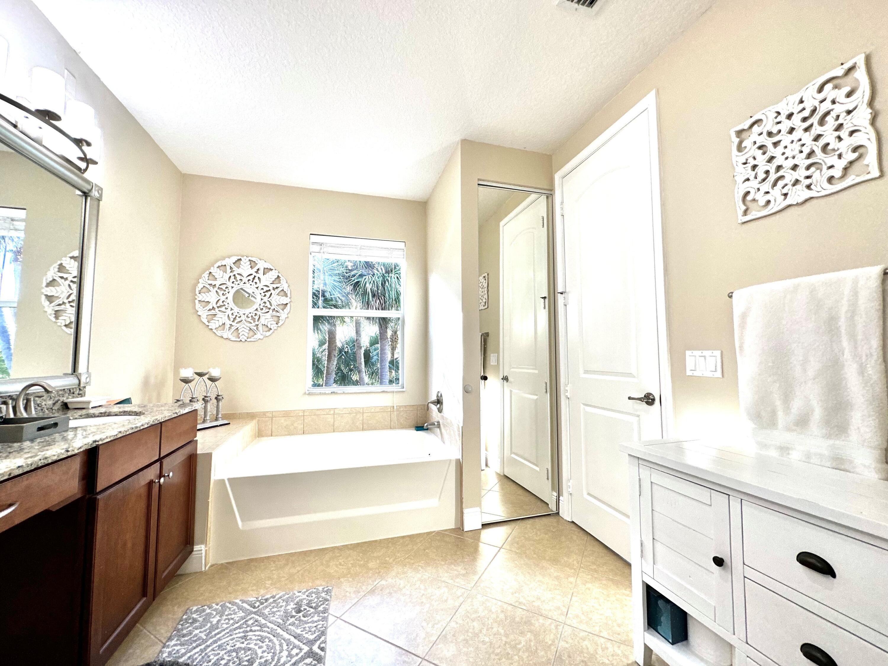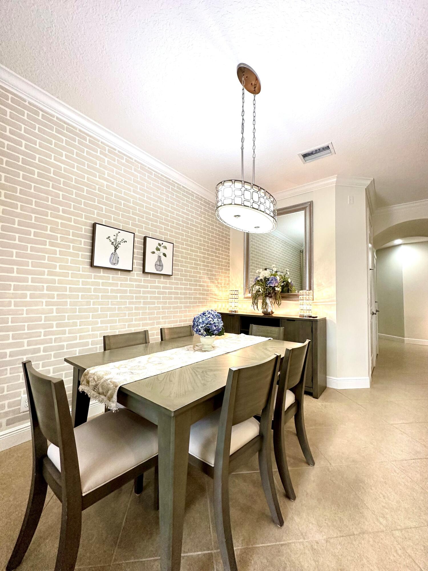 Spacious semi-detached townhouse that feels more like a house. Ceiling fans in all 3 BRs, great room and outdoor patio. Great natural light, high ceilings and luxurious finishes. White kitchen with SS appliances and granite CT. Huge MBR w/ his and hers WIC. Stairs and entire 2nd floor boast authentic gleaming hard wood floors. First floor has ceramic tile on the diagonal and stylish plantation shutters. All window treatments stay. Hurricane doors and windows. Newer A/C unit (2019). Large screened patio (furnished). Heated community pool, clubhouse, gym, billiard, ping pong, tot lot are just some of the amenities. Only 2.5 miles from Turnpike, 15 minutes to airport, downtown and beaches. Top rated private schools in close proximity as well as shopping and restaurants.
