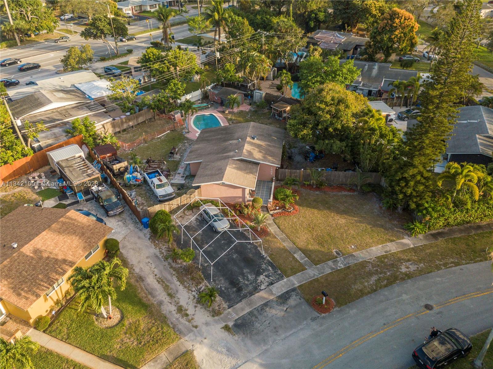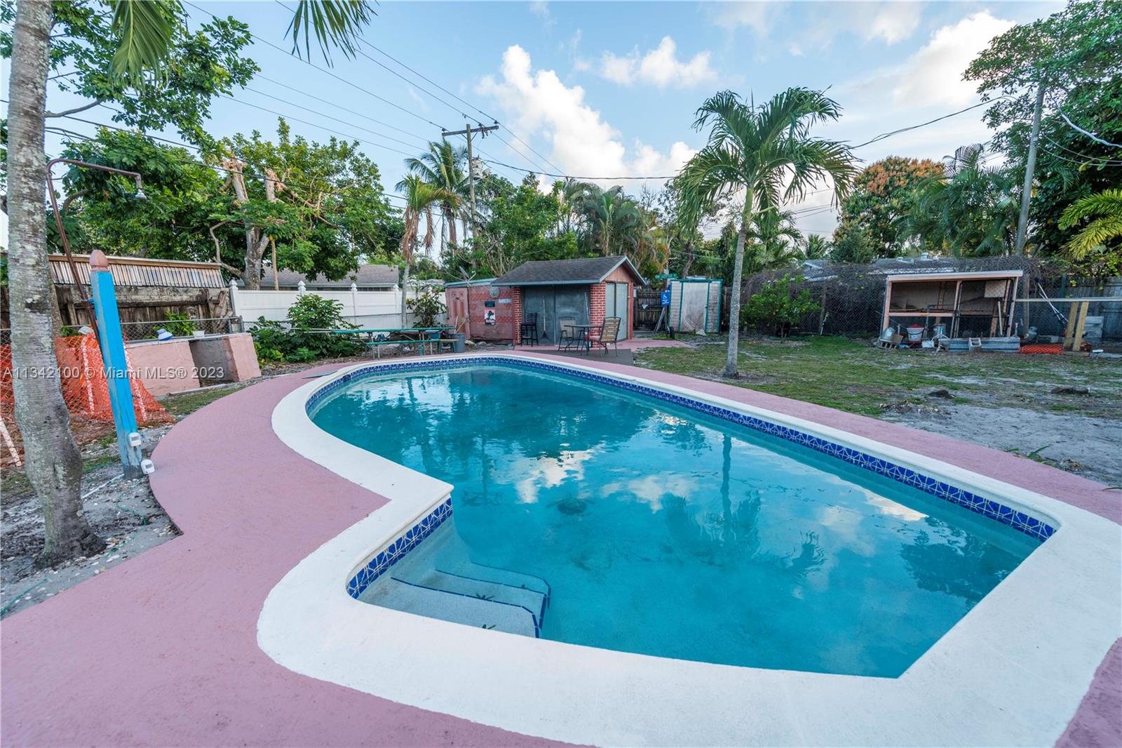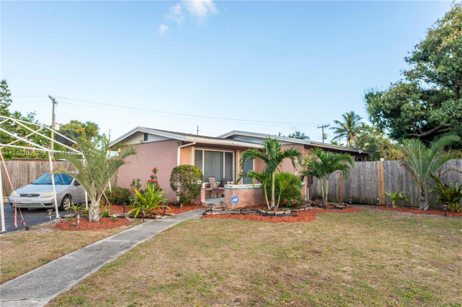 This beautiful 3 bedroom 2 bathroom home has ample parking. There is a covered car option for the driveway. Tarp for parking stays. No garage. Nice front porch and landscaping. Washer and Dryer. Plenty of storage areas. One of the largest lots in the community. Fenced-in large backyard. Fruit trees/plants. Large pool. Open patio area. Covered outside bar/rec area. No rental restrictions/HOA fees. Enjoy the Annual Ft. Lauderdale Air Show from home as NW 9th Street is the turn around point. Sold AS IS. Seller Concession of $7,000 to Buyer for Remodeling. OPEN HOUSE CANCELLED for FEB. 18th 11a.m.-1p.m. Information provided may be subject to errors or omissions. It is the responsibility of the Buyer's agent to perform due diligence and to verify measurements and representations.