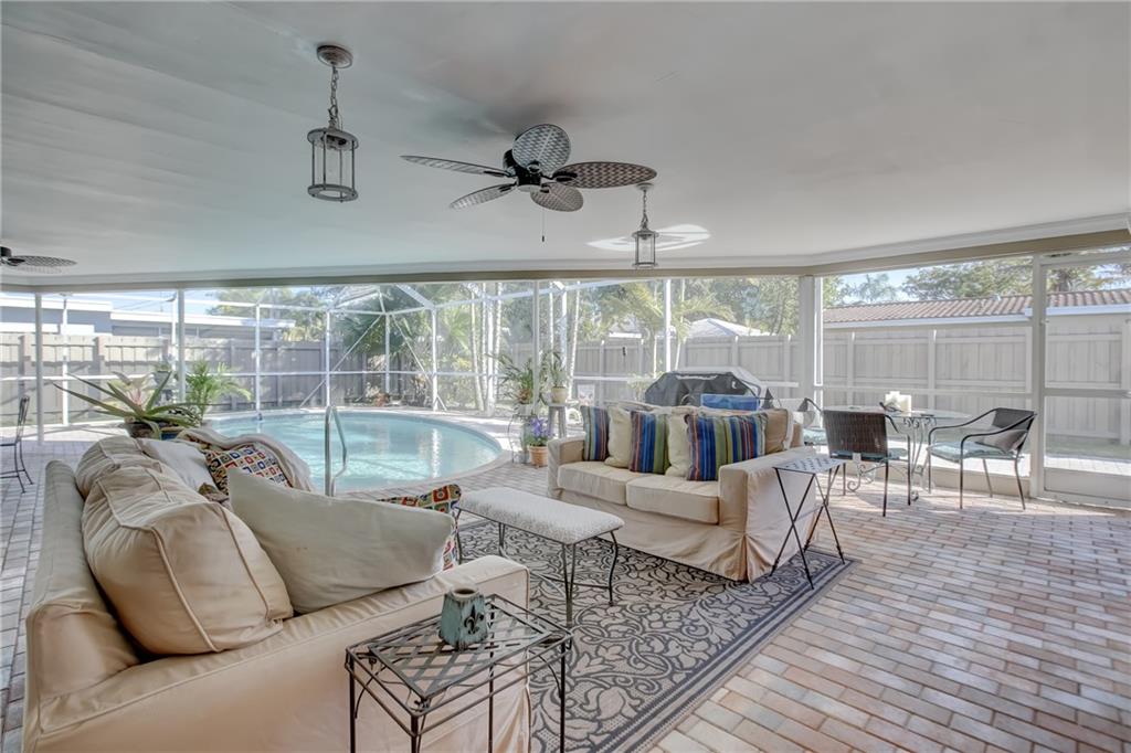 IMPERIAL POINT 2BED/2 BATH POOL HOME ON OVERSIZED 8,500 SQ FT LOT. THIS HOME OFFERS OPEN SPLIT FLOOR PLAN WITH CUSTOM KITCHEN INCLUDING OVERSIZED ISLAND WITH MARBLE COUNTERS, VIKING GAS STOVE, NEWER SS APPLIANCES AND TUMBLED MARBLE FLOORS. HARDWOOD FLOORS & PLANTATION SHUTTERS THROUGHOUT LIVING ROOM AND BEDROOMS. ALL WINDOWS HAVE ACCORIAN SHUTTERS. TROPICAL SURROUNDINGS WITH LARGE COVERED PATIO WITH SCREEN ENCLOSURE OFFERs A PRIVATE INDOOR-OUTDOOR OASIS. TWO CAR GARAGE WITH PAVERED DRIVEWAY AND LUSH LANDSCAPING COMPLETE THIS HOME WITH GREAT CURB APPEAL. NEW FLAT ROOF AND HOT WATER HEATER.