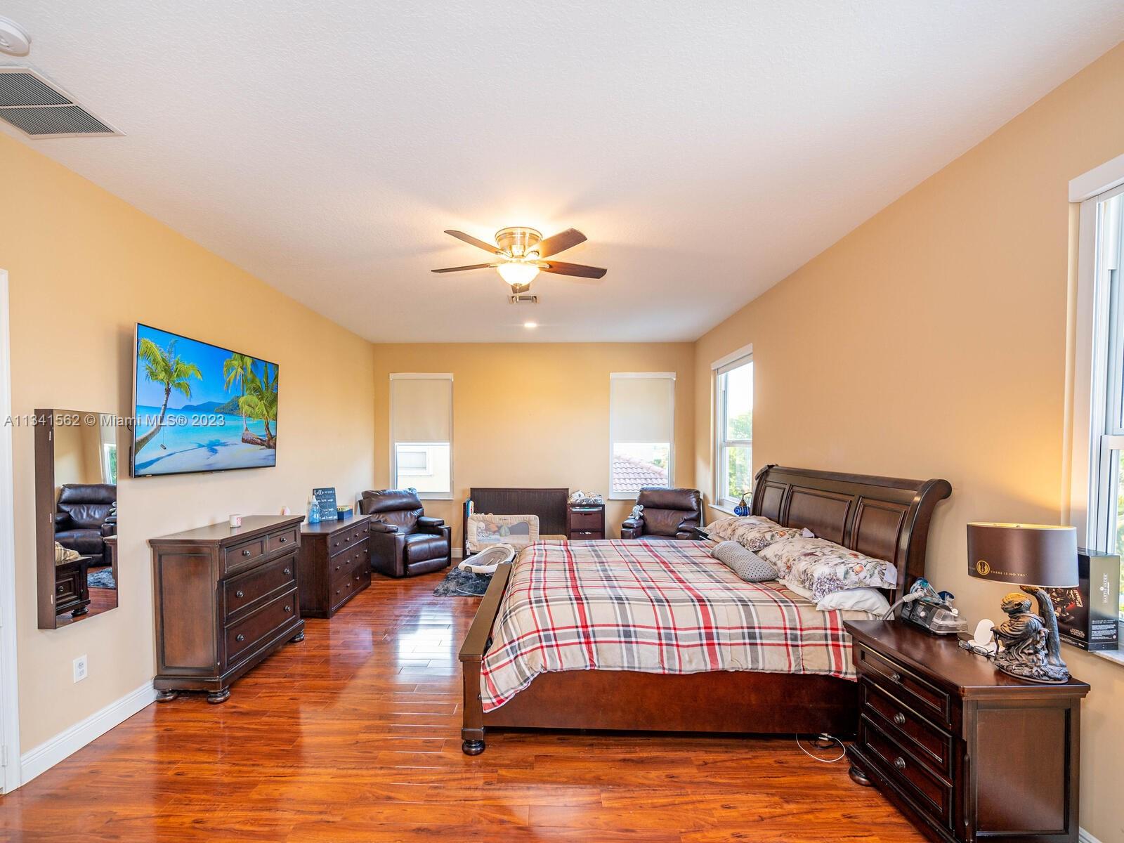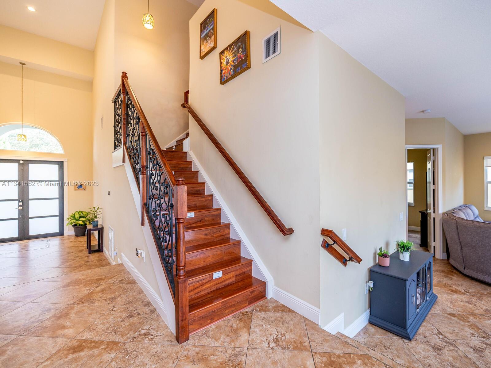 Exquisite Pembroke Pines Pool Home in the sought after community of Lido Isles. A 5/3 with one full bedroom and bath downstairs. Newer impact windows and doors too. This spacious 5/3 bath, 3 car garage sits on a lake front with Tiki Hut (Newly Thatched) for hours of entertaining and watching the sunsets. The saltwater pool was installed in 2018 and receives weekly service by a pool specialist. Fresh paint on the exterior of home. The extremely high ceiling in the foyer makes for a dramatic entrance. Tile and hard wood floors throughout. Separate formal dining room and a very spacious newly remodeled kitchen with lots of counter space and stainless-steel appliances. Your Family/Living area has double glass doors for easy viewing of the lake and pool. (Safety gate installed).