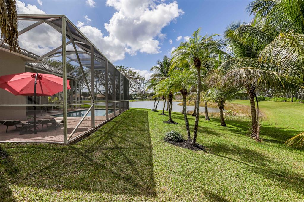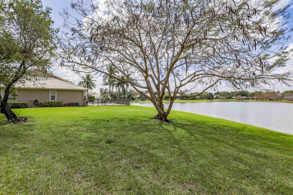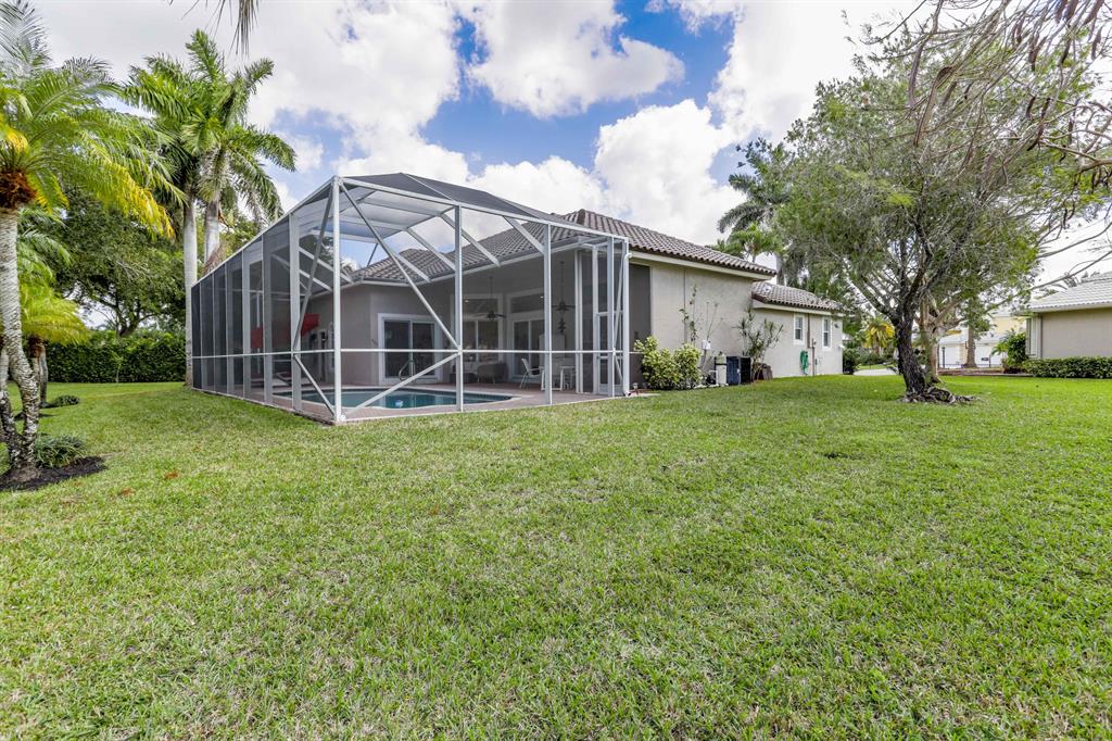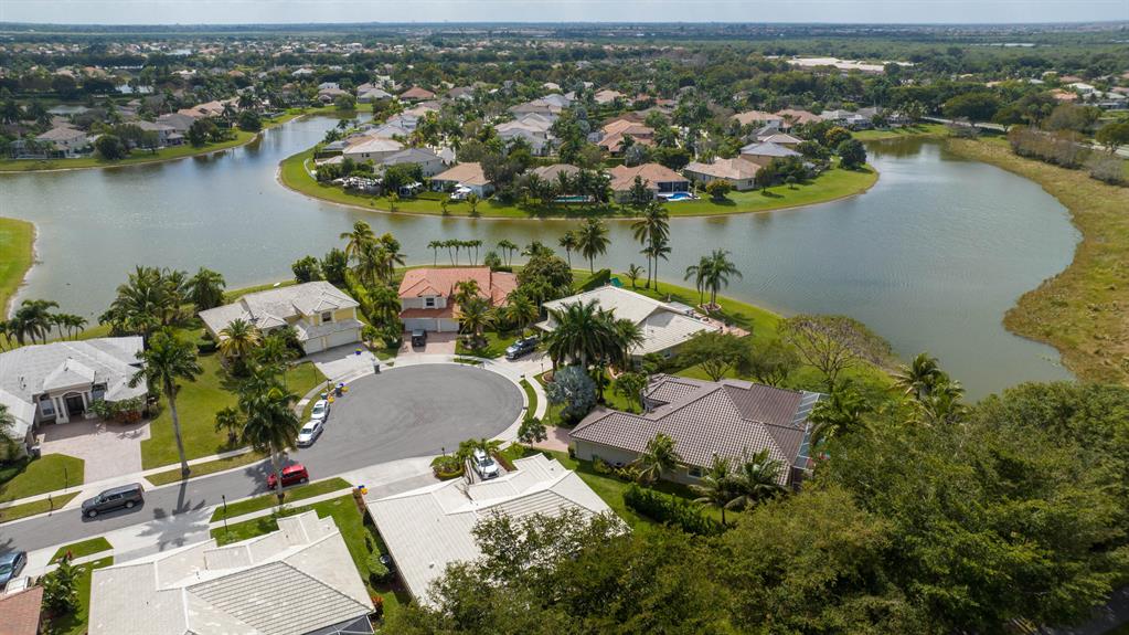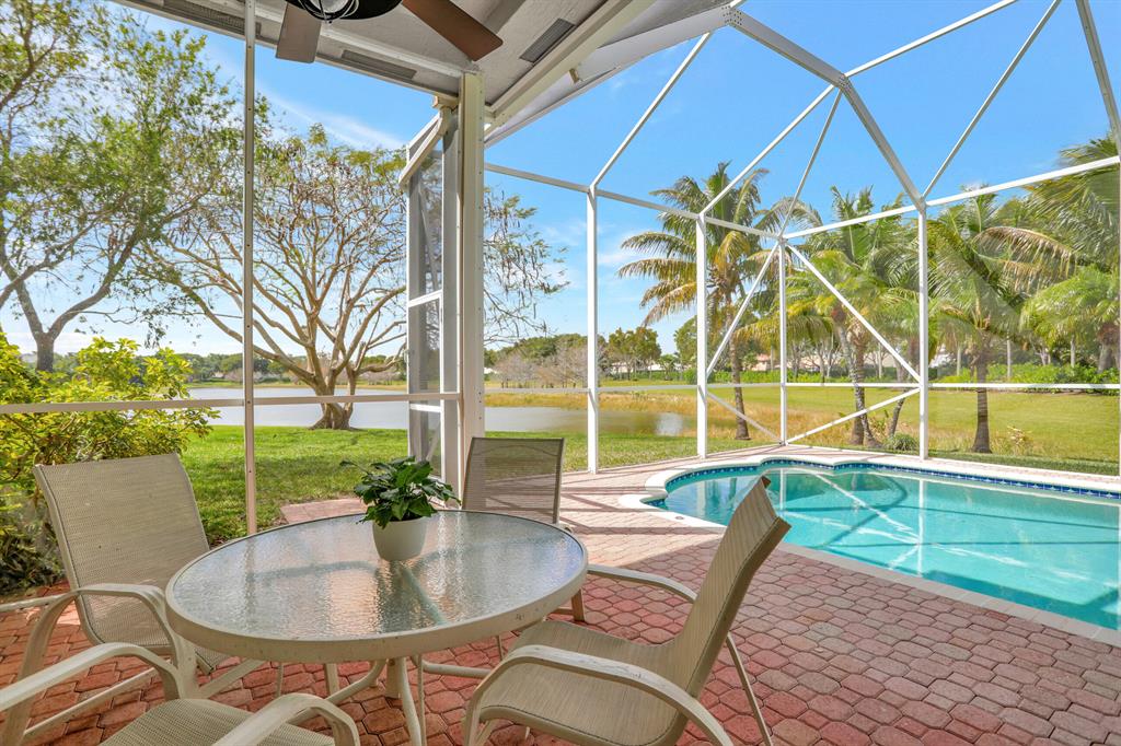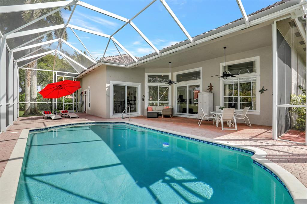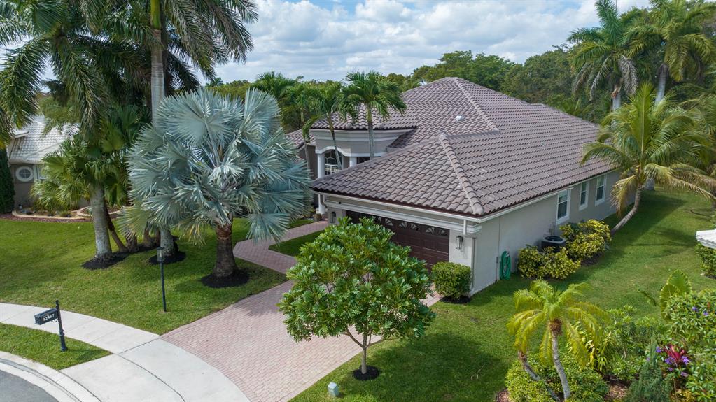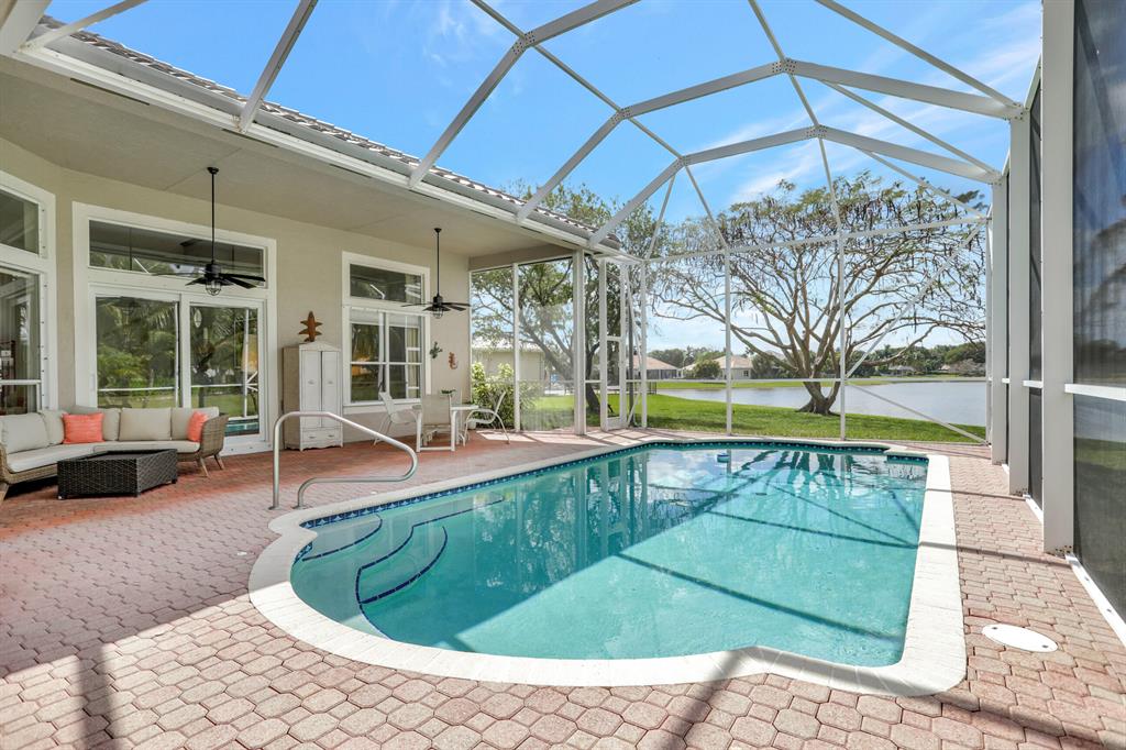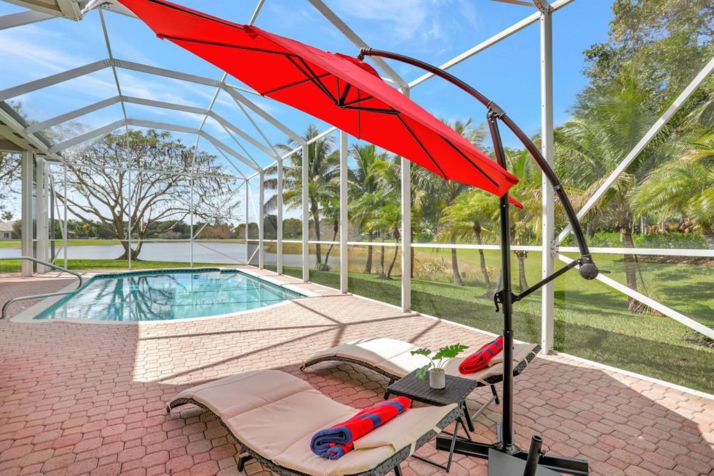 Welcome home to Boca Falls! Beautiful, renovated, Monterrey model home on a cul-de-sac in West Boca Raton's highly desired, luxurious and family oriented Boca Falls man gated community. Large 0.33 acre lot (developer lot) with private and beautiful water views, large spacious backyard and screened, covered lanai with salt water pool. NEW ROOF in 2023, completely remodeled and renovated open floor is designed around the grand central living area with 15 ft ceilings. Custom kitchen cabinetry, granite countertop kitchen and breakfast area with open views of the grand room/media center and separate dining/sitting room with white porcelain floors. The primary, oversized bedroom with a luxurious and elegant bathroom is a private oasis overlooking the pool and lanai, ideal for enjoying