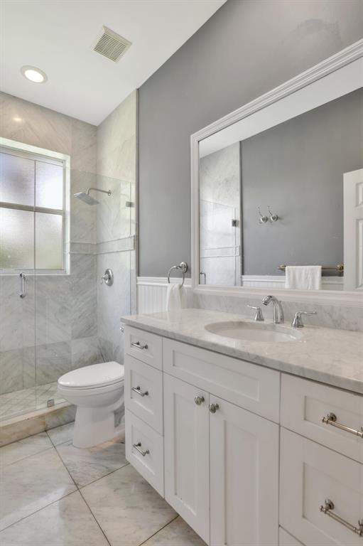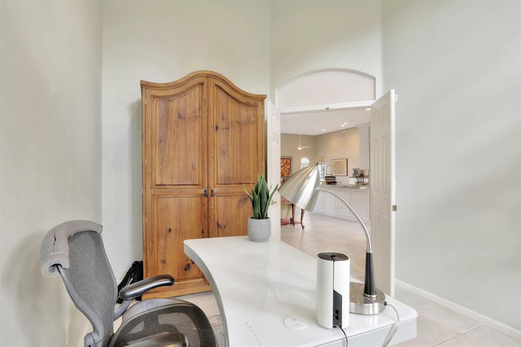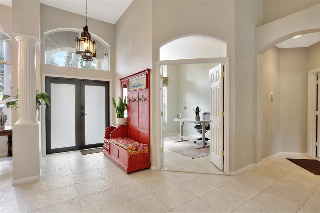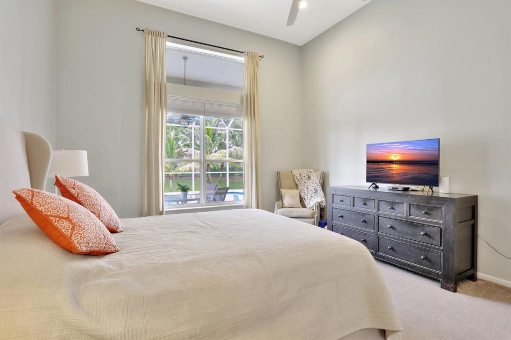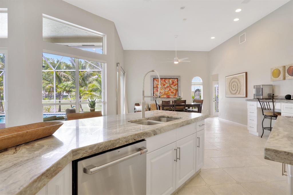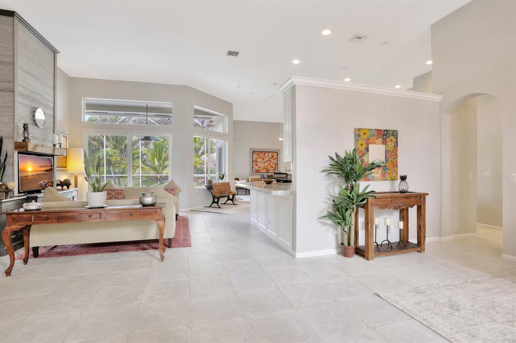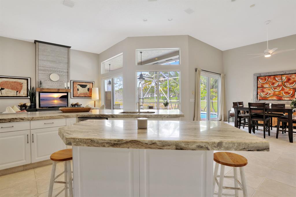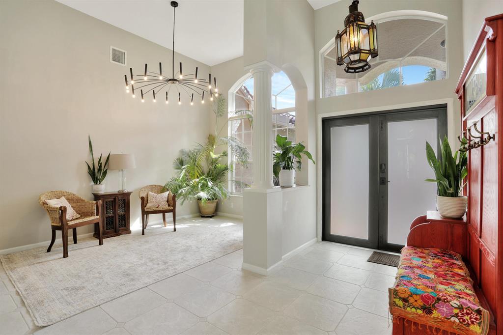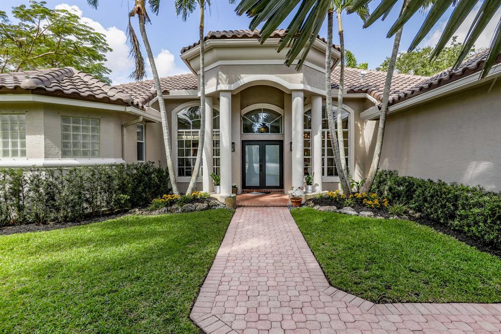 Welcome home to Boca Falls! Beautiful, renovated, Monterrey model home on a cul-de-sac in West Boca Raton's highly desired, luxurious and family oriented Boca Falls man gated community. Large 0.33 acre lot (developer lot) with private and beautiful water views, large spacious backyard and screened, covered lanai with salt water pool. NEW ROOF in 2023, completely remodeled and renovated open floor is designed around the grand central living area with 15 ft ceilings. Custom kitchen cabinetry, granite countertop kitchen and breakfast area with open views of the grand room/media center and separate dining/sitting room with white porcelain floors. The primary, oversized bedroom with a luxurious and elegant bathroom is a private oasis overlooking the pool and lanai, ideal for enjoying