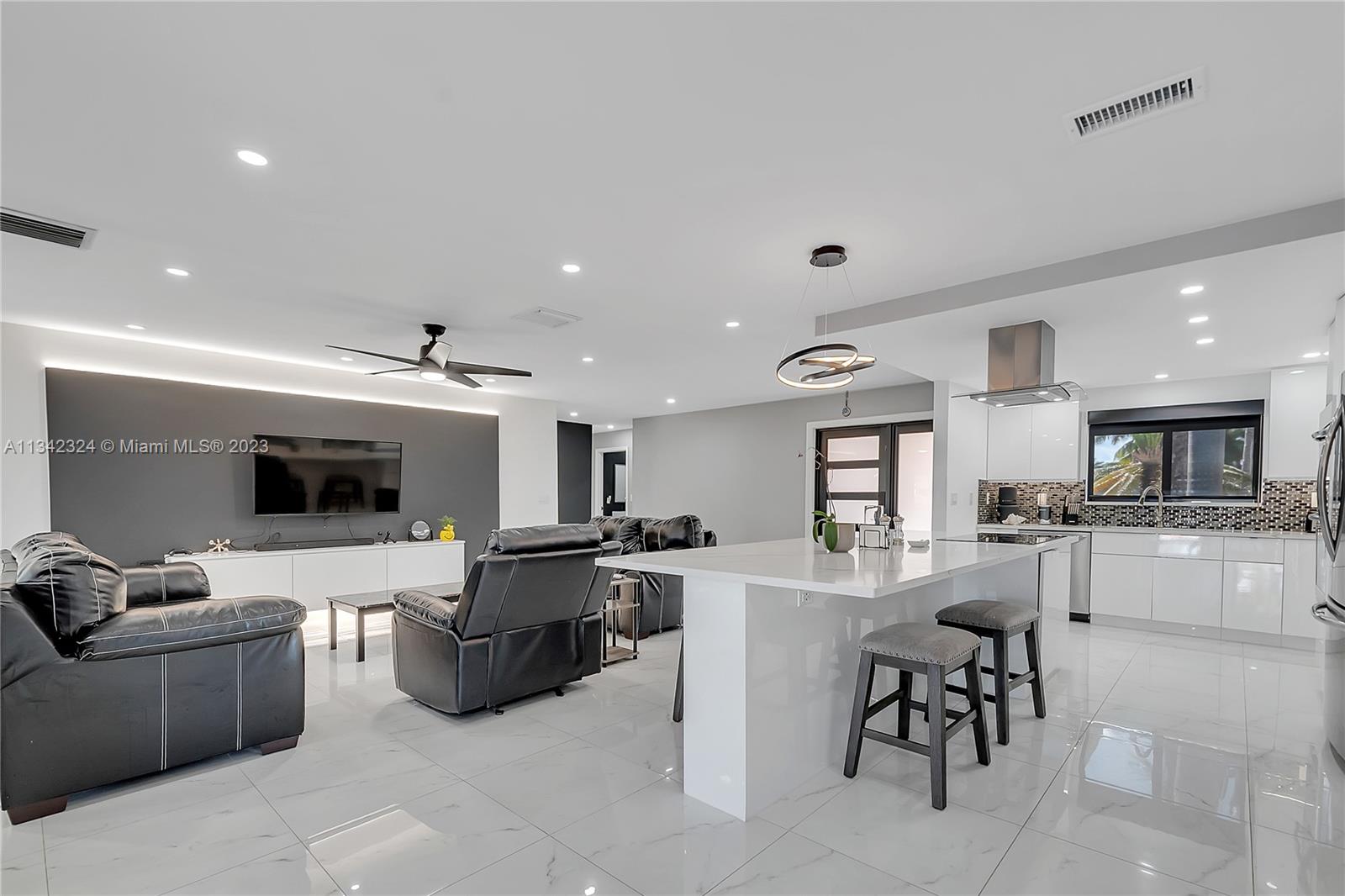 Modern & luxurious, one-of-a-kind home in Sought after Plantation Isles. Home sits on a cul-de-sac offering one of the most extensive water frontages in the community, ready for your large boat— w/a private dock! Enjoy a great open floor plan, with sliding doors & large windows throughout to enjoy the outdoors. Beautiful recess lights & remote-controlled electric blackout blinds, w/everything new, Kitchen, bathrooms, Roof, Ac Electrical panel, impact door & windows. Master suite fit for a king w/a million dollar water view, walk-in closet & spa-like bathroom. Home shows like a model Must see! New seawall being constructed will be done end of March 2023!