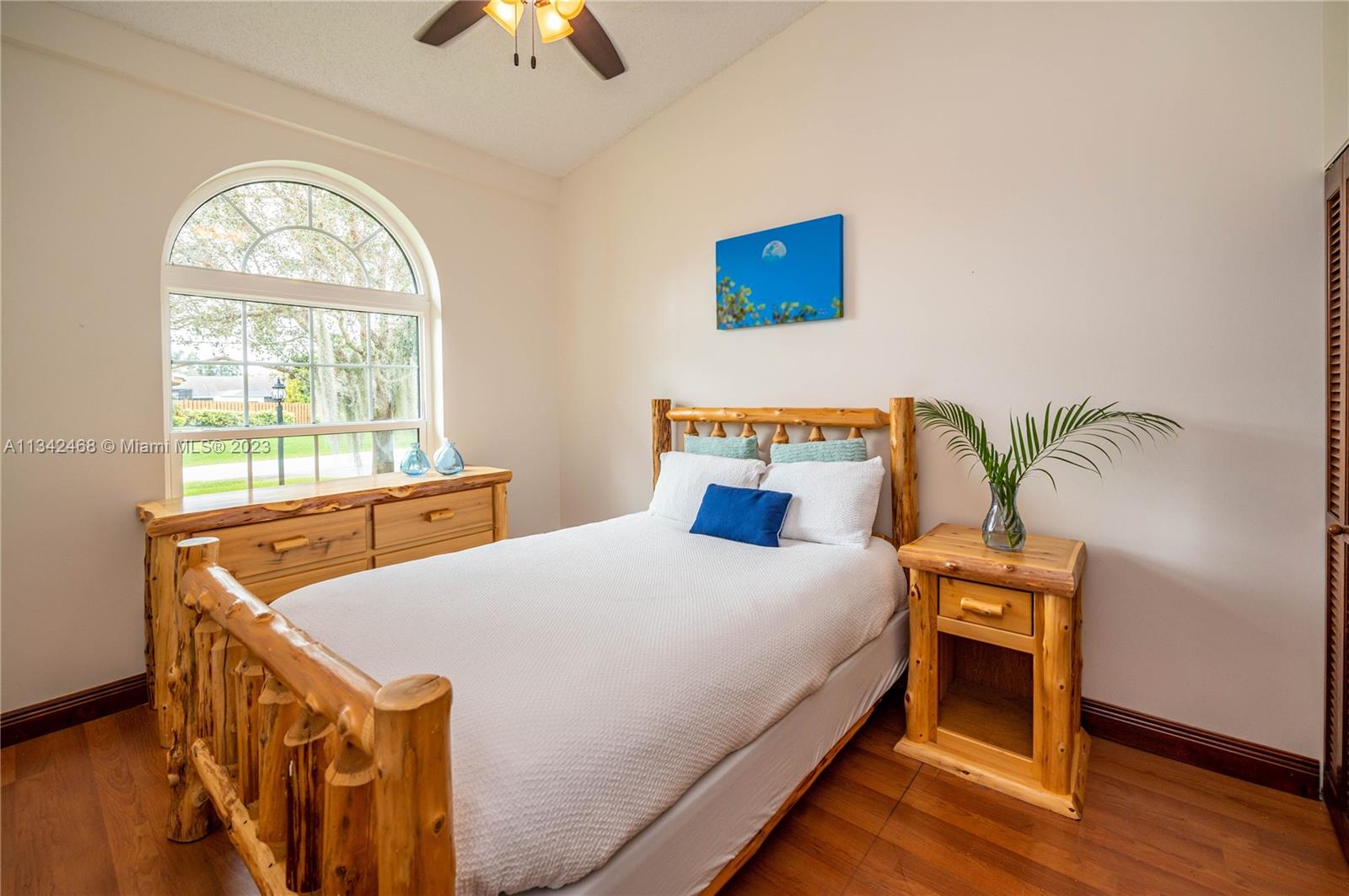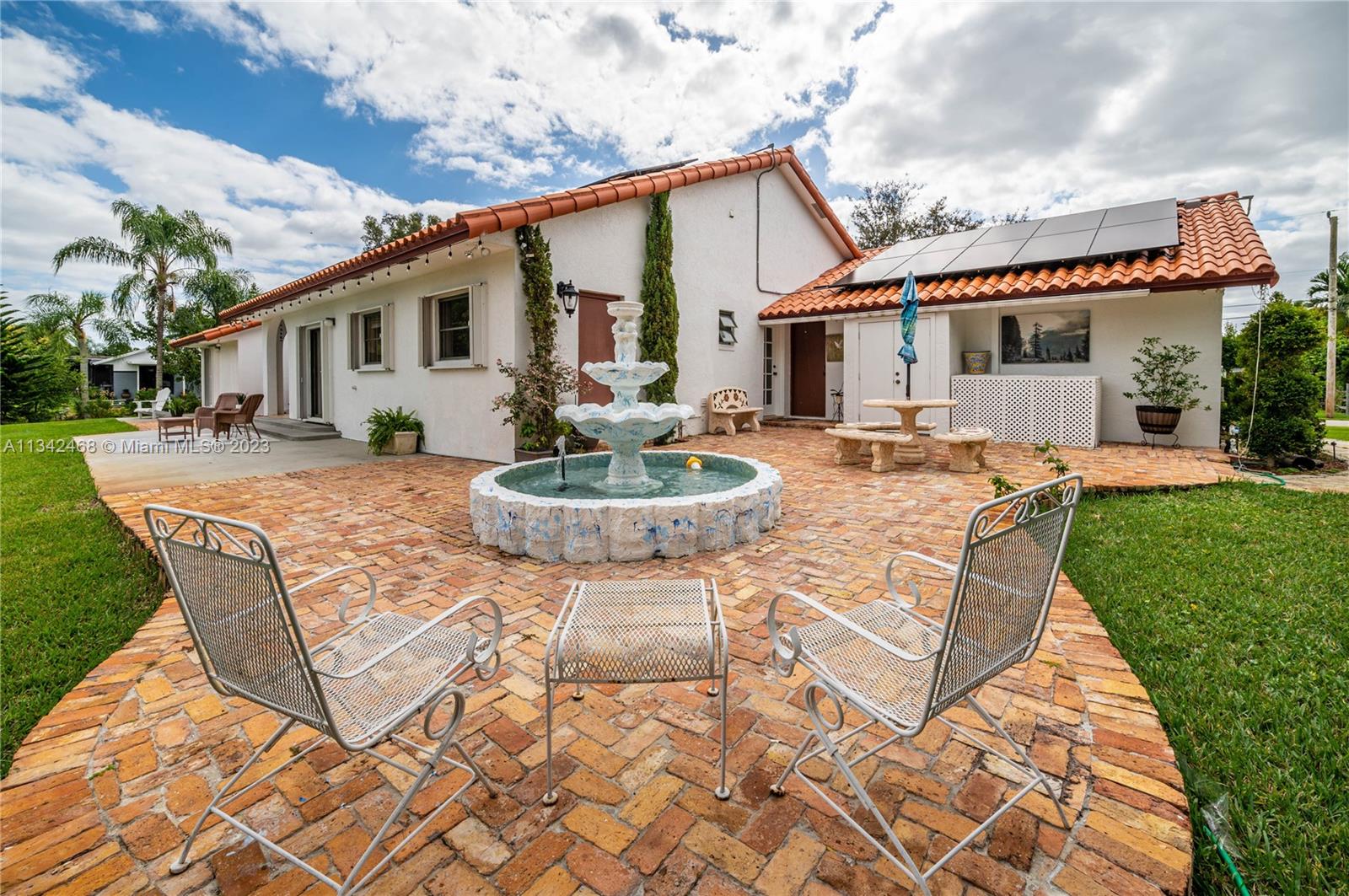 Find your best "aaahhh" life in peaceful Plantation Acres. This updated home on a 1/2-acre framed by evergreen hedges is filled w/special touches. Favorites incl. the soaring ceilings, the 6-prsn Jacuzzi courtyard & the huge backyard it overlooks. The luscious fruits plucked straight from the mango, tamarind & guanabana trees are the envy of the neighborhood. Eco-conscious? Rejoice! Sustainable energy powers the home via the new $70K solar panel grid & new double-panel windows keep the heat at bay, reducing the amount of A/C needed. The location is a top draw as well. While the neighborhood is quiet & secluded, it's near the Colonnades and Sawgrass Mills, nice restaurants, the Florida Panthers arena, and America Heritage School, among the best of Florida's private schools. Fireplace. 2CG.