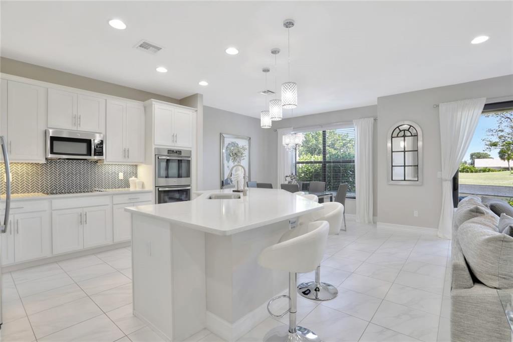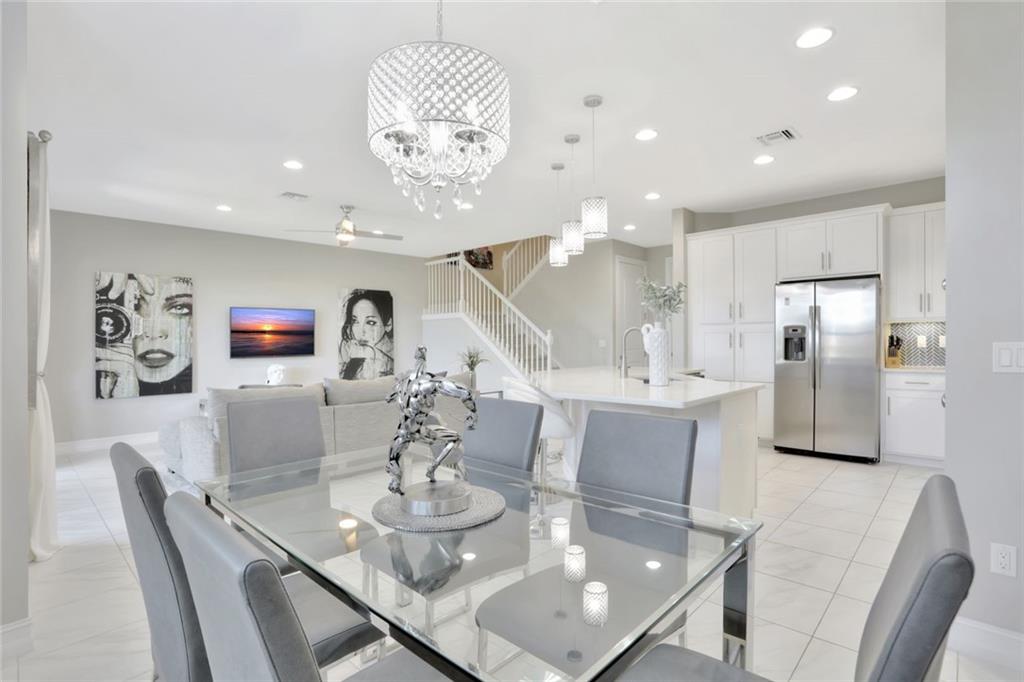 This newer construction townhouse is located in a gated community and has relaxing water views to be enjoyed all year round from your back patio. It has 3 nicely sized bedrooms , excellent closet space , 2.5 baths , a beautiful white kitchen with a quartz countertop , and double oven ready for delicious meals. The 2-car garage has an epoxy finish. As for the amenities : excellent gym; beautiful pool; nicely decorated club house that can be used for private events. Don't miss out on your chance to own this wonderful home.