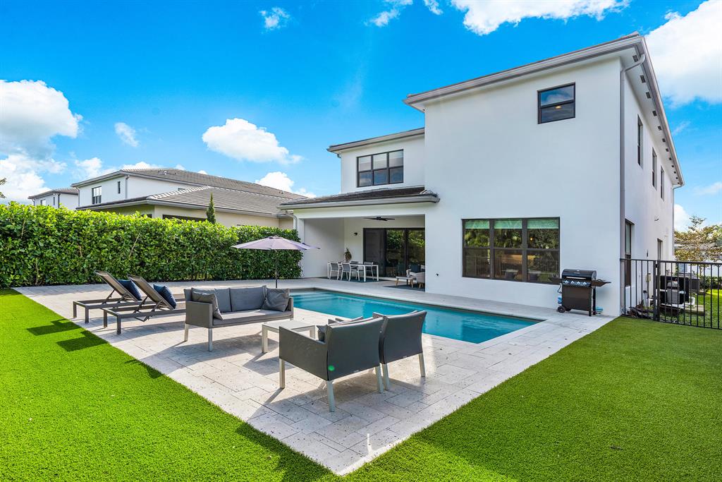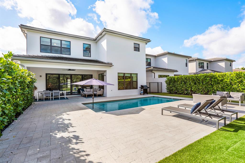 The ''Mariana'' with a POOL (with heater) you have been waiting for! Coastal inspired, fresh & move-in ready, the Mariana stands out from other homes at LOTUS with its bonus room with custom pocket doors. Currently a playroom, this space can be a game/pool table room, a bar, a movie room! Boasting 5 bedrooms, 5 full bathrooms (one bed/bath on 1st floor), large loft area with balcony, second floor laundry room with sink. Oversized pool & deck, pool w/ sun-shelf, child proof pool fence, pool heater, clusia hedge for complete privacy and turf make it for easy living & care free maintenance. Beautiful finishes and upgrades abound including NEW floors leading up & all throughout the second floor, wood-like tile on the first floor, upgraded staircase, volume ceilings, all impact windows & doors