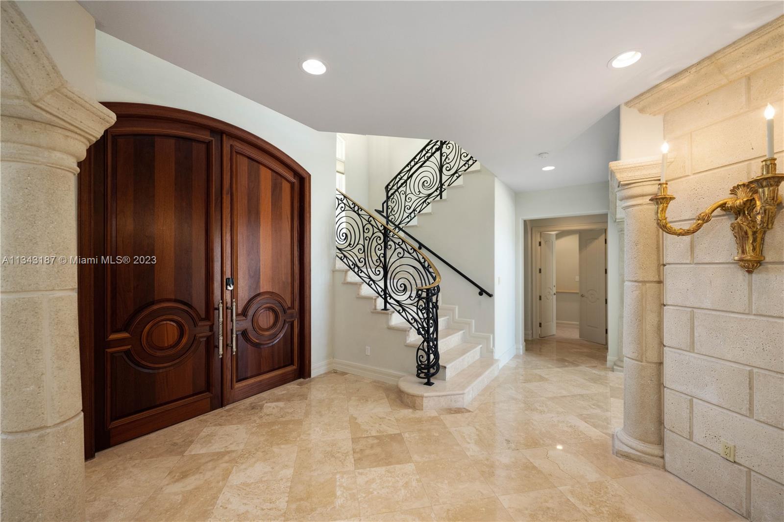 Located in most prestigious Isles in Las Olas, this private and secure estate boasts 100 feet on the water. The property is on the widest/deepest canal in the Isles. Custom built in 2002 with Exceptional finishes/craftsmanship throughout. Newer roof (2021). The Estate includes a formal Living Room with coffered, gold foil ceilings, Neff Cabinetry, Marble floors, custom baseboards/plaster crown molding. Beautiful bronze staircase, home theater, 2 laundry Rooms, 4 car garage, lighting system, outdoor gazebo with kitchen. Large custom pool with built in separate Jacuzzi, concrete dock, cabana bath, large covered patios. Royal Palm Dr offers underground utilities, natural gas and higher elevations. Property has security entry door gates and security cameras in and out.