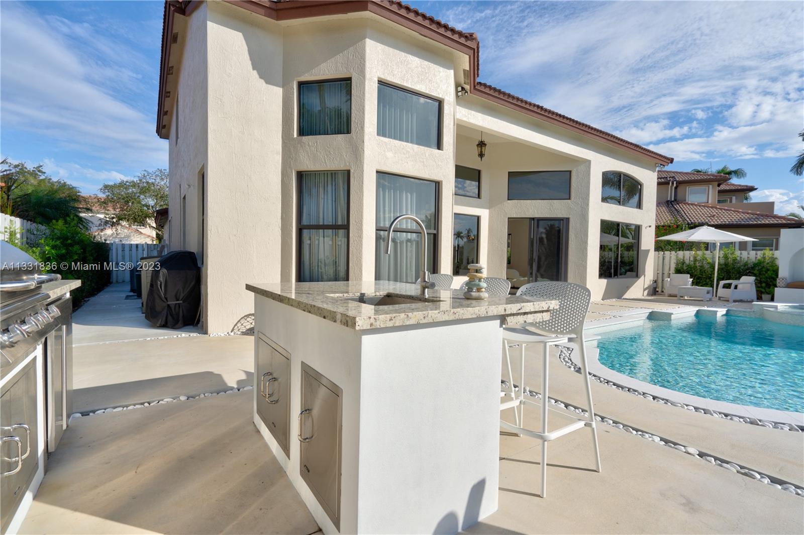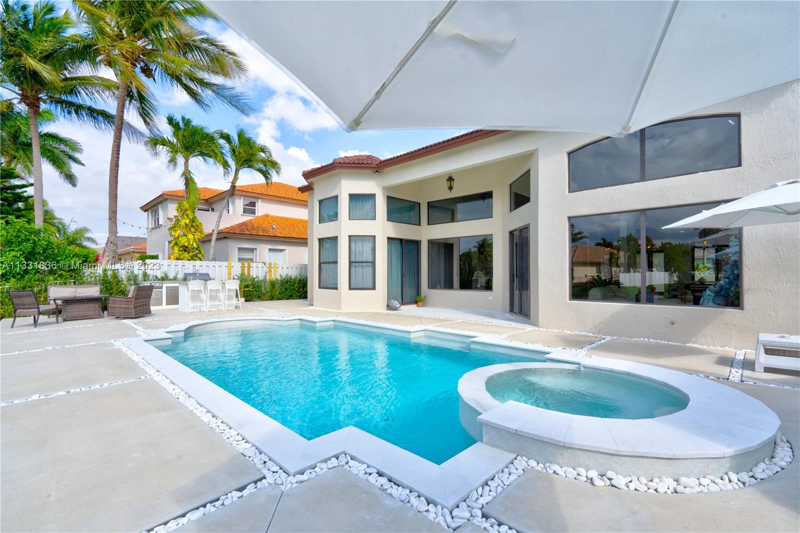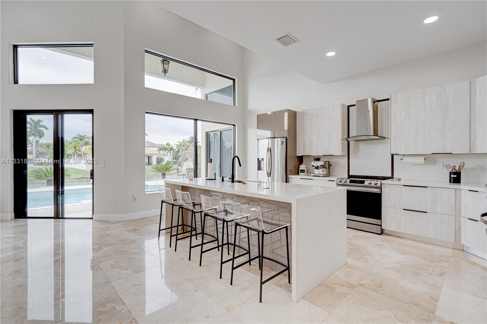 Set in the prestigious Windsor Palms, Miramar's most prestige communities. This luxurious modern waterfront residence has been fully renovated for living a luxurious resort lifestyle. Open concept floor plan. Great for Entertaining. As you enter, revel in the bright natural light illuminated by large impact resistant windows. Main level hosts a spacious living area marble flooring, gourmet chef's kitchen with no expenses spared and high-end finishes, & enormous stunning en-suite master bedroom, wood slat feature wall, floor to ceiling curtains, breathtaking master bath. The backyard oasis boosts 12x20 pool, spa, beautiful feature sitting area admiring Florida's sunsets, & new built-in summer kitchen. Experience a real-life getaway from the comfort of your own home!